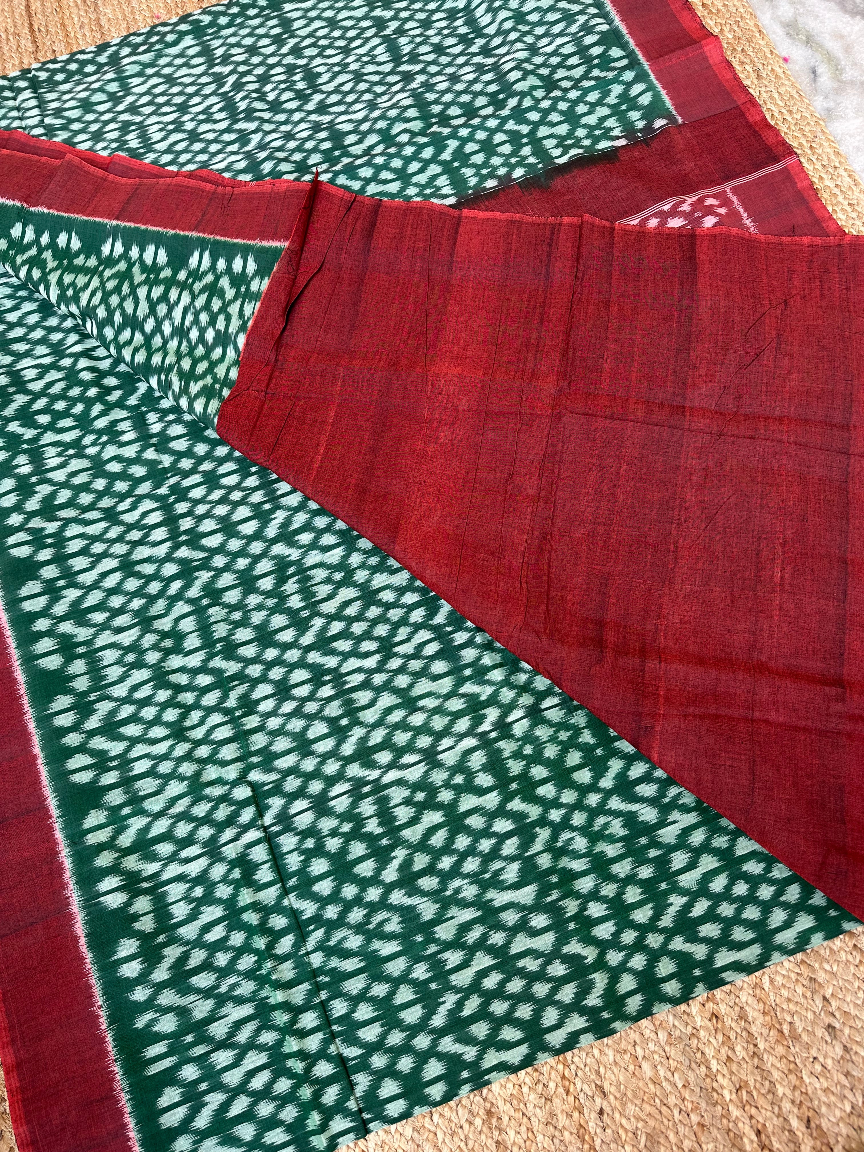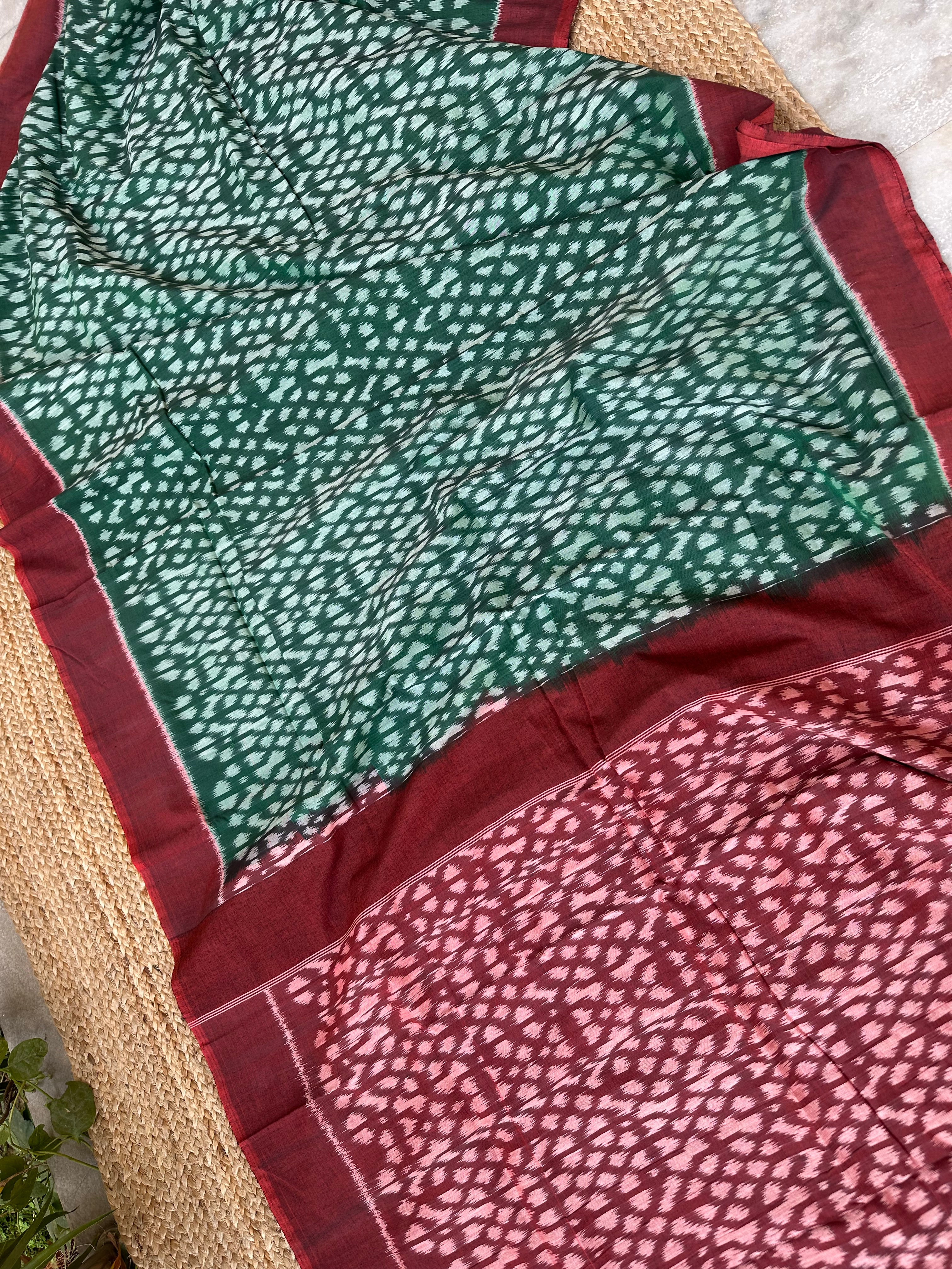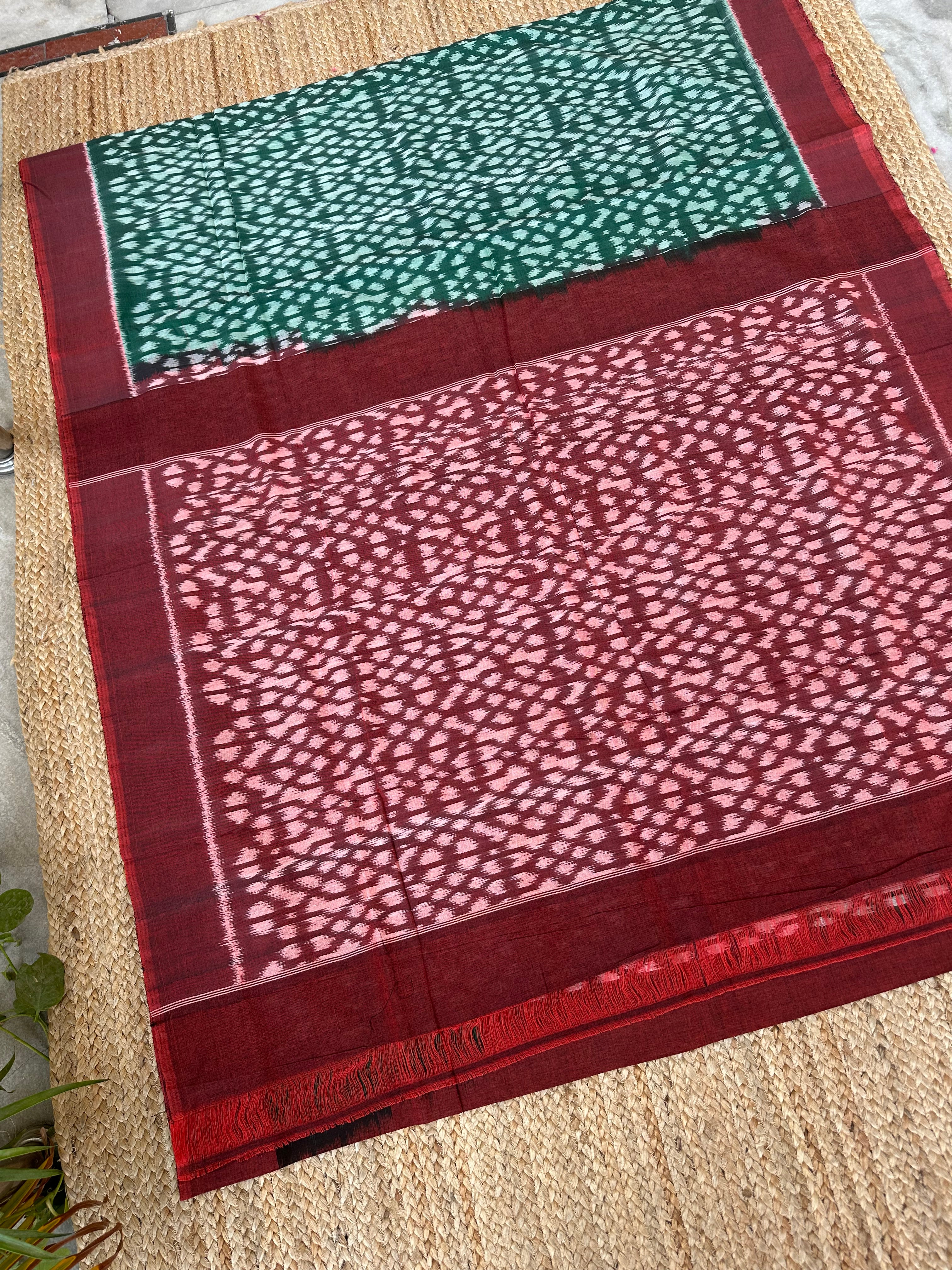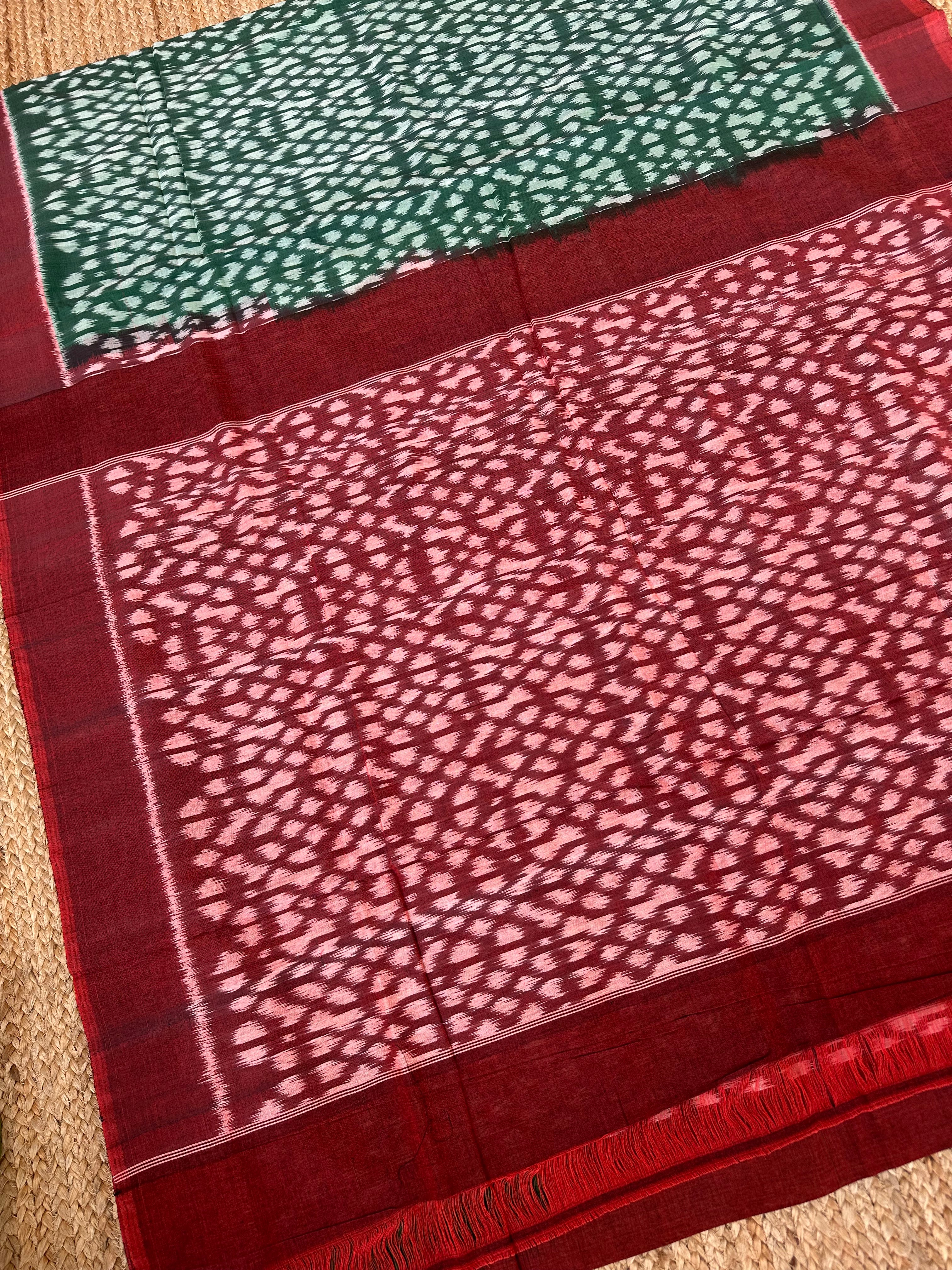 Green Maroon Ikkat Cotton Handloom Saree