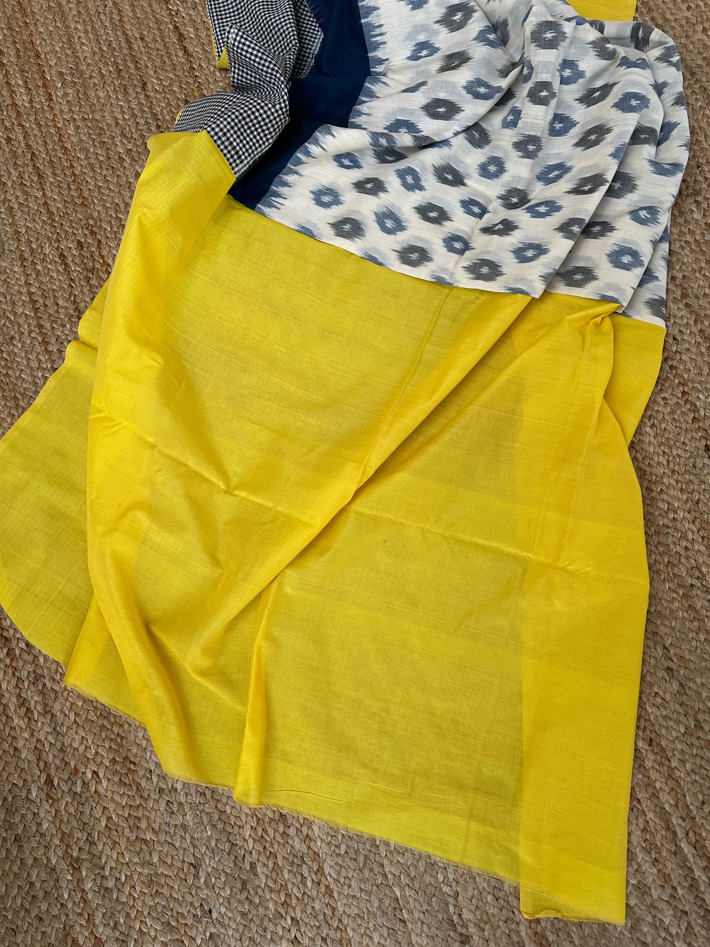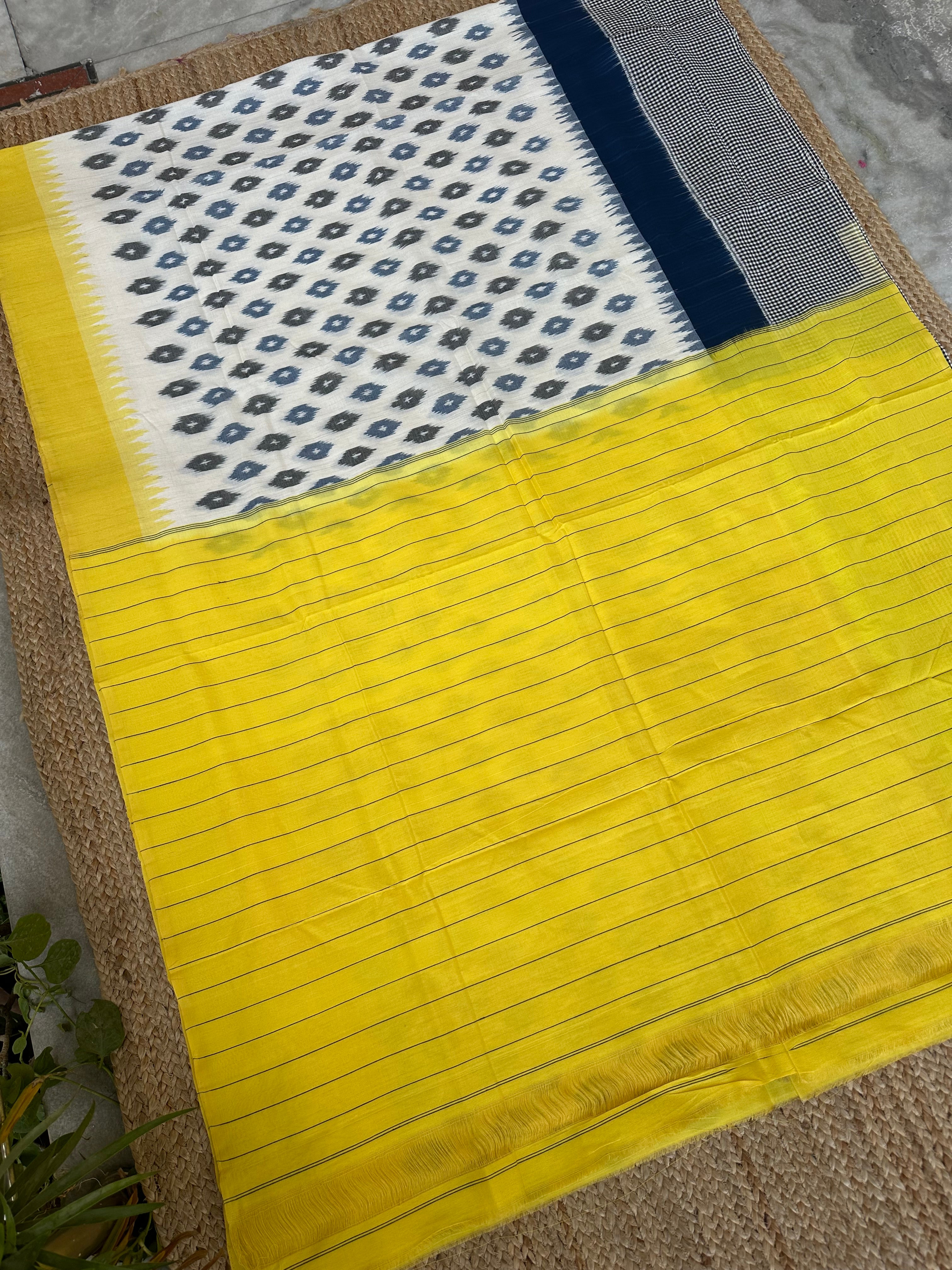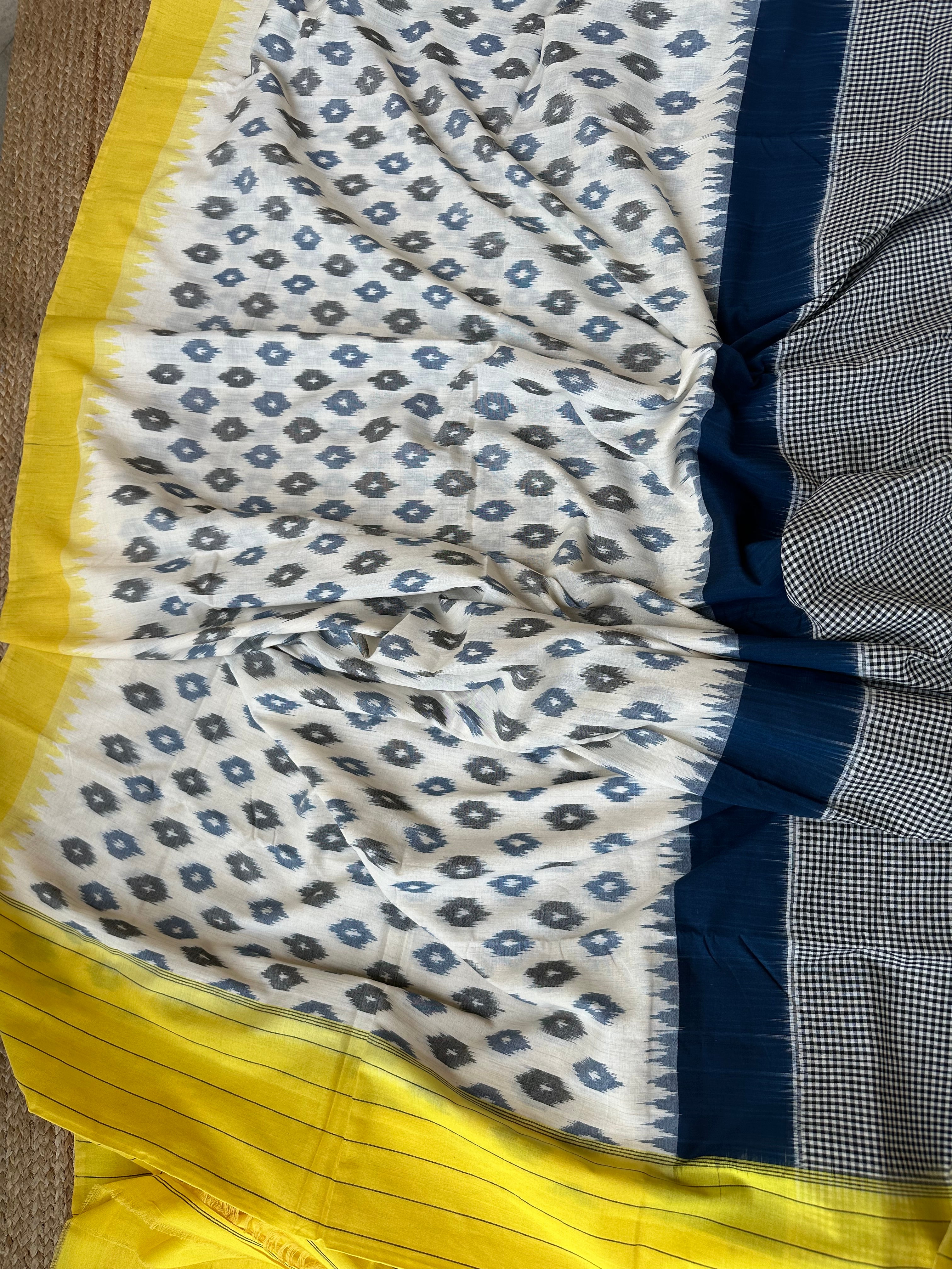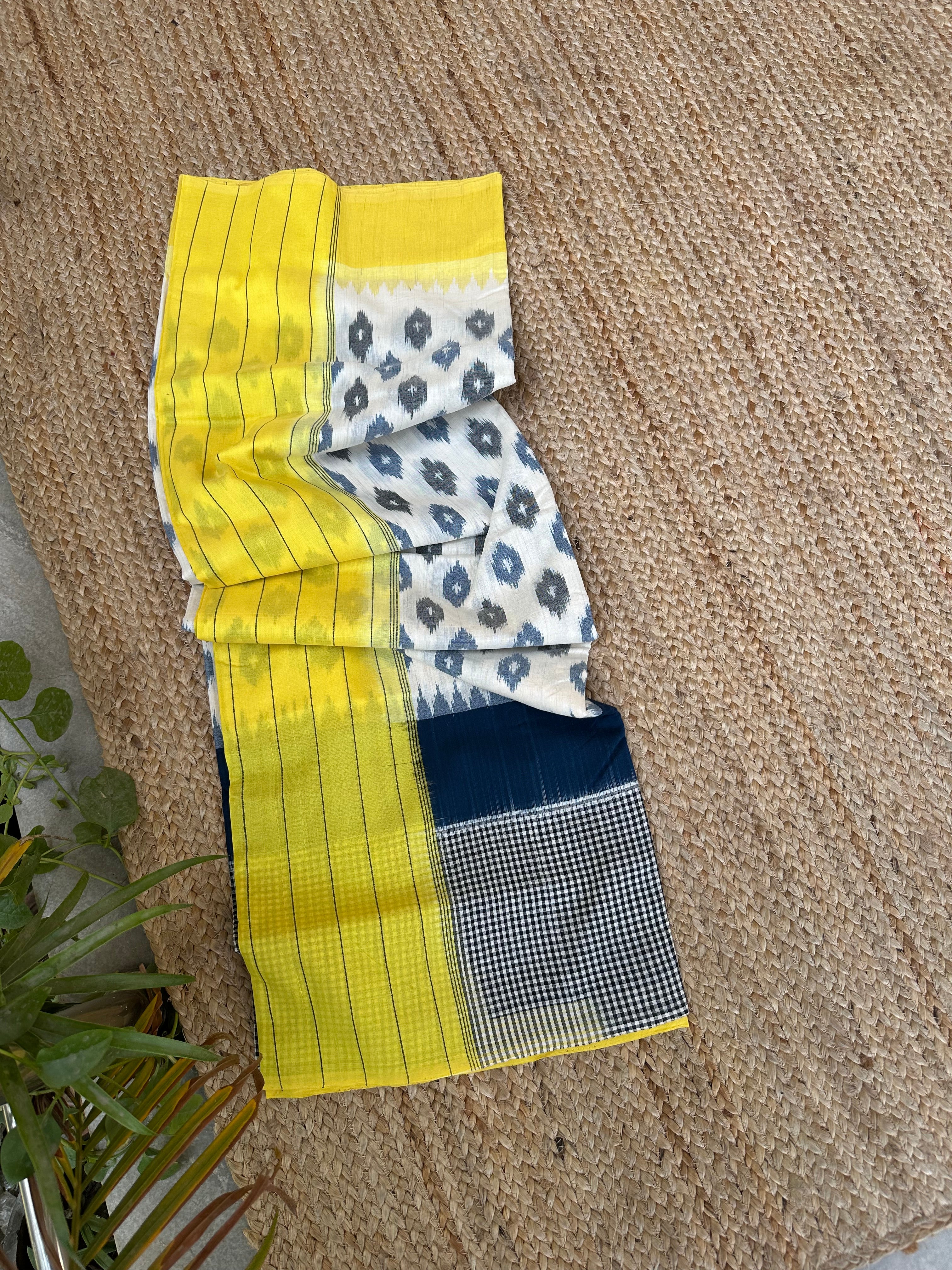 White Yellow Ikkat Cotton Handloom Saree