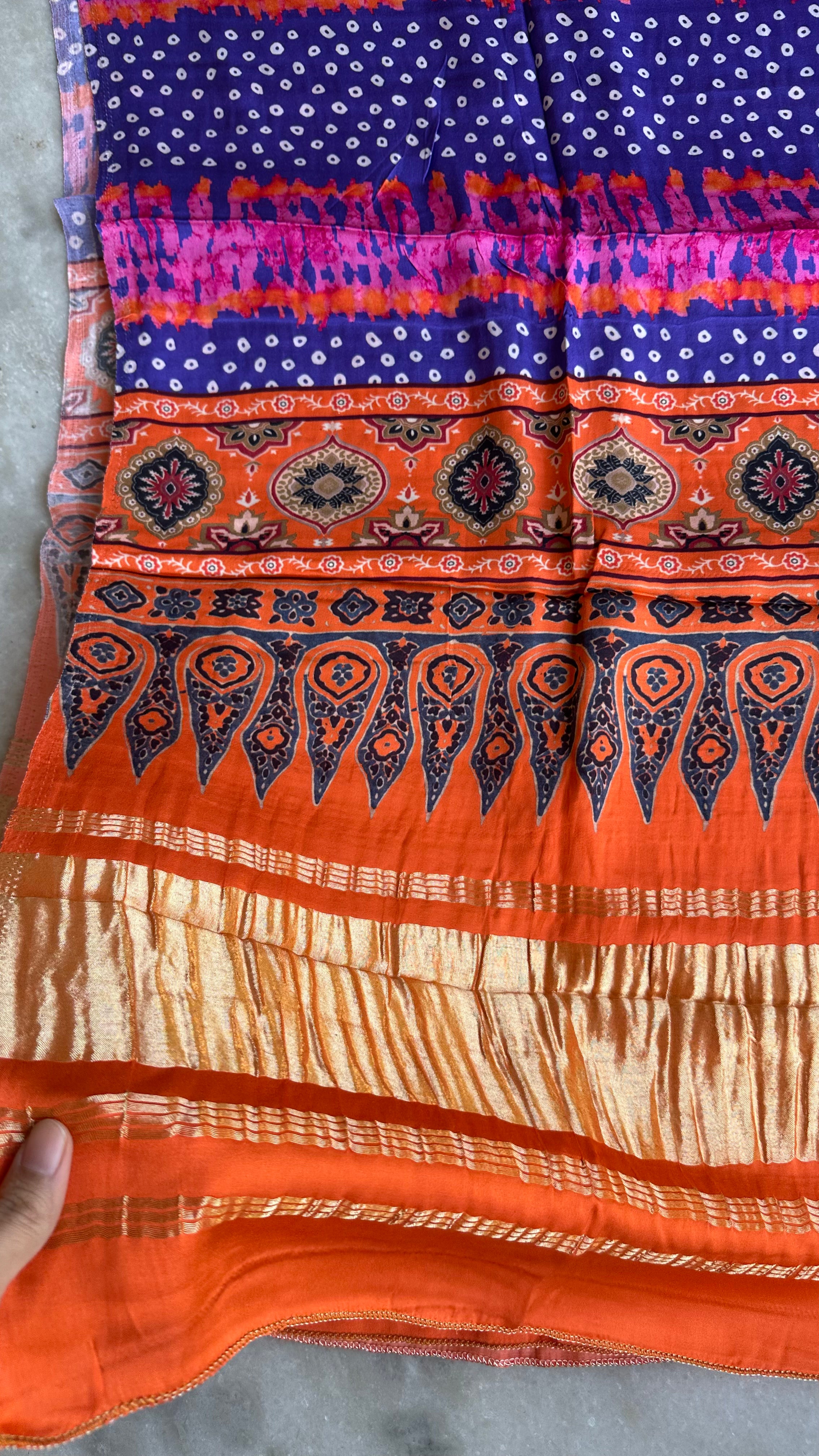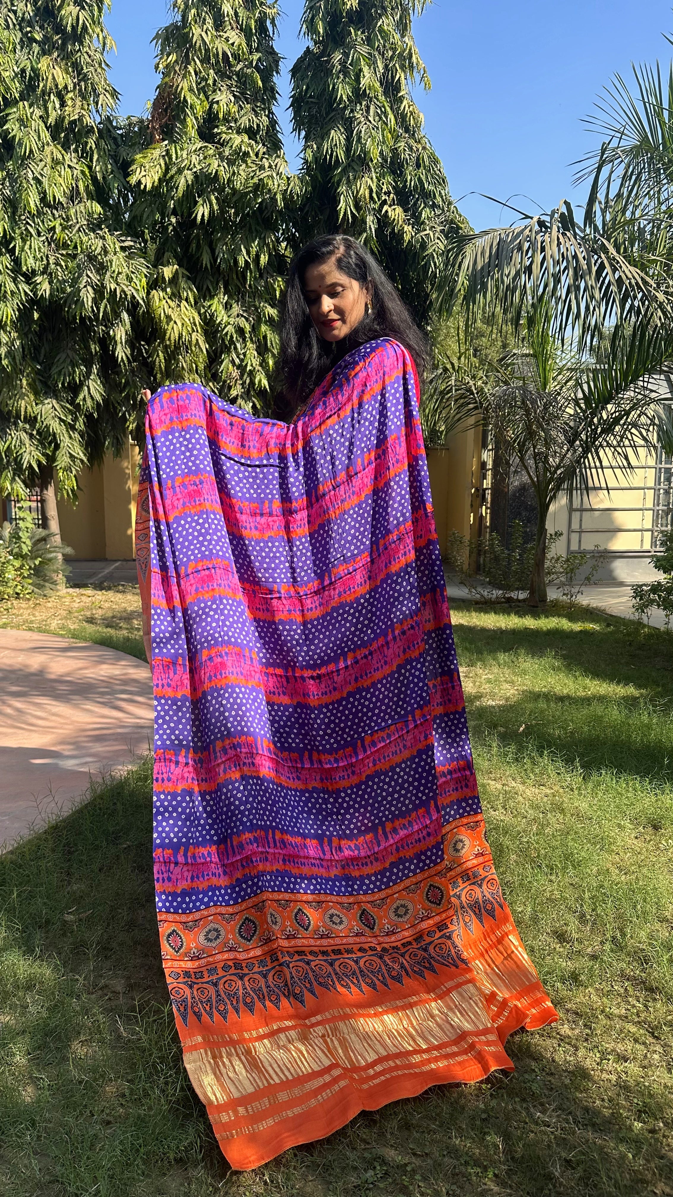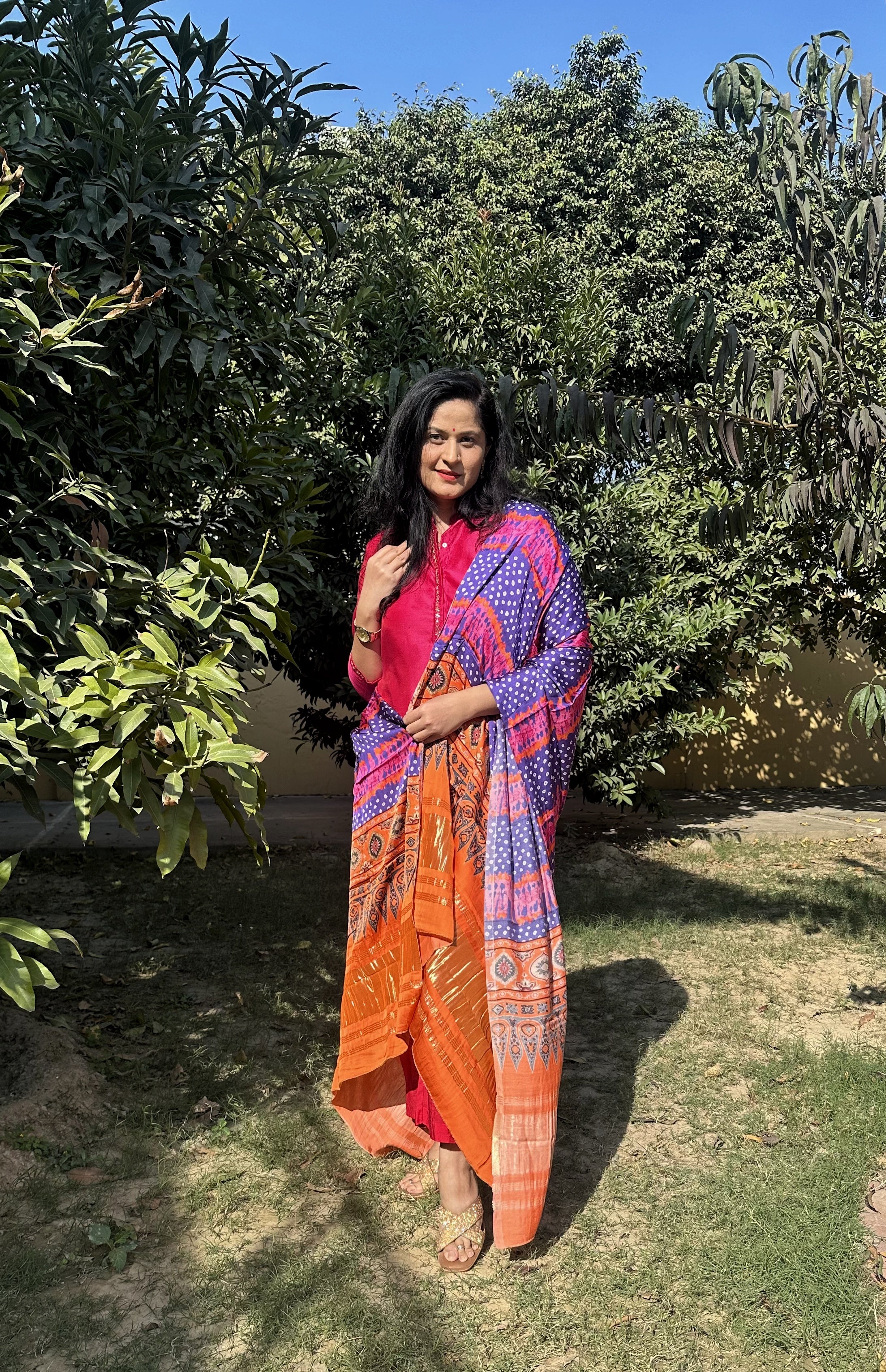Unstitched Kaftan/Kurta-Pure Modal silk Ajrakh