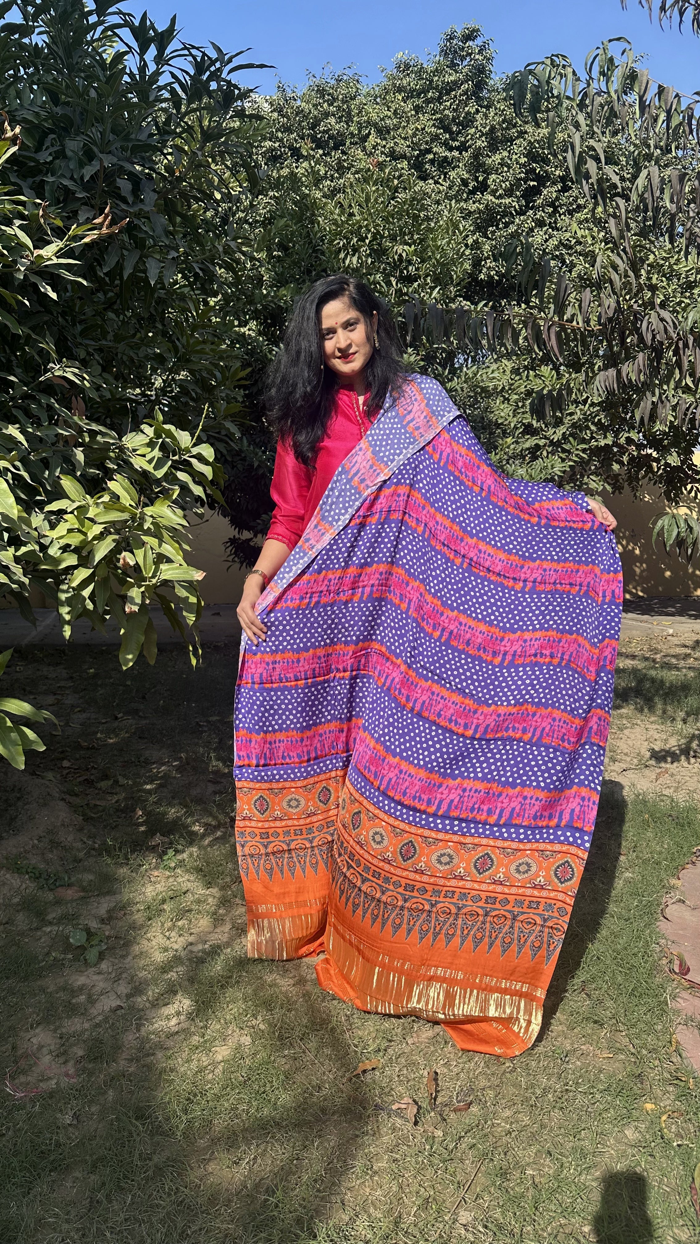 Indigo Modal Silk Handblock Saree (Sale piece)