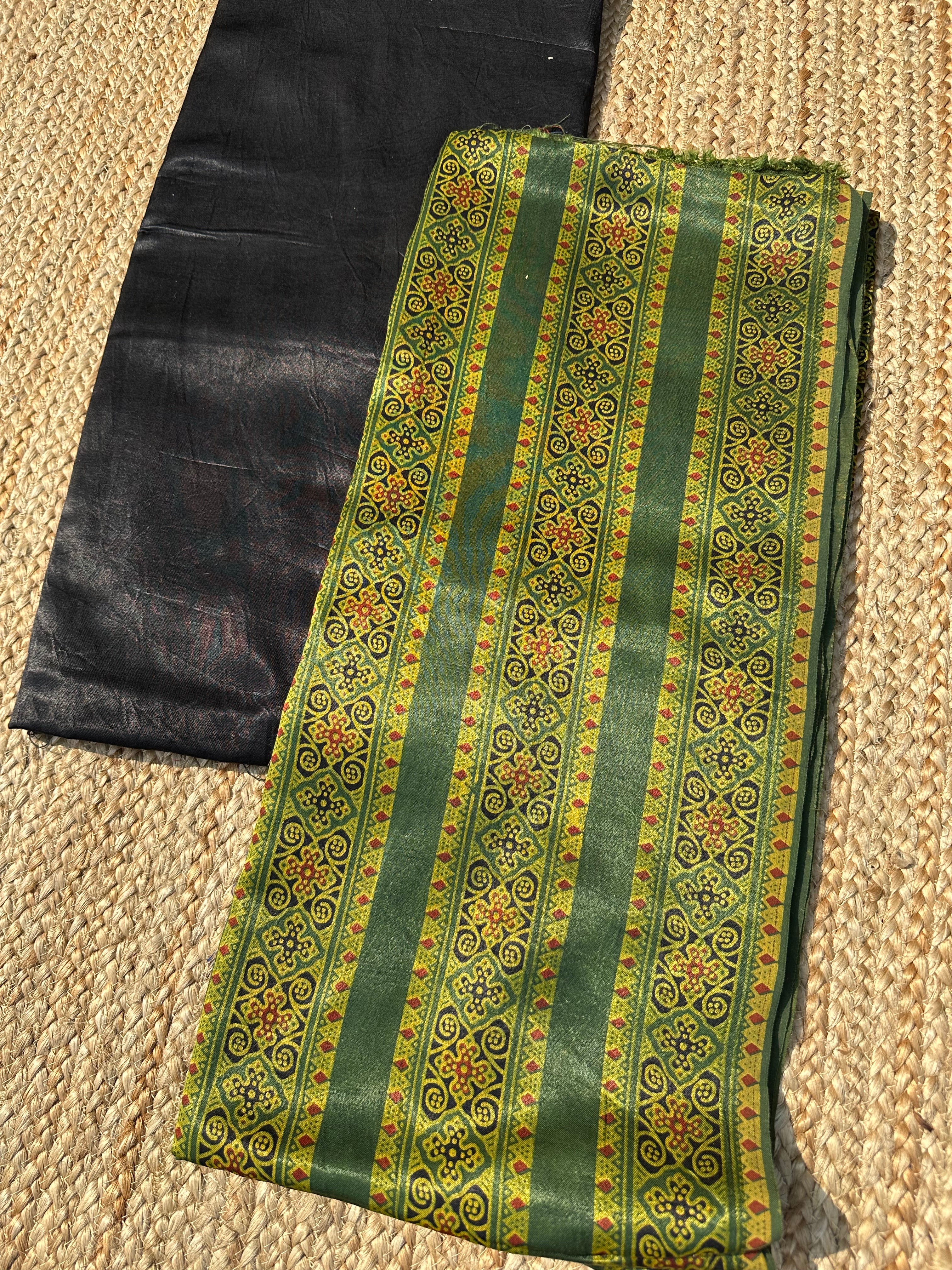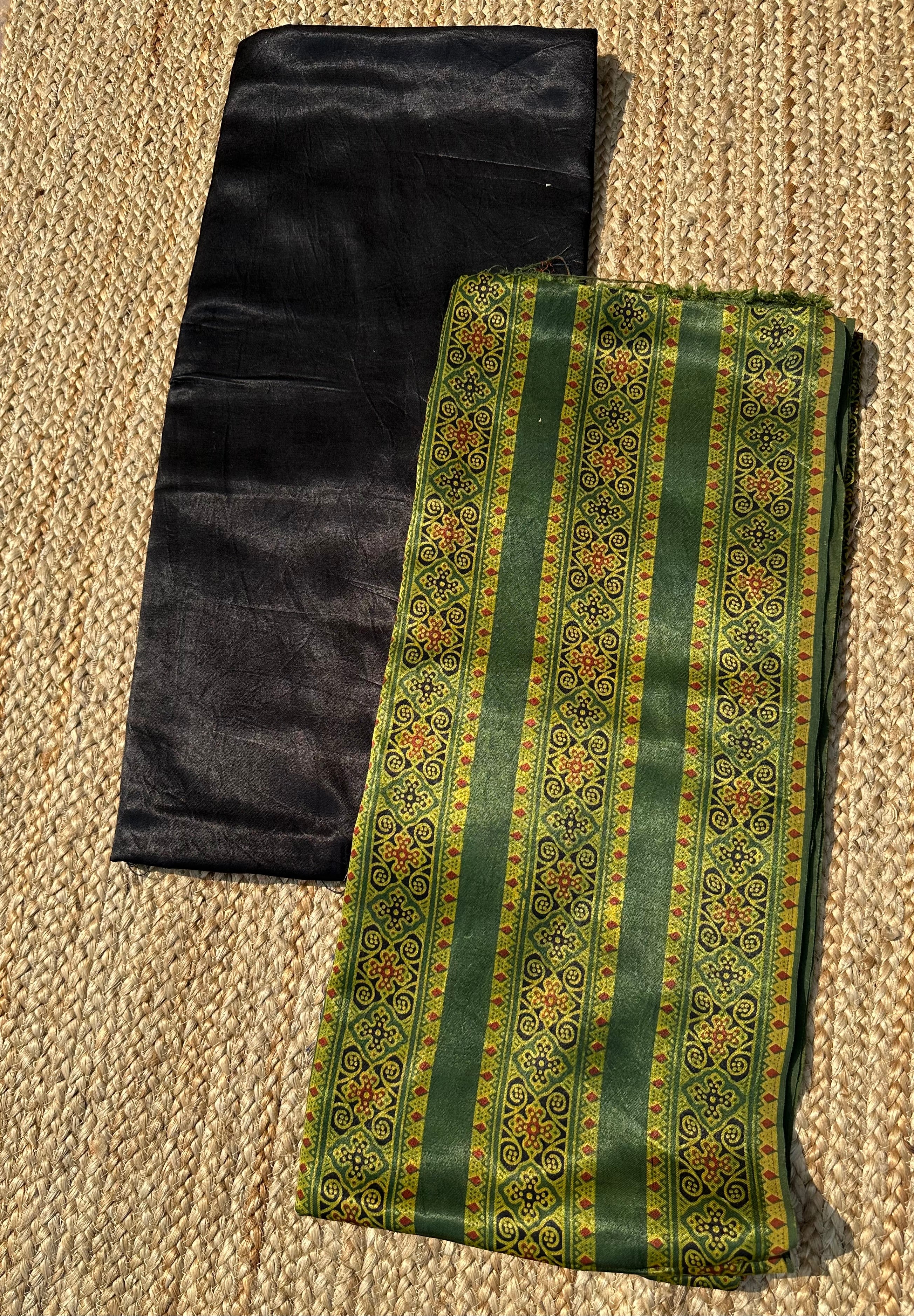 Pure Mashru Silk Ajrakh Green Coord set (Unstitched)