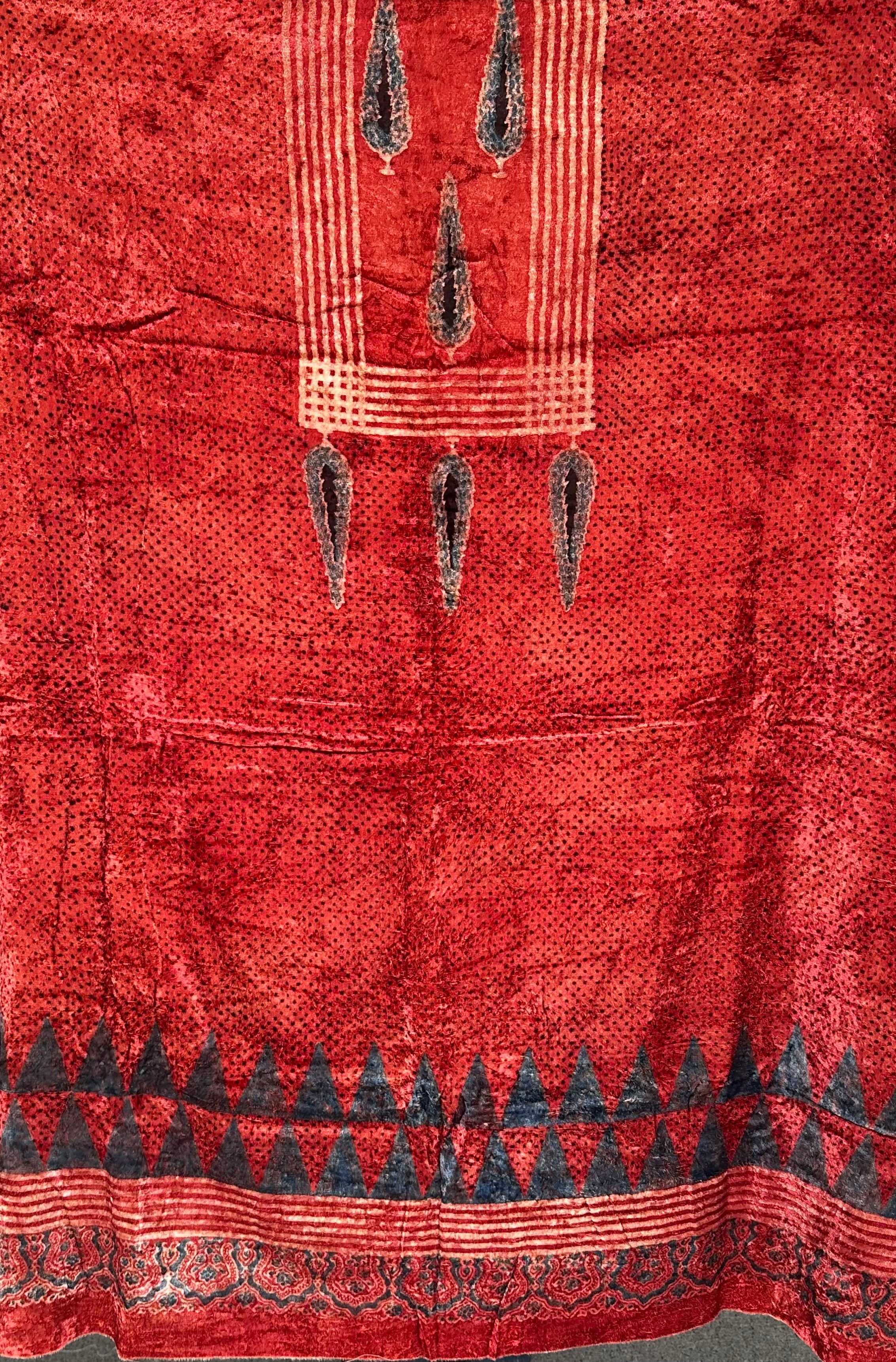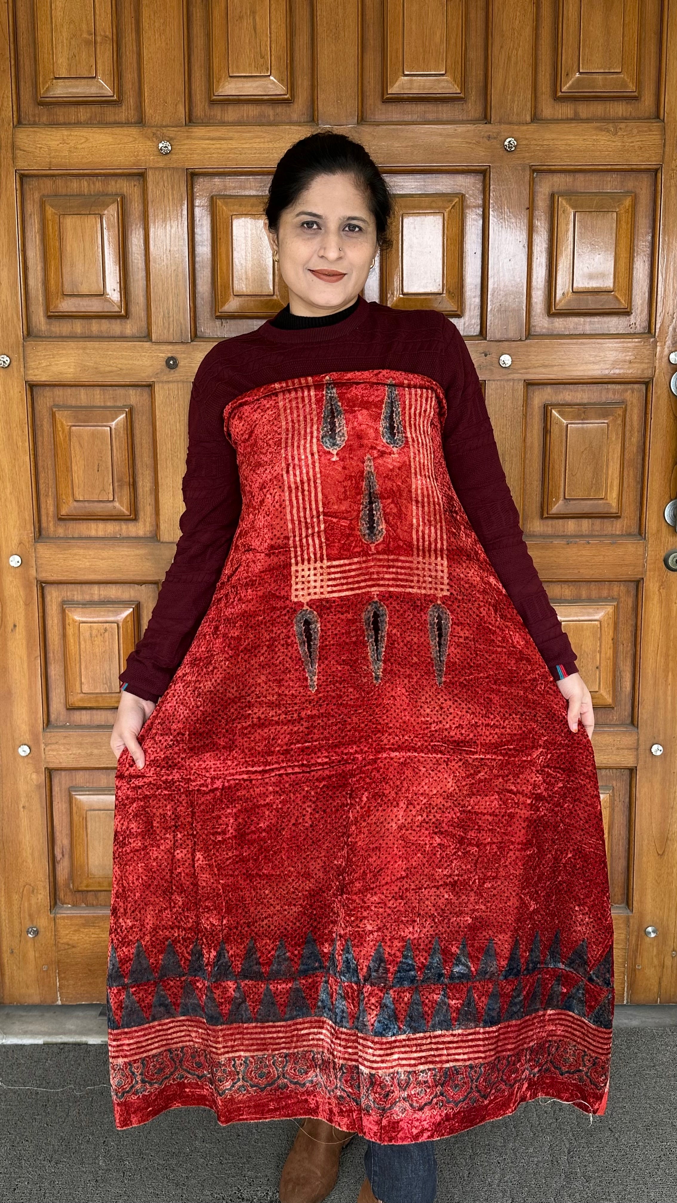 Pure Ajrakh Handblock Printed Velvet Kurta fabric.