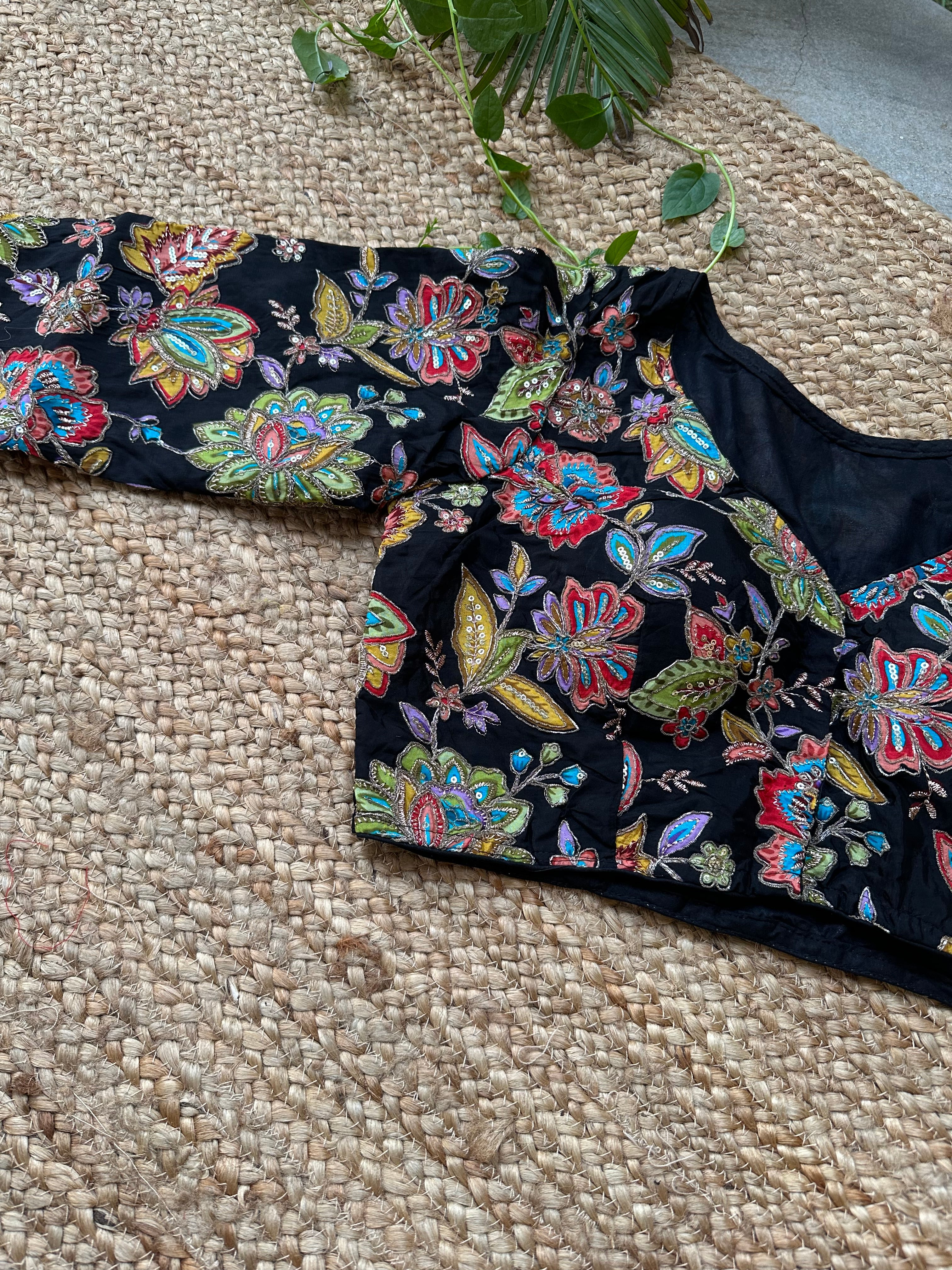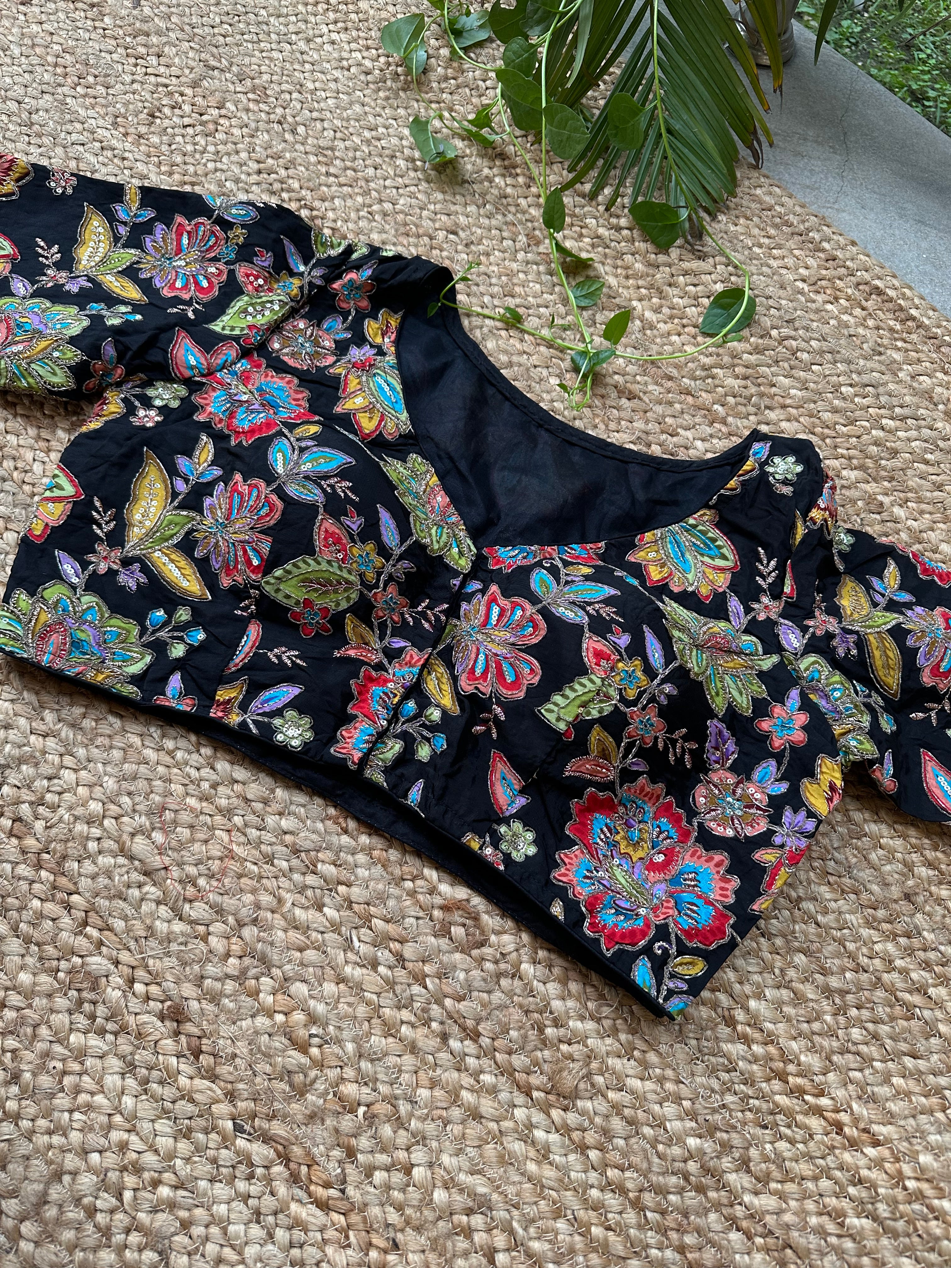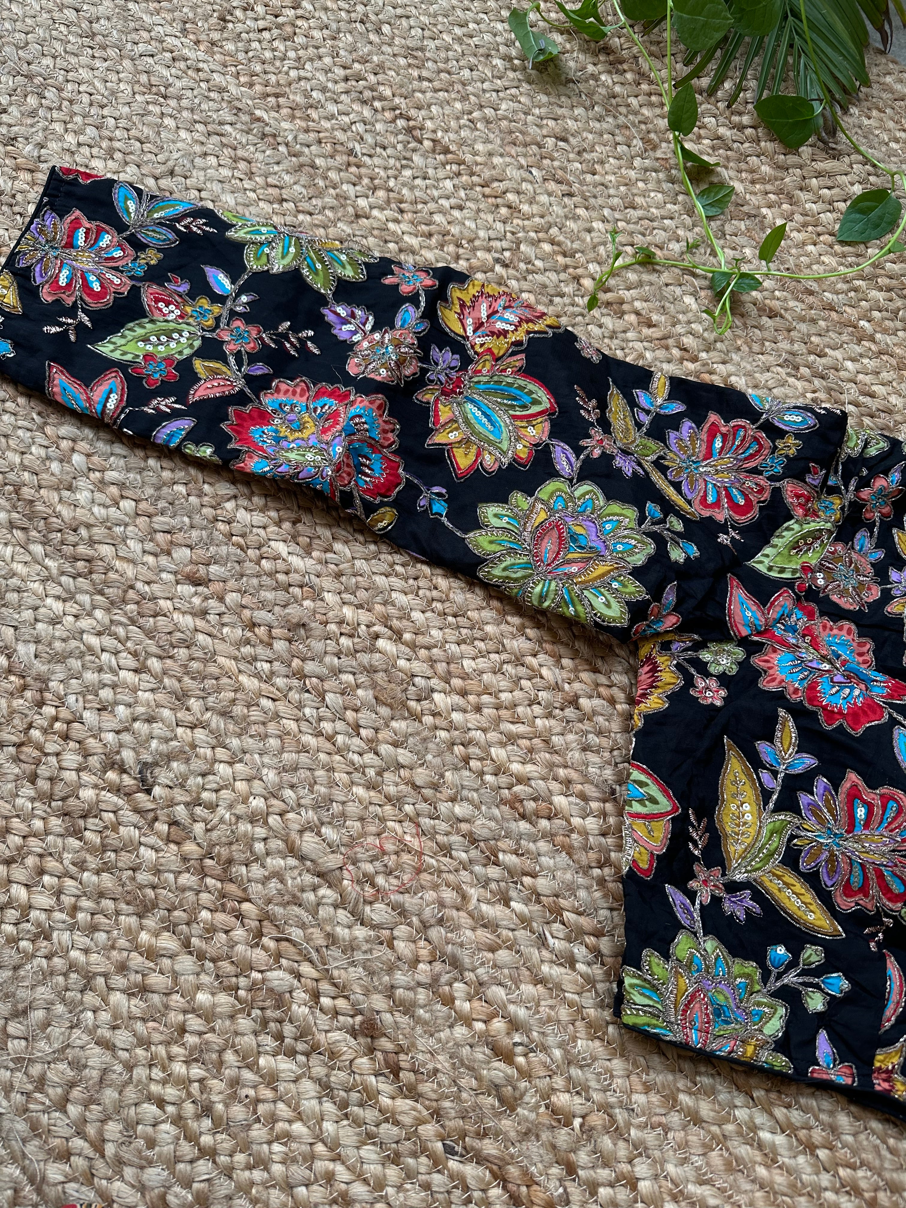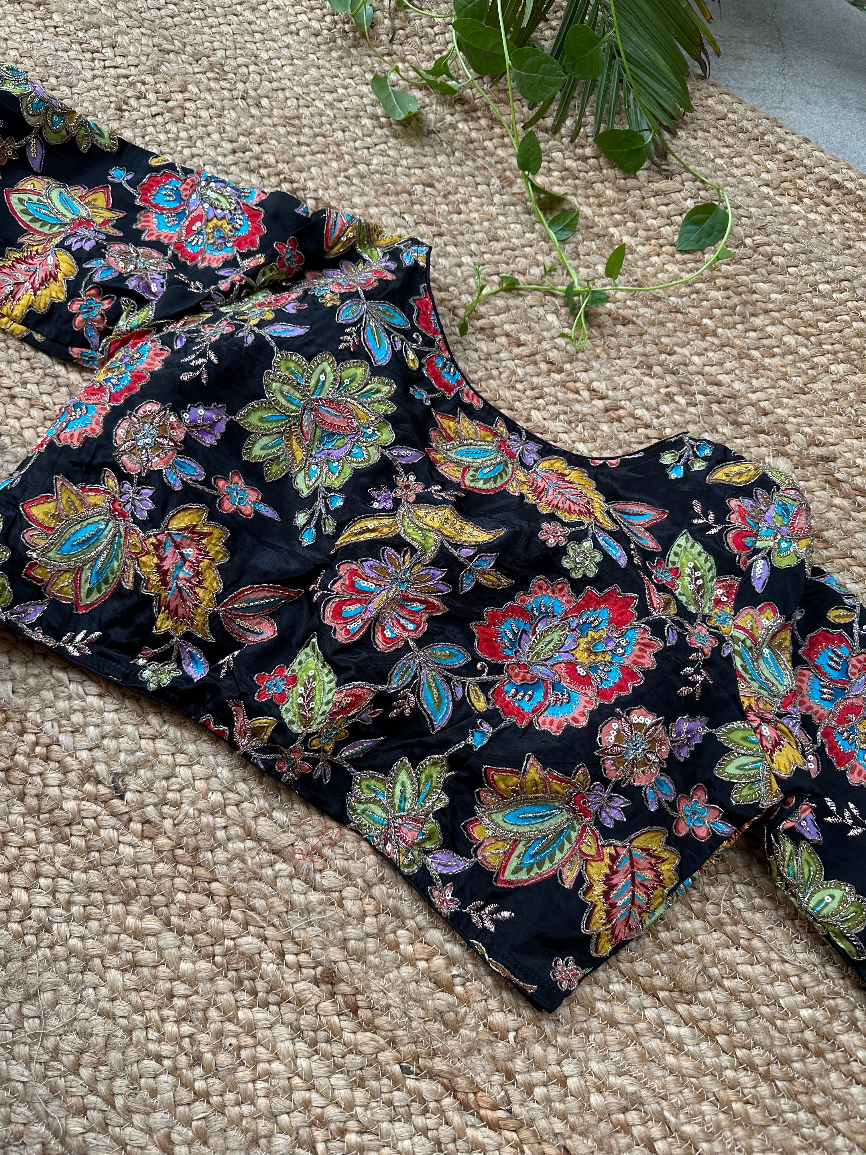 Material: Crepe Fabric with digital print and embroidery over each print outline.