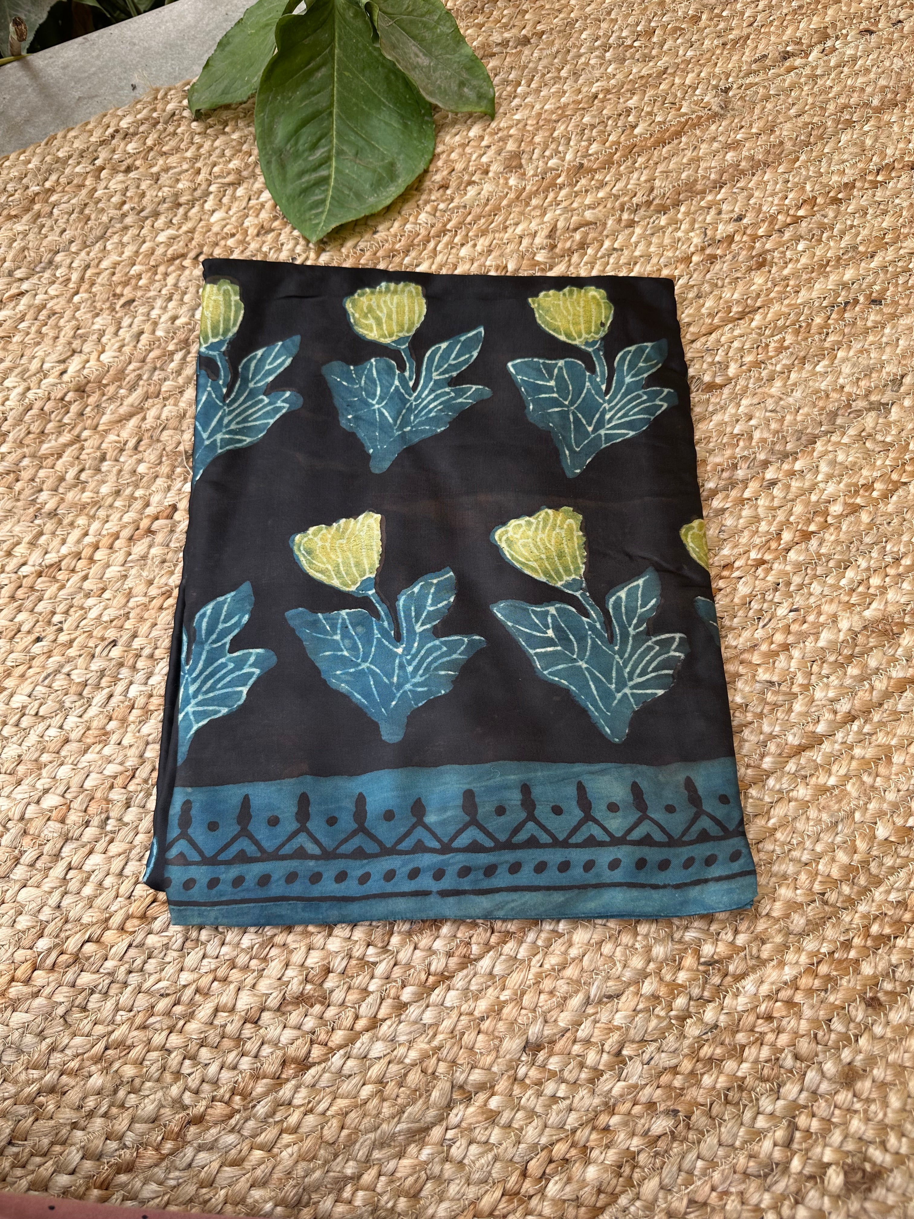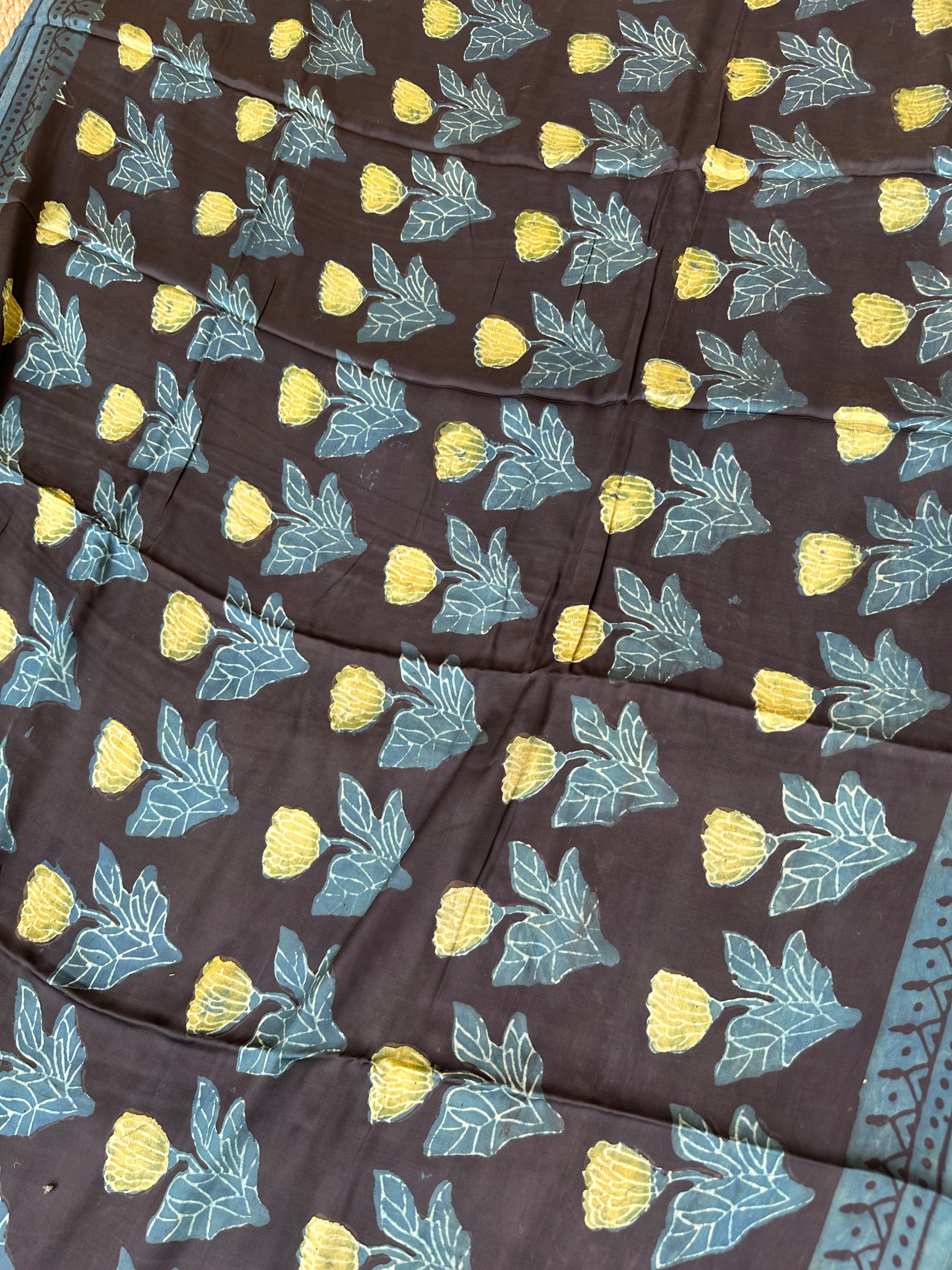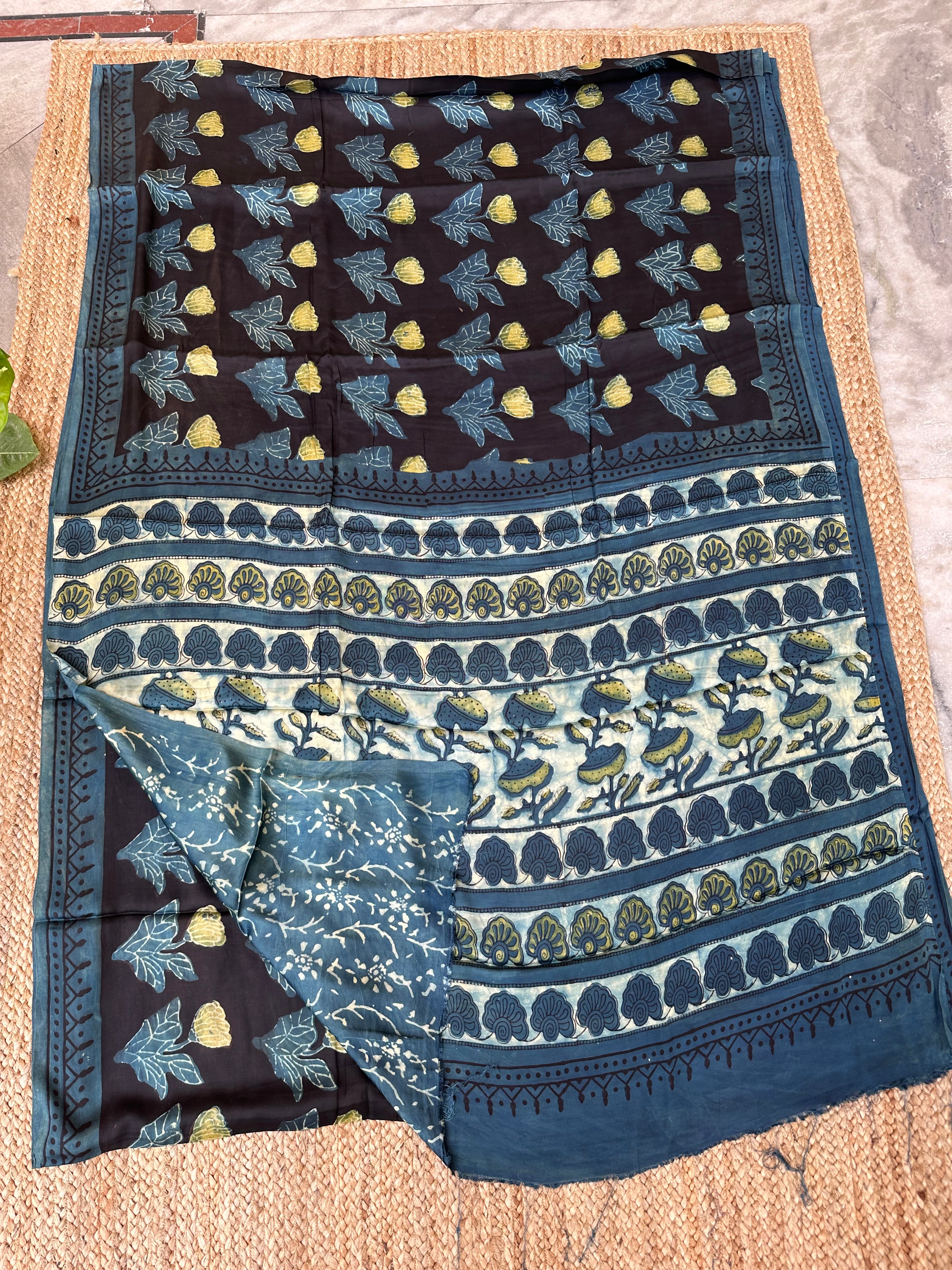 Material: Modal Silk. Handblock print using natural dyes. Authentic handblock print saree.