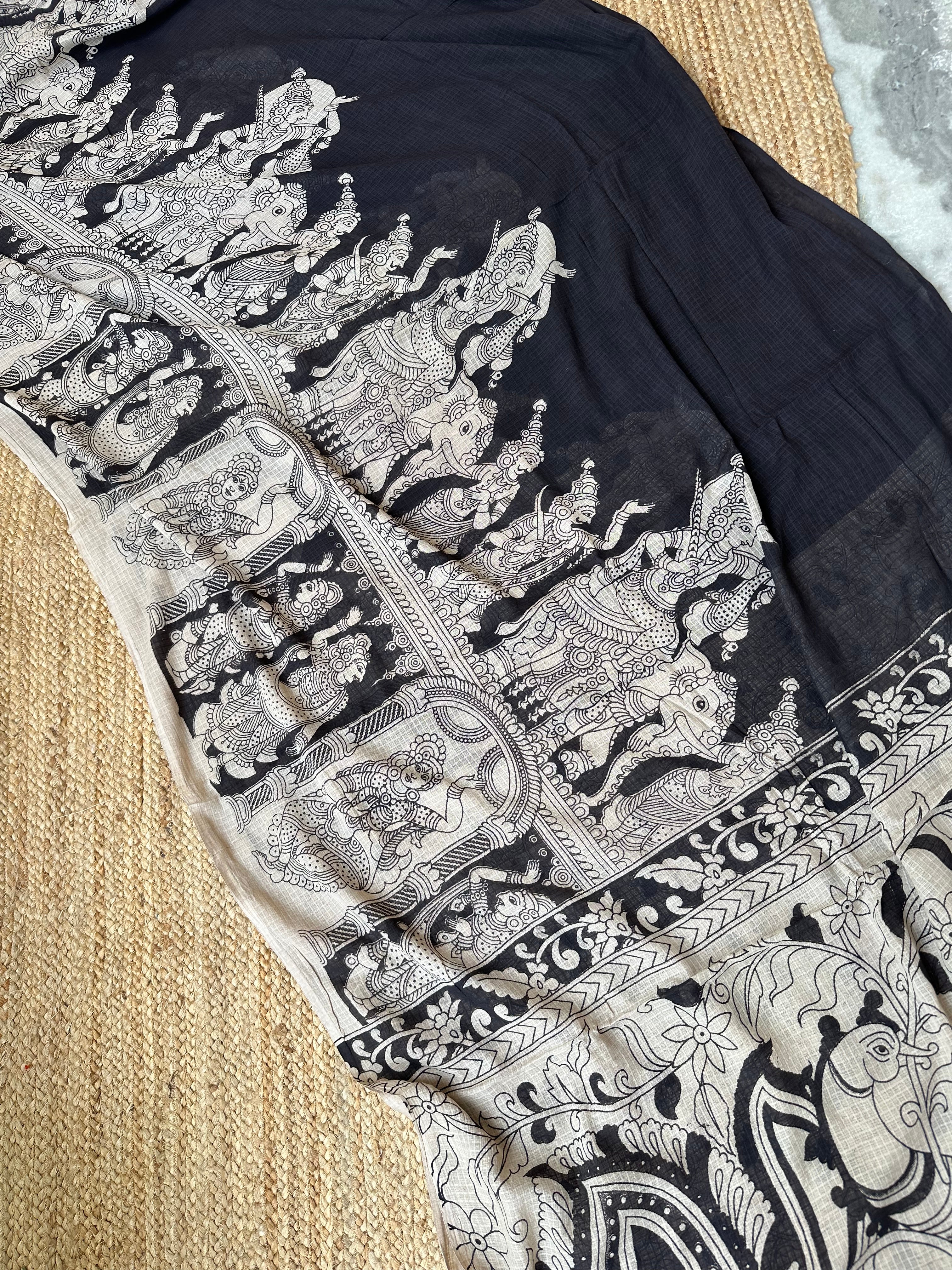 Material: Very soft Kota cotton. It is not stiff. All hand kalamkari done by artisans.