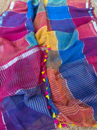 Blue Multi Checks Linen Handloom Saree