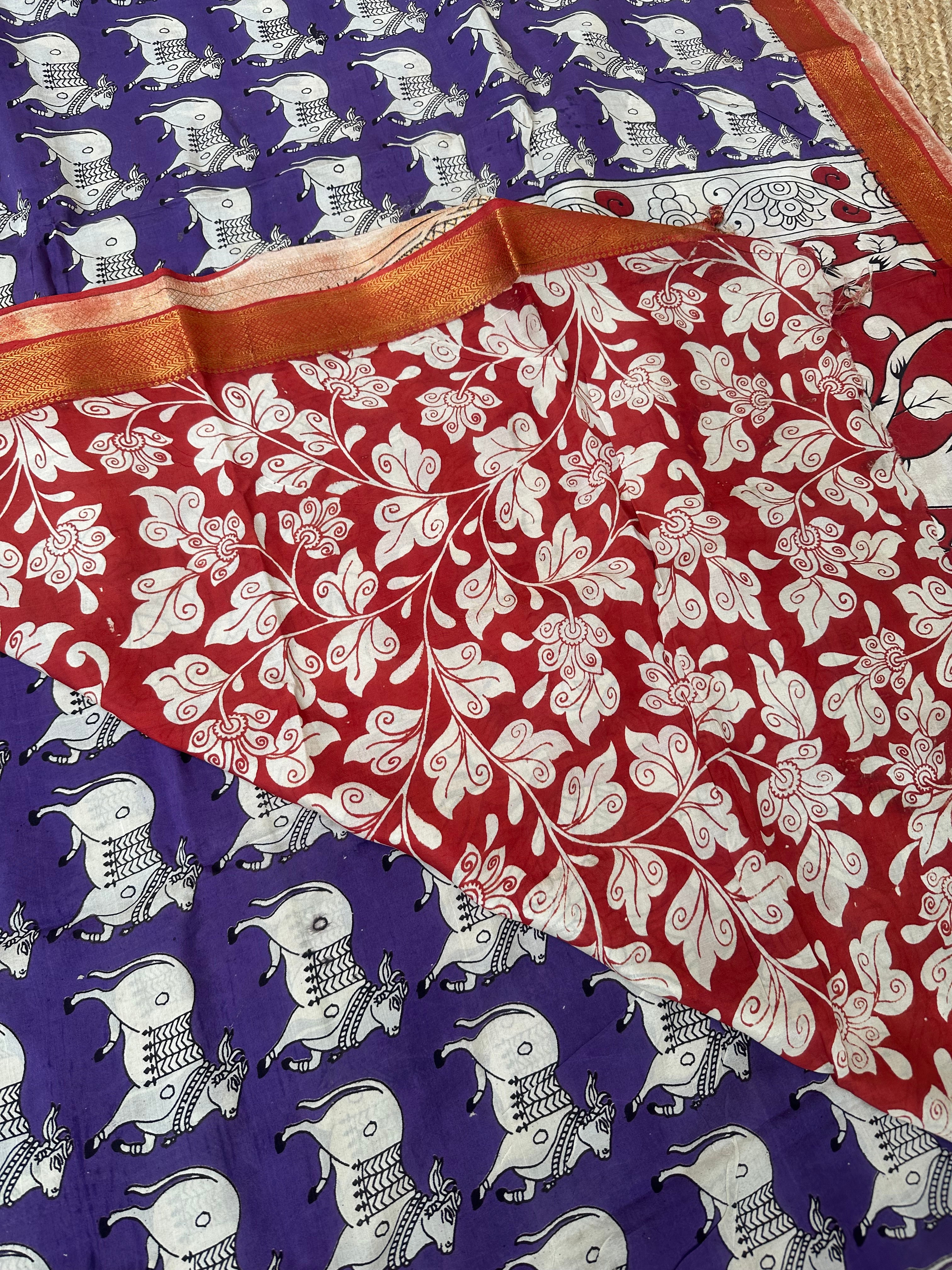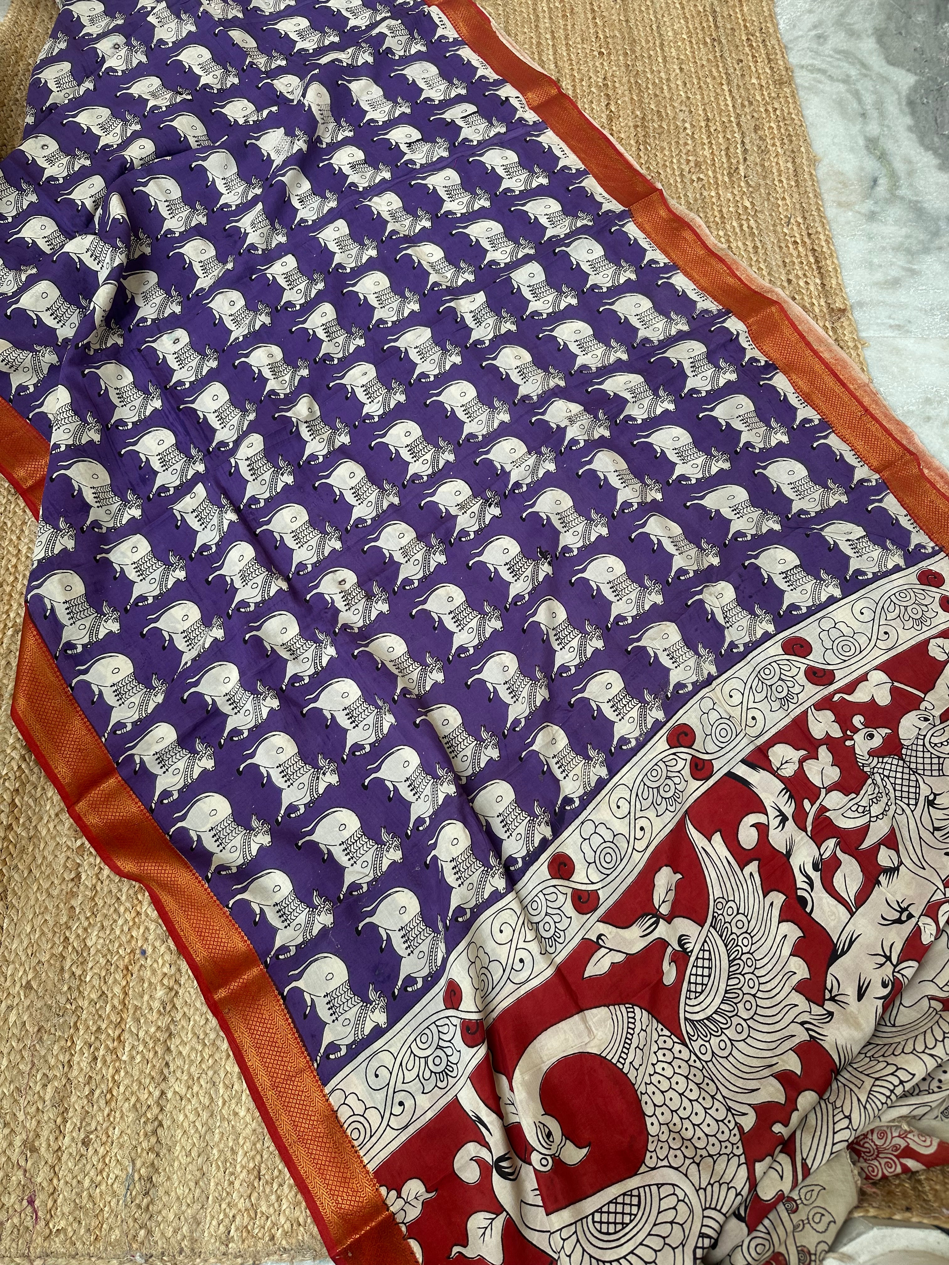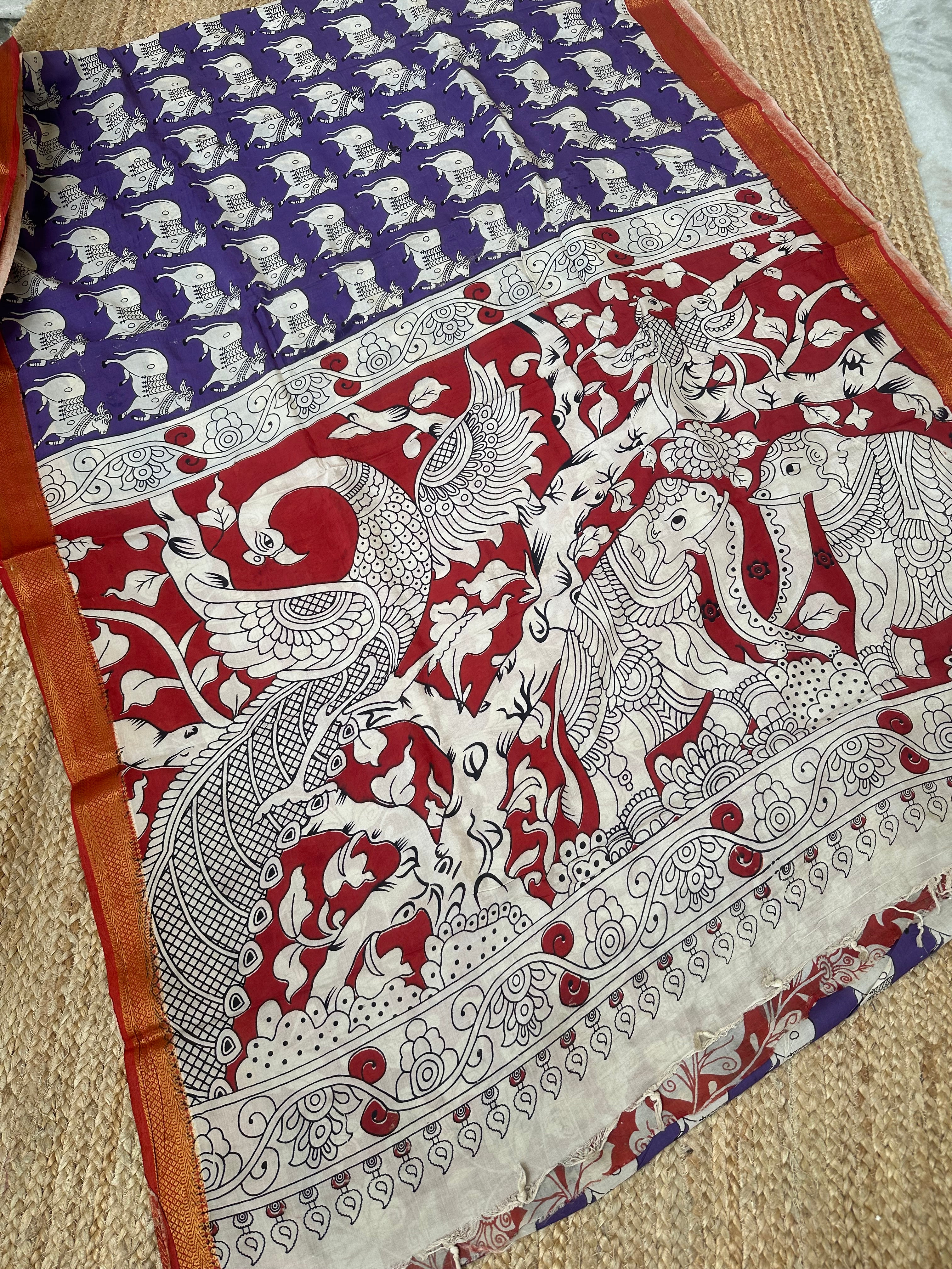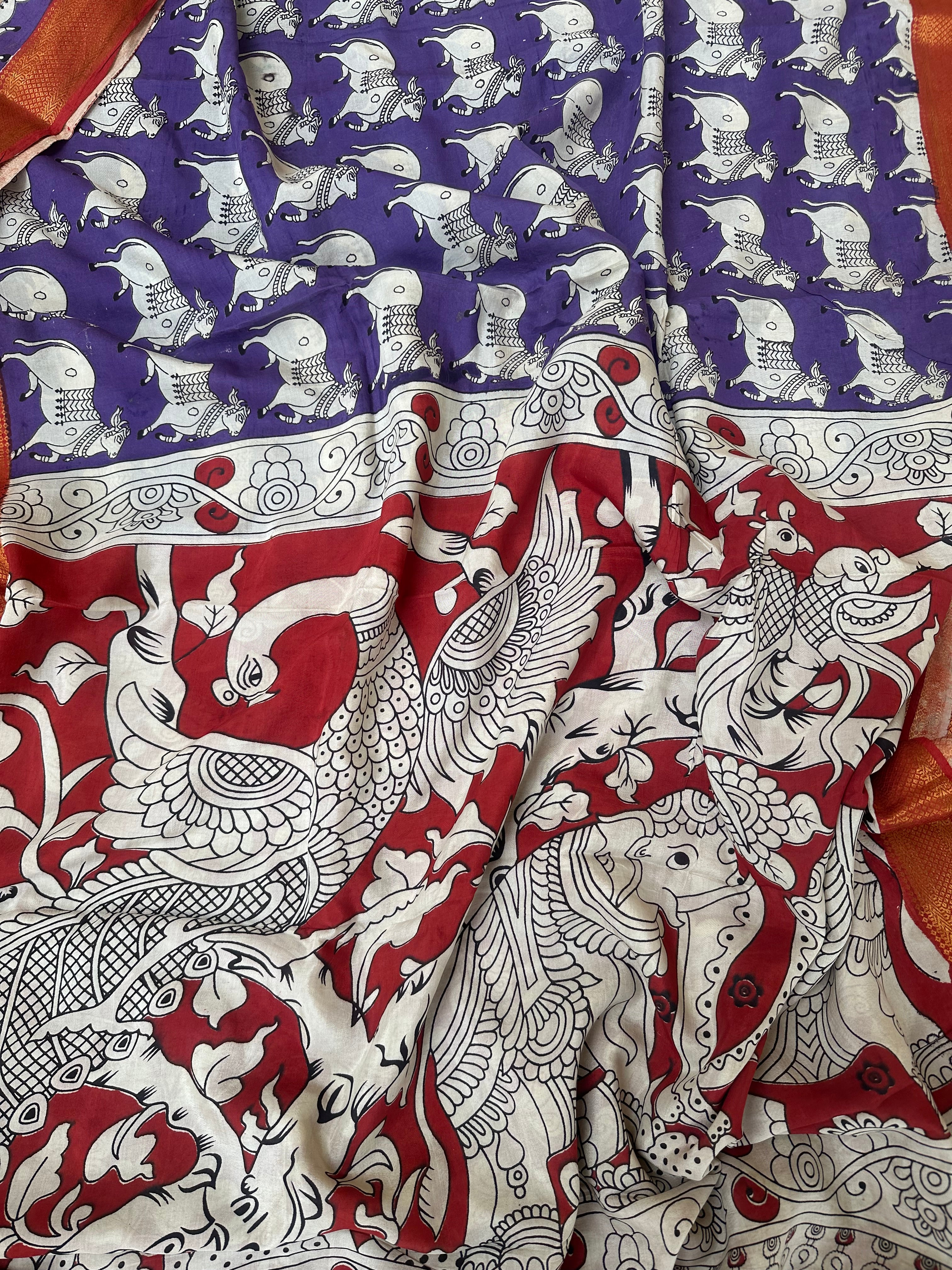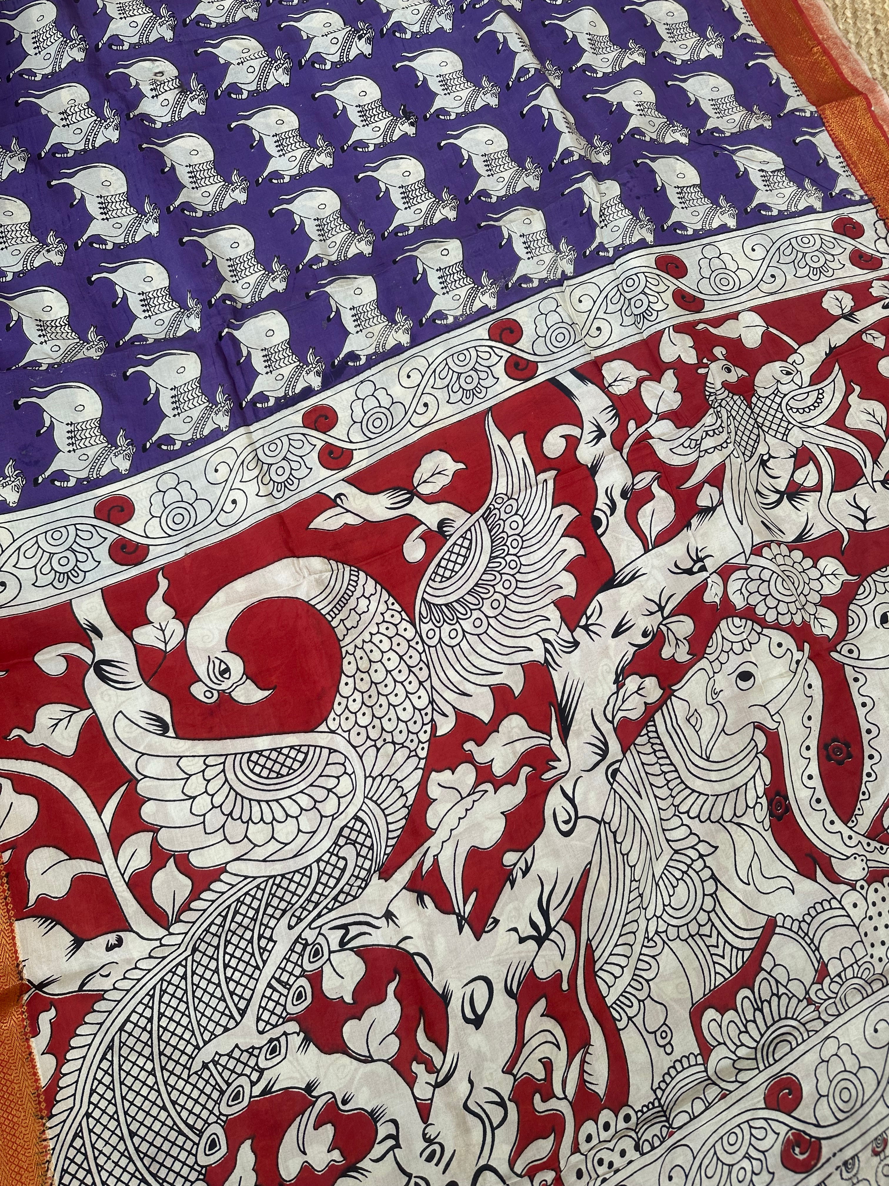 Material: Pure Chennur silk Kalamkari work saree. Very flowy fabric that you can wear in any weather.