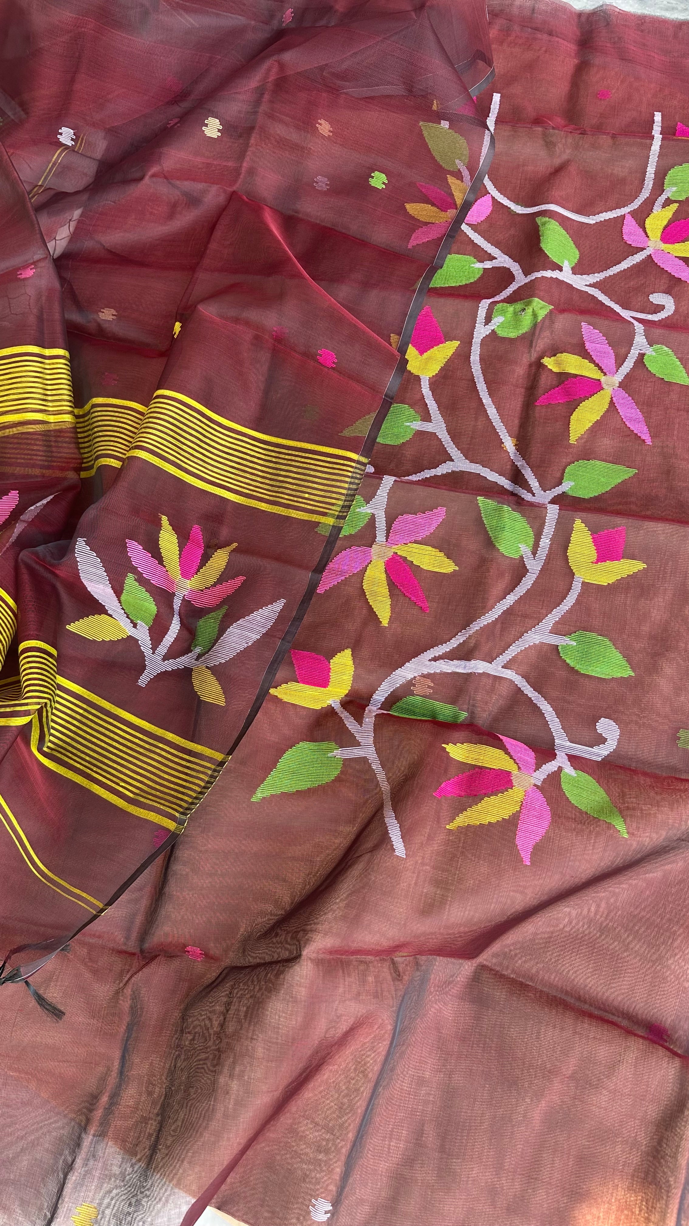 Brown Jamdani Pure Muslin Kurta Set