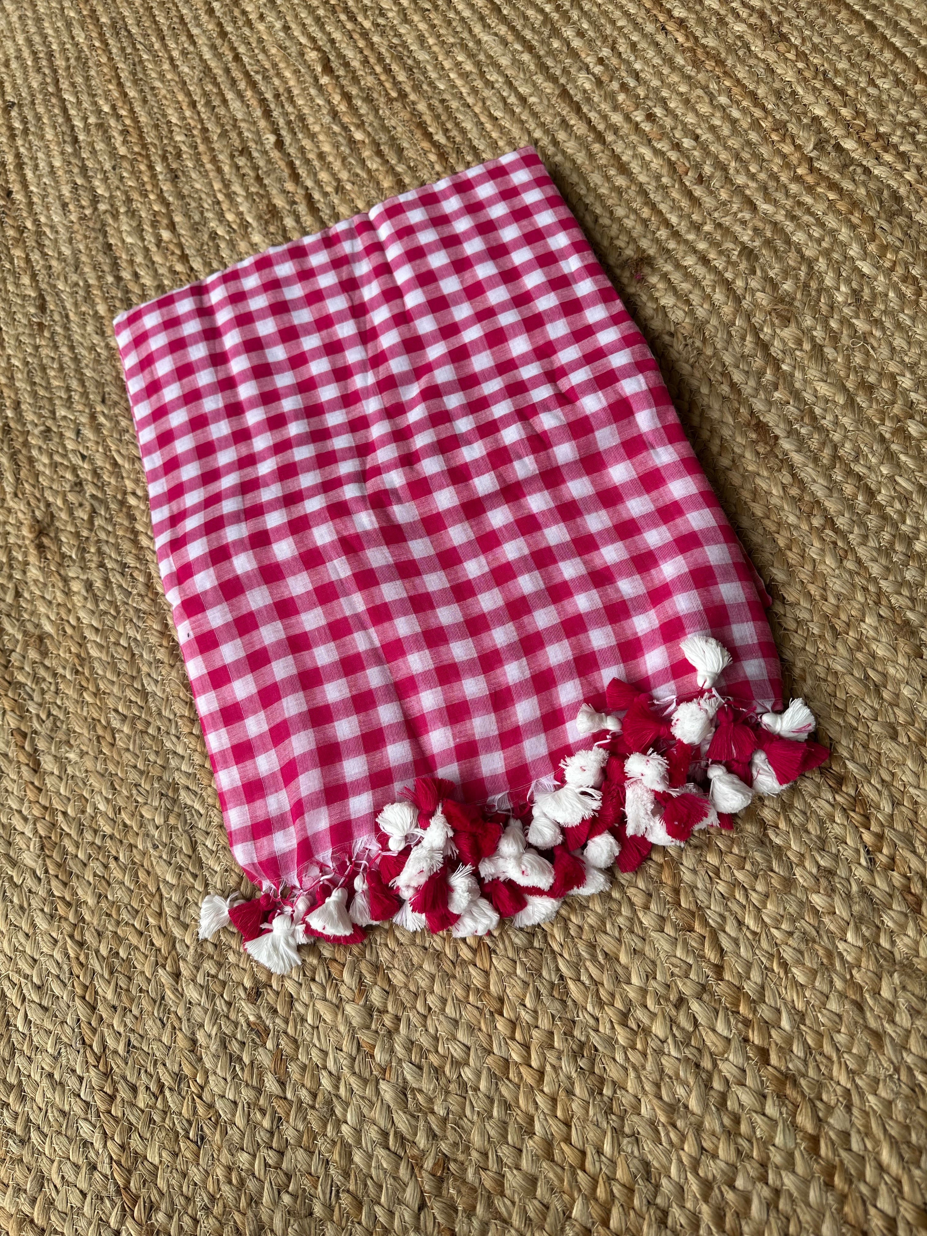 Cotton Handloom check saree Pink