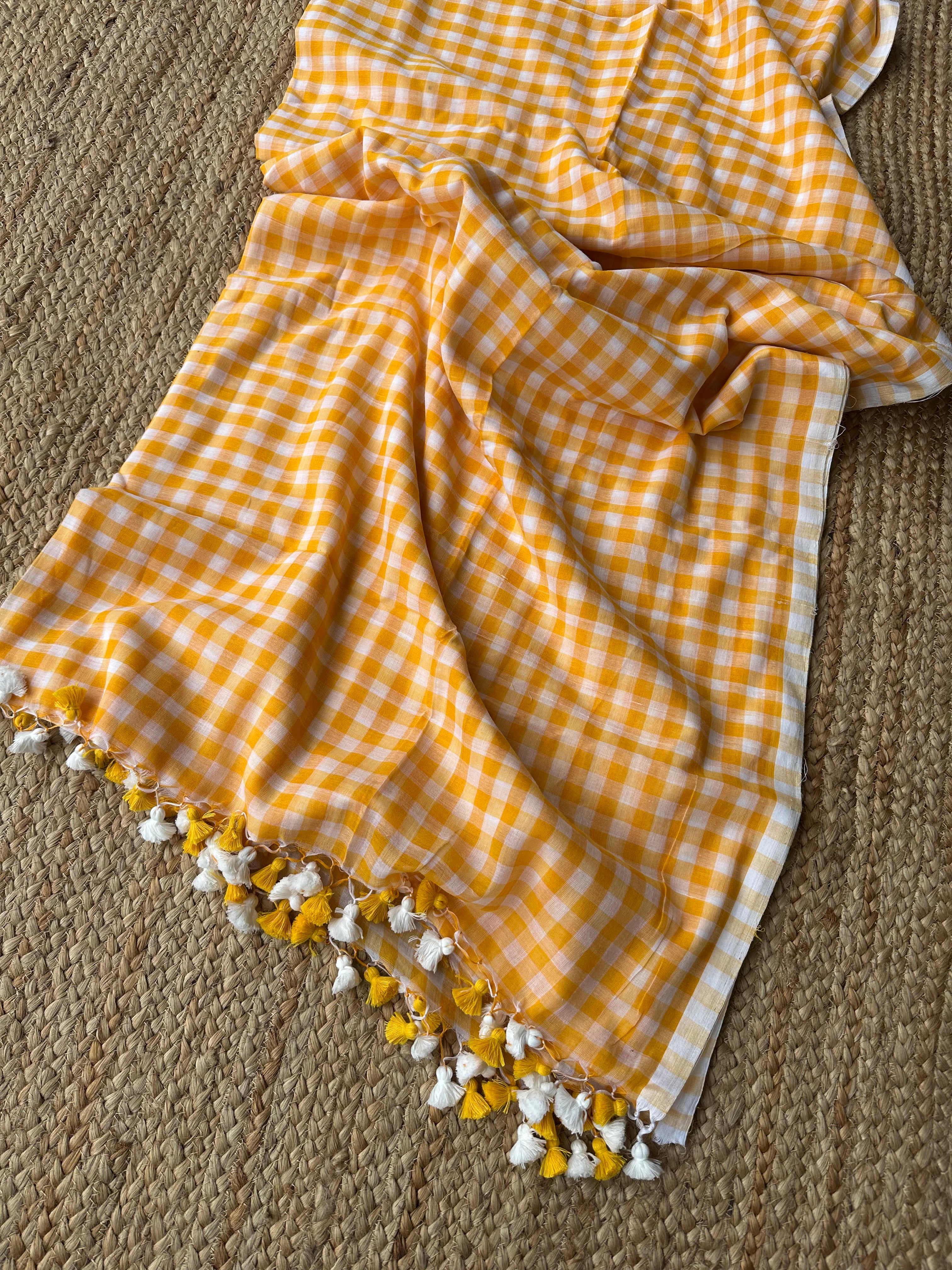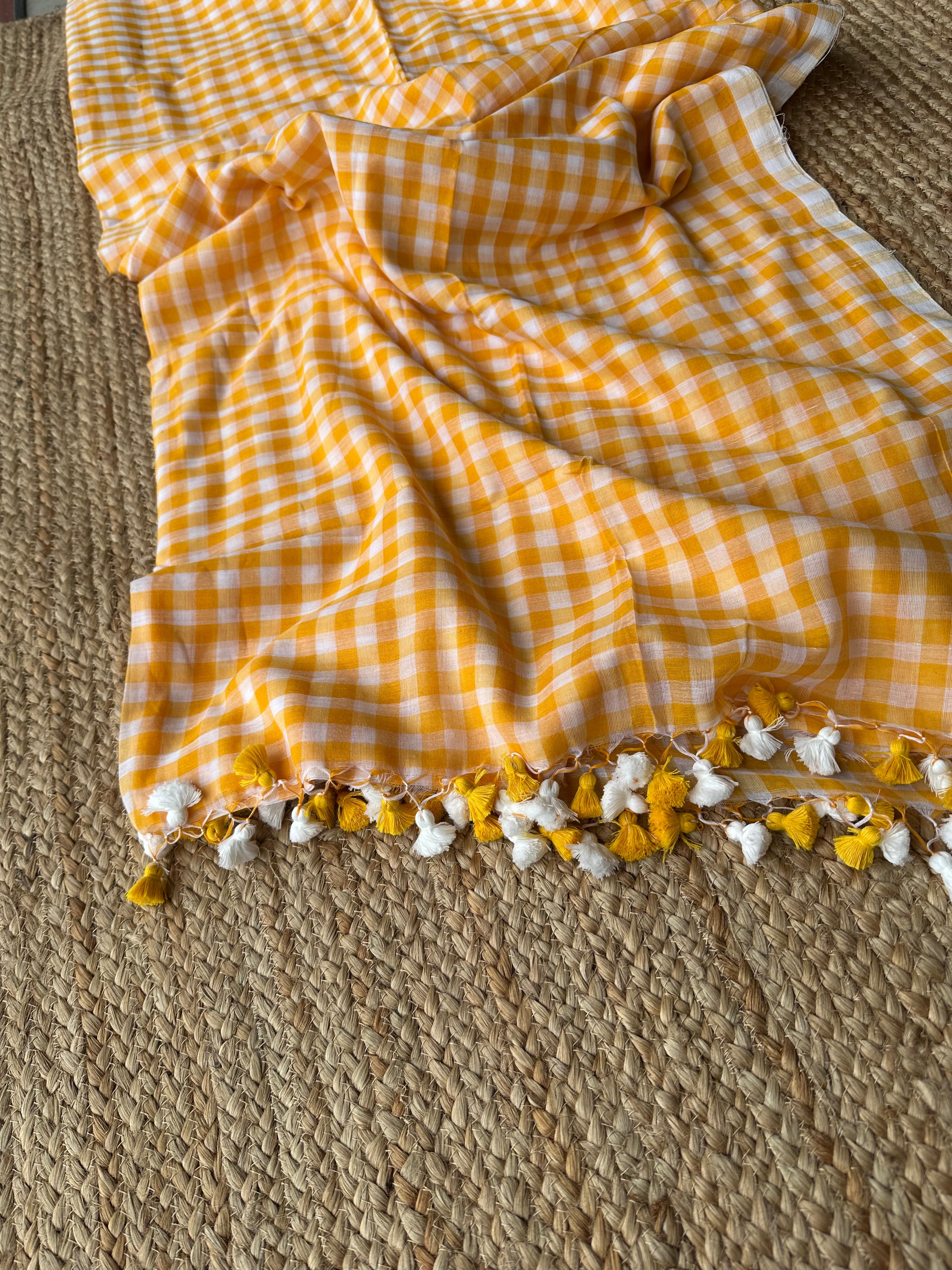 Pure cotton handloom saree gives a very smart look for office or casual outing. Length 5.8 mtrs.