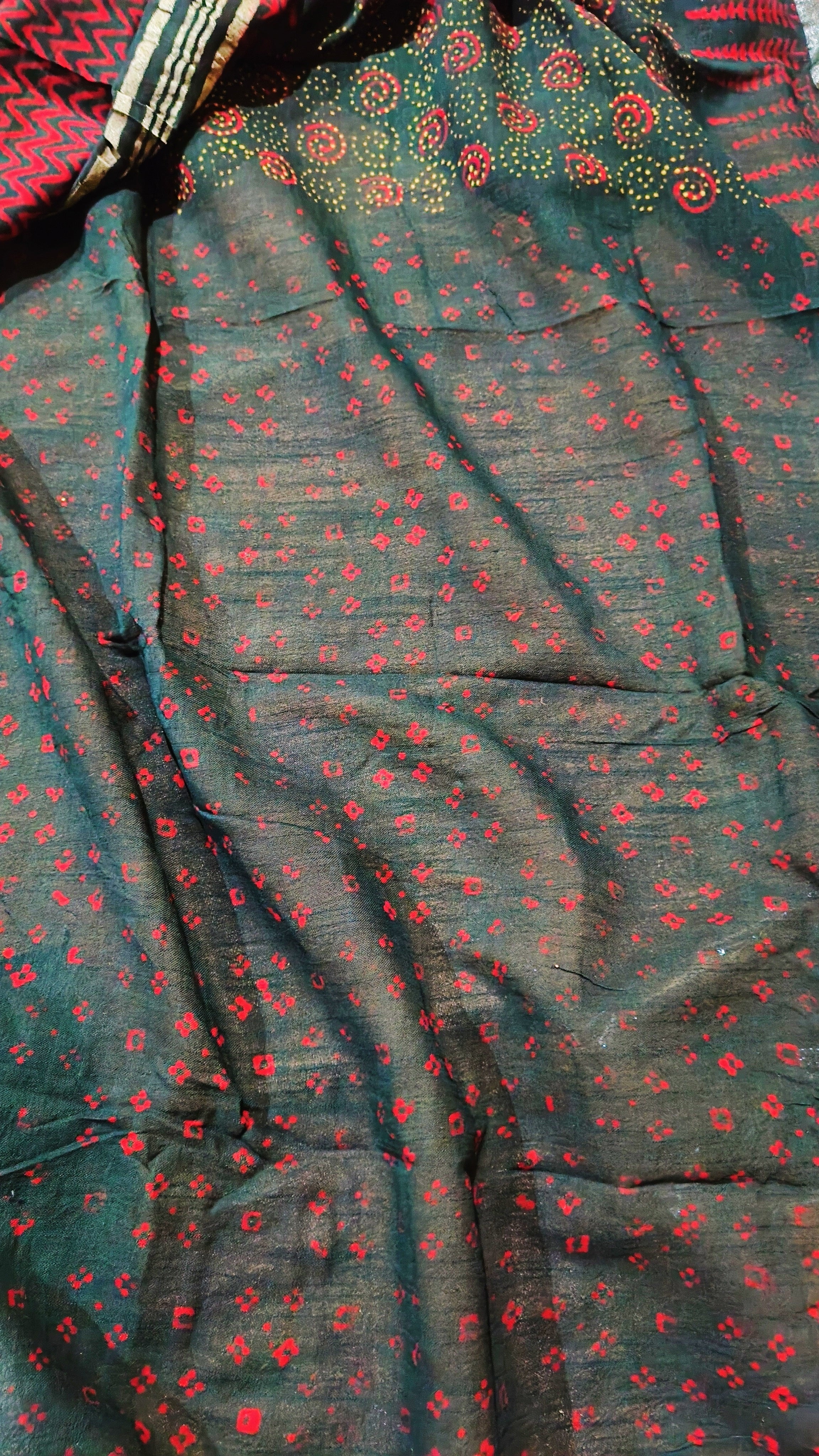 Please keep in mind that colour on ajrakh sarees and suits are natural dyes and they tend to bleed little while washing so wash seperately.