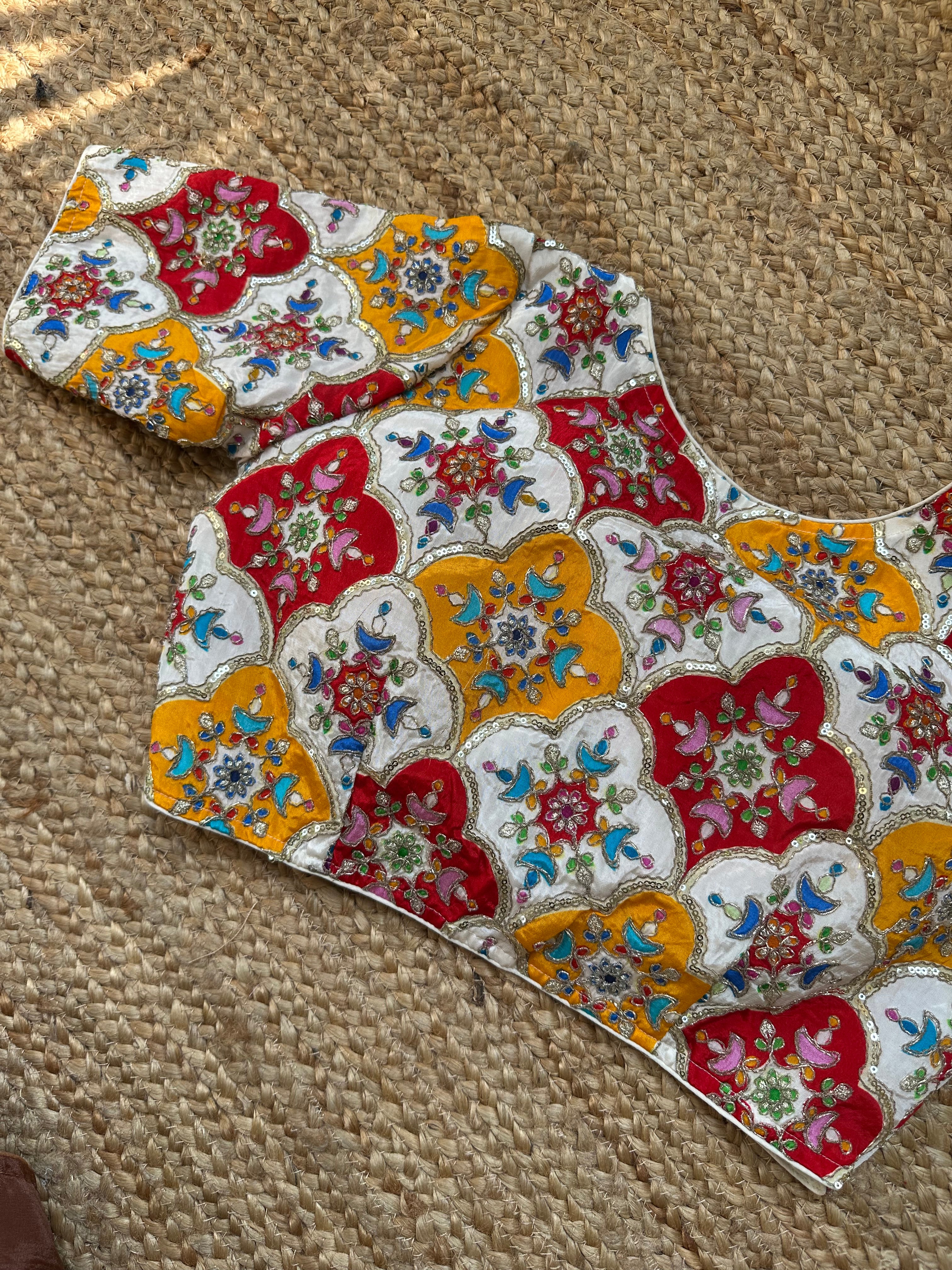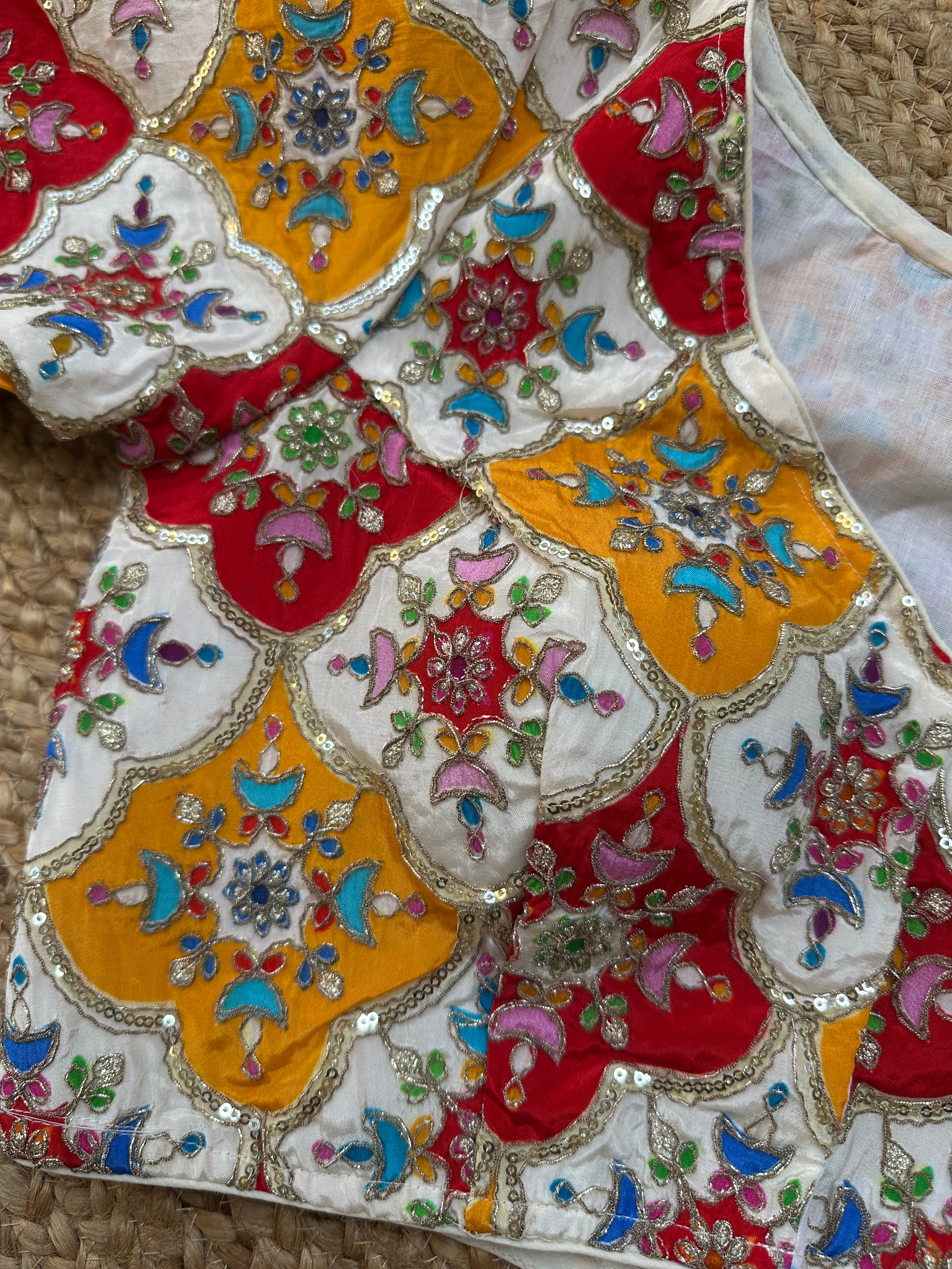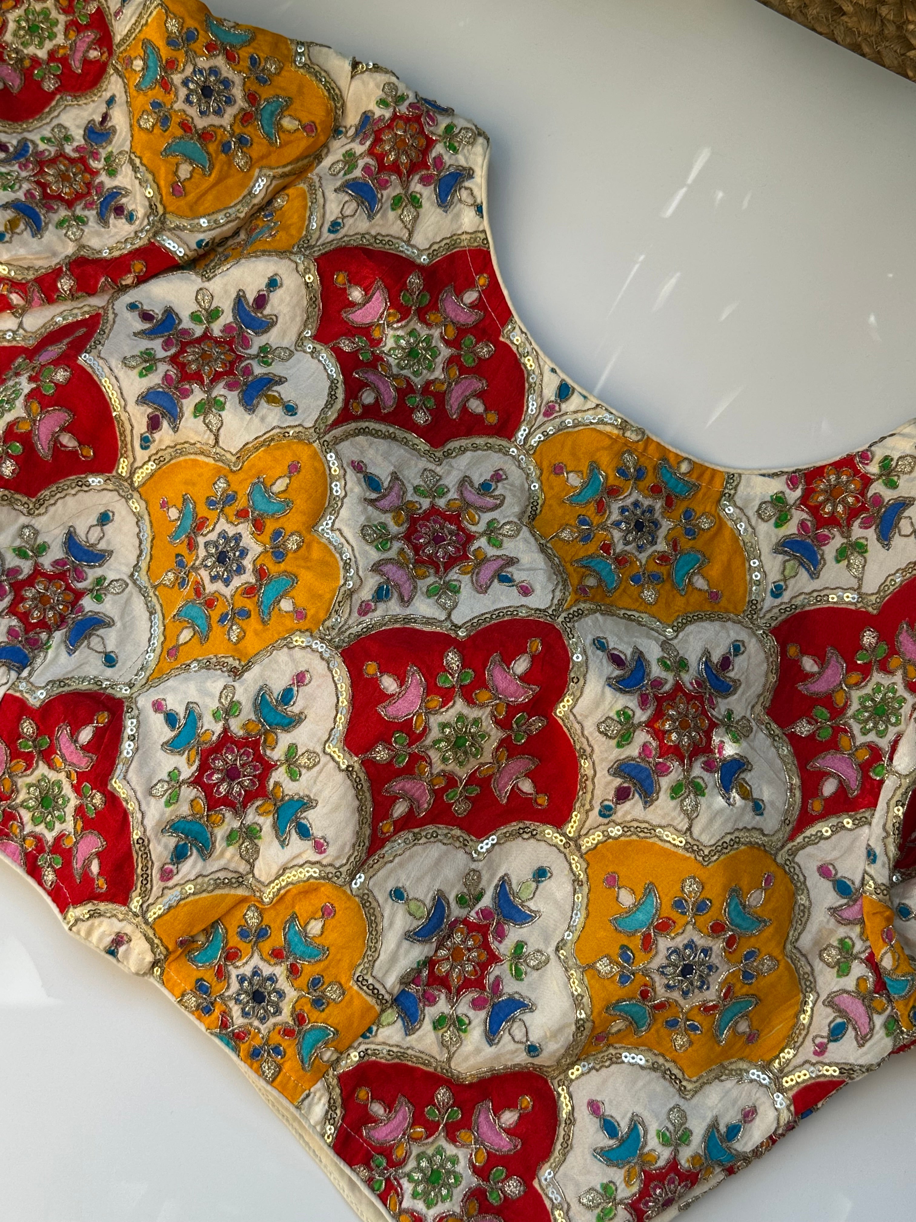 Please keep in mind that colour on ajrakh sarees and suits are natural dyes and they tend to bleed little while washing so wash seperately.