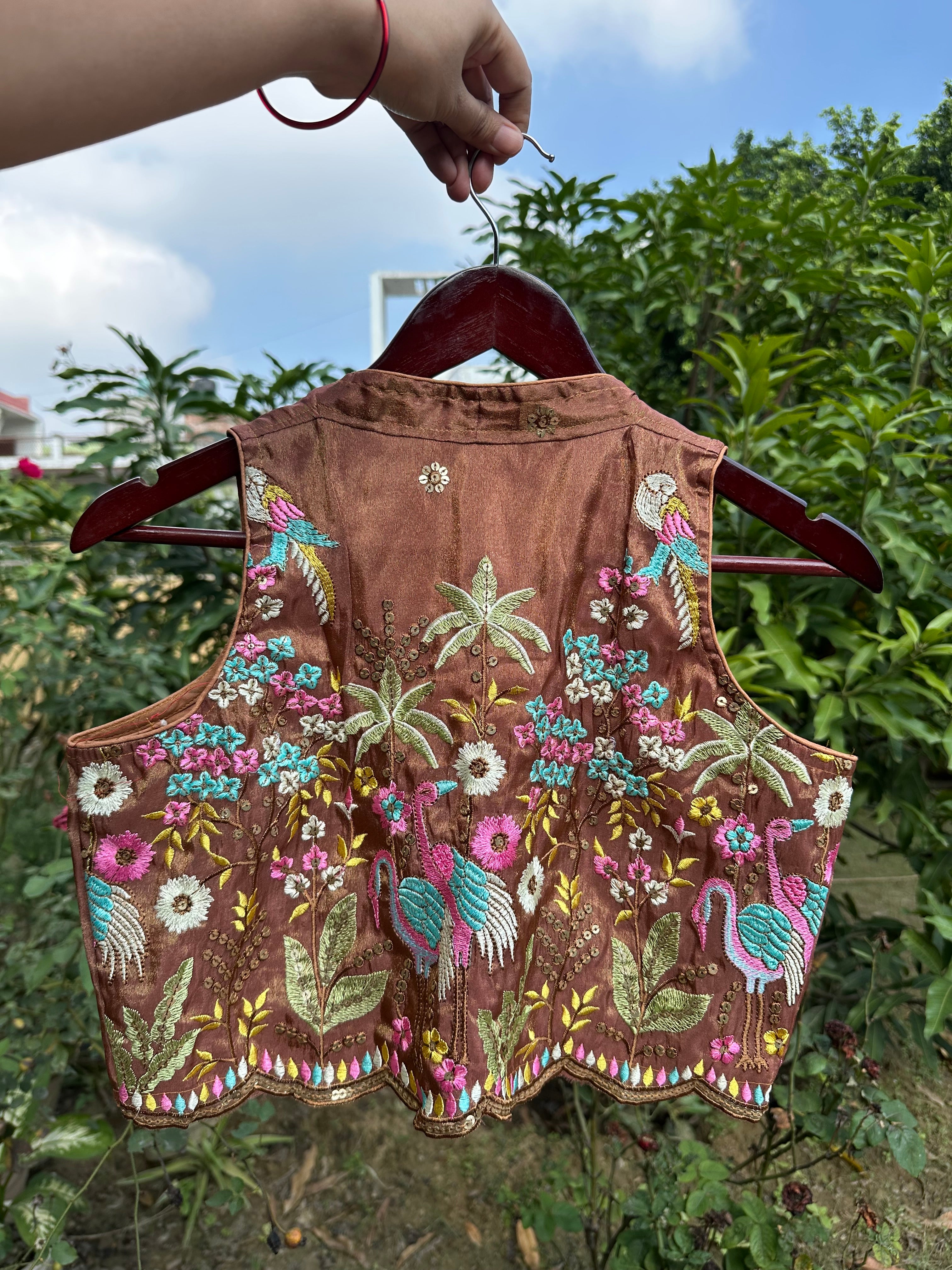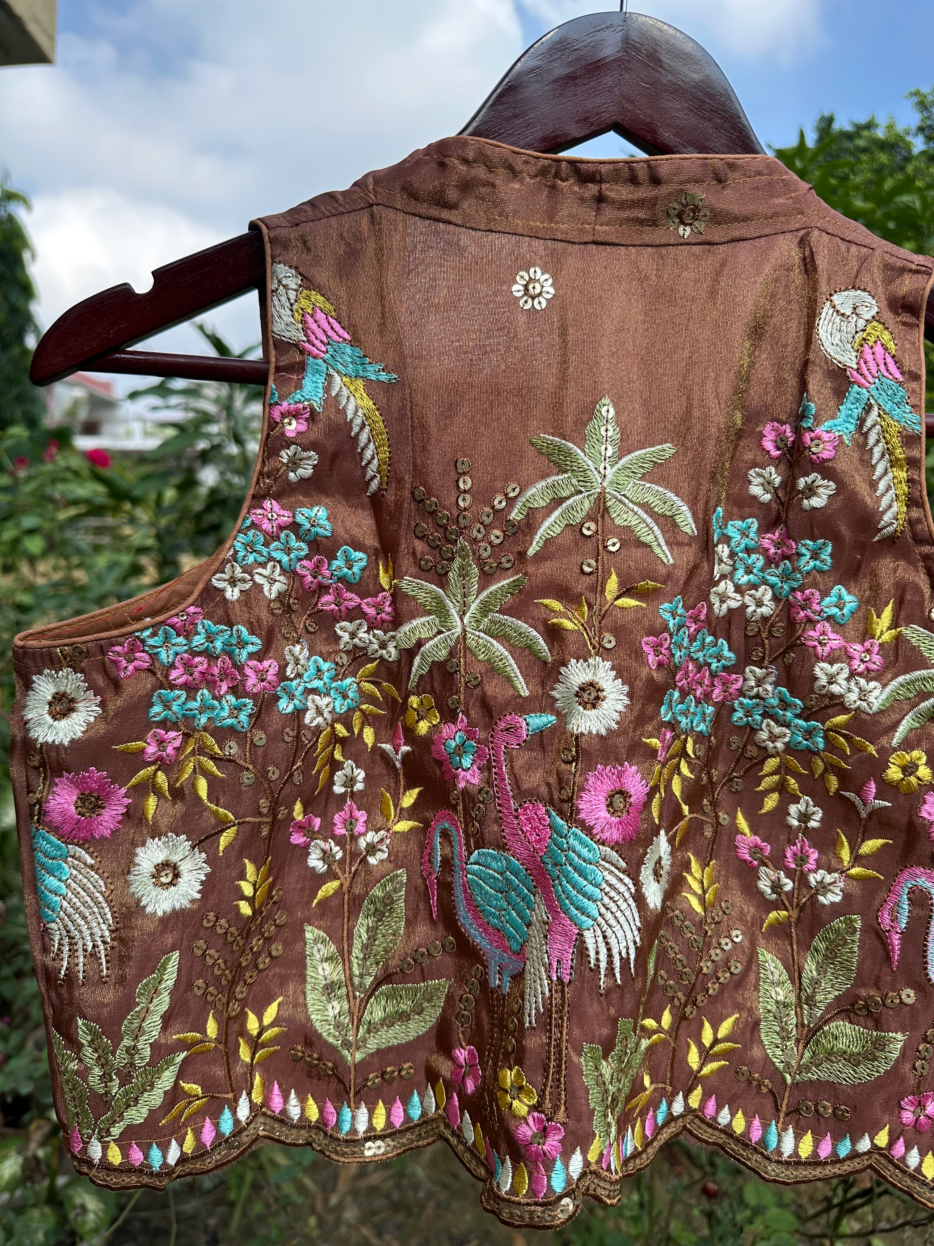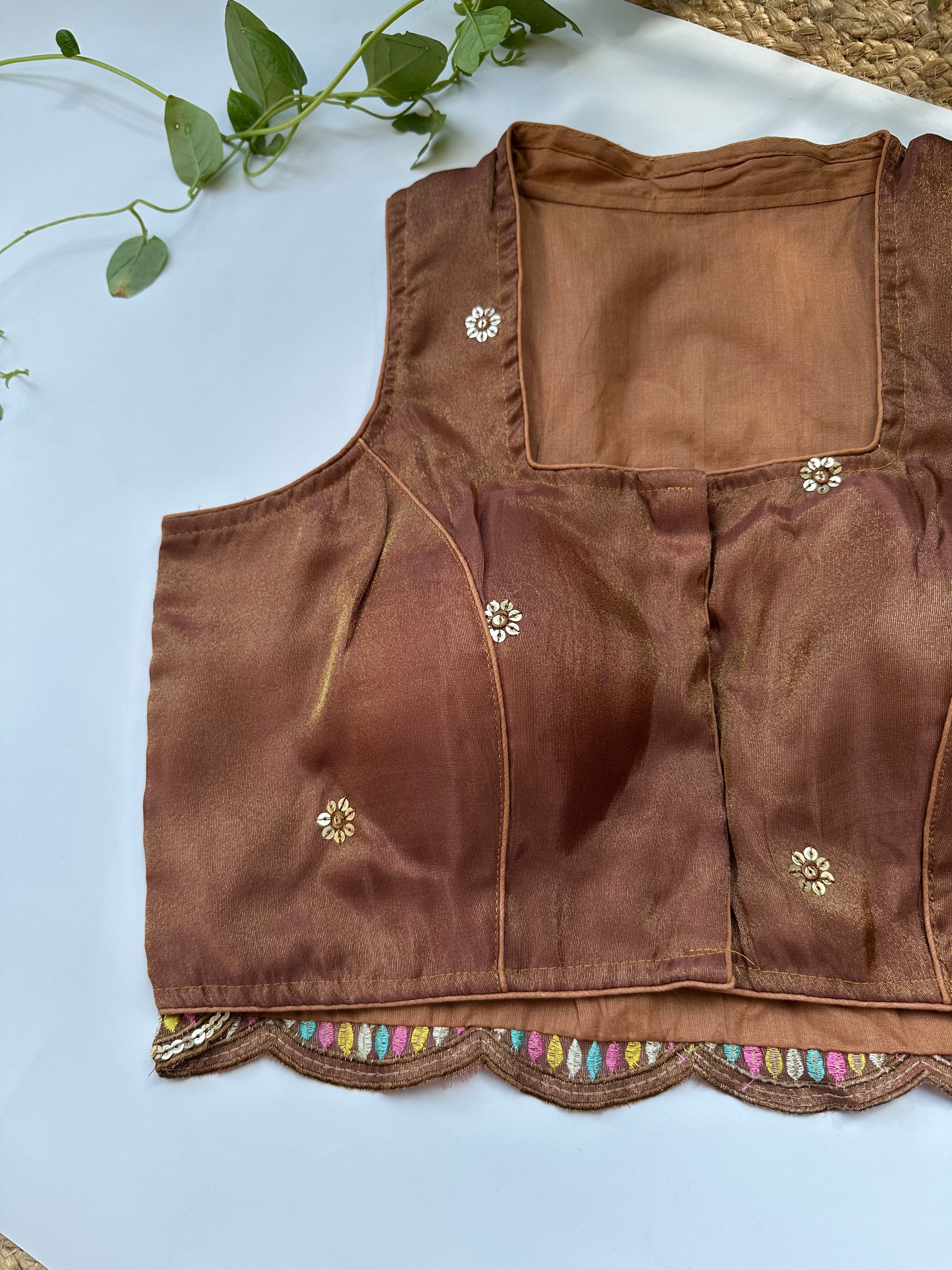 Material: Tissue fabric with embroidery and sequins work on back with scallop detailing.
