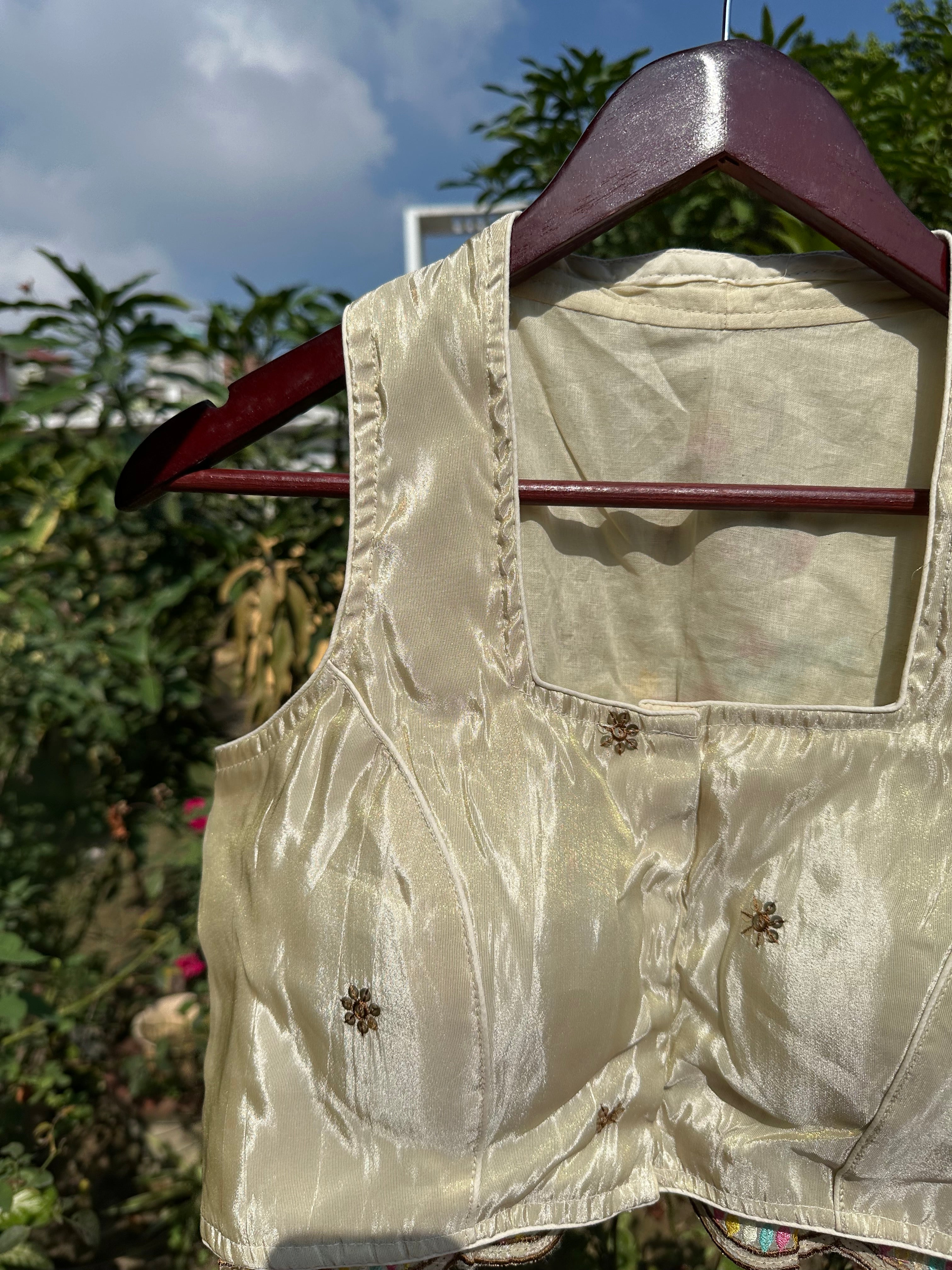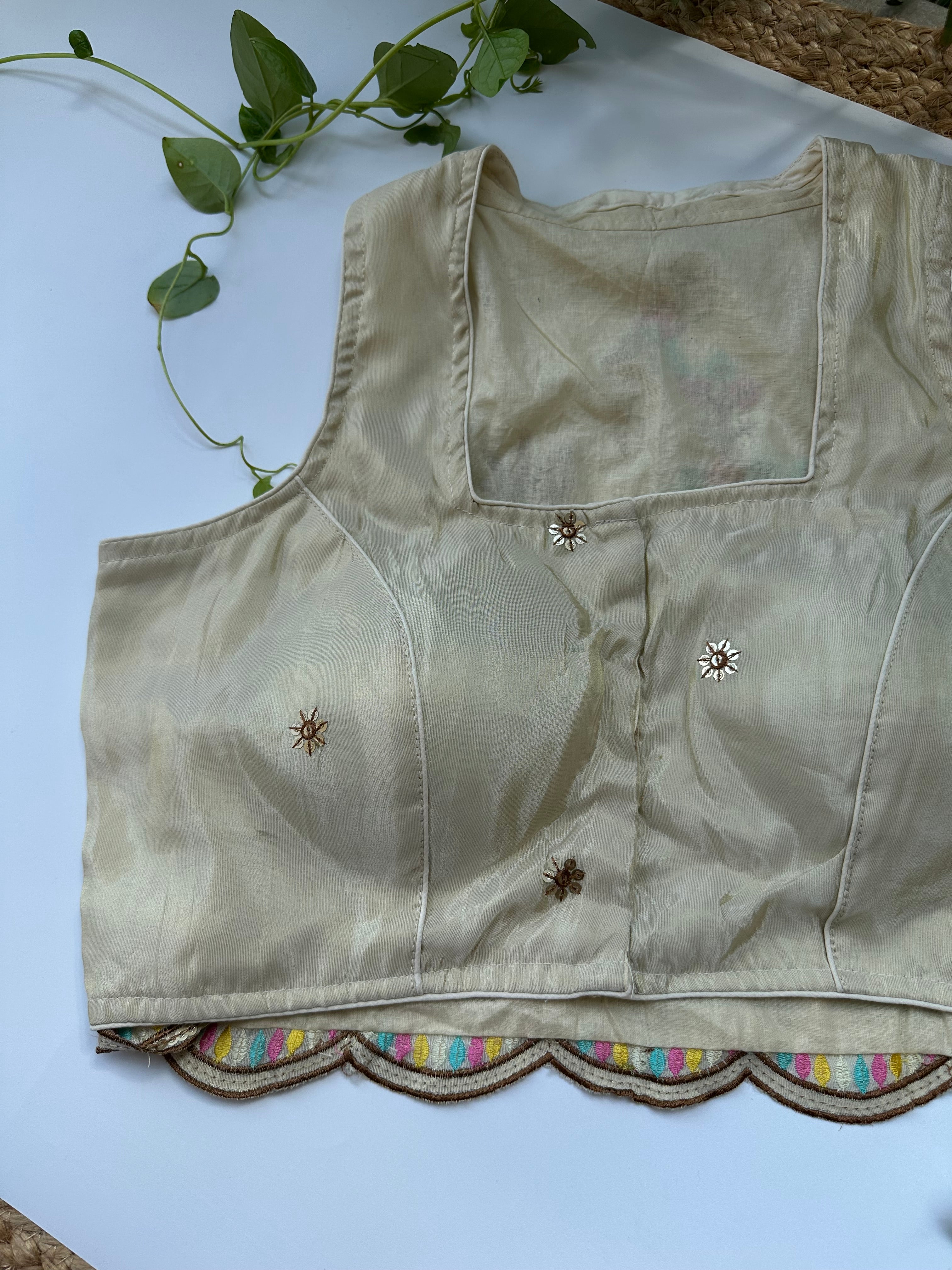Material: Tissue fabric with embroidery and sequins work on back with scallop detailing.