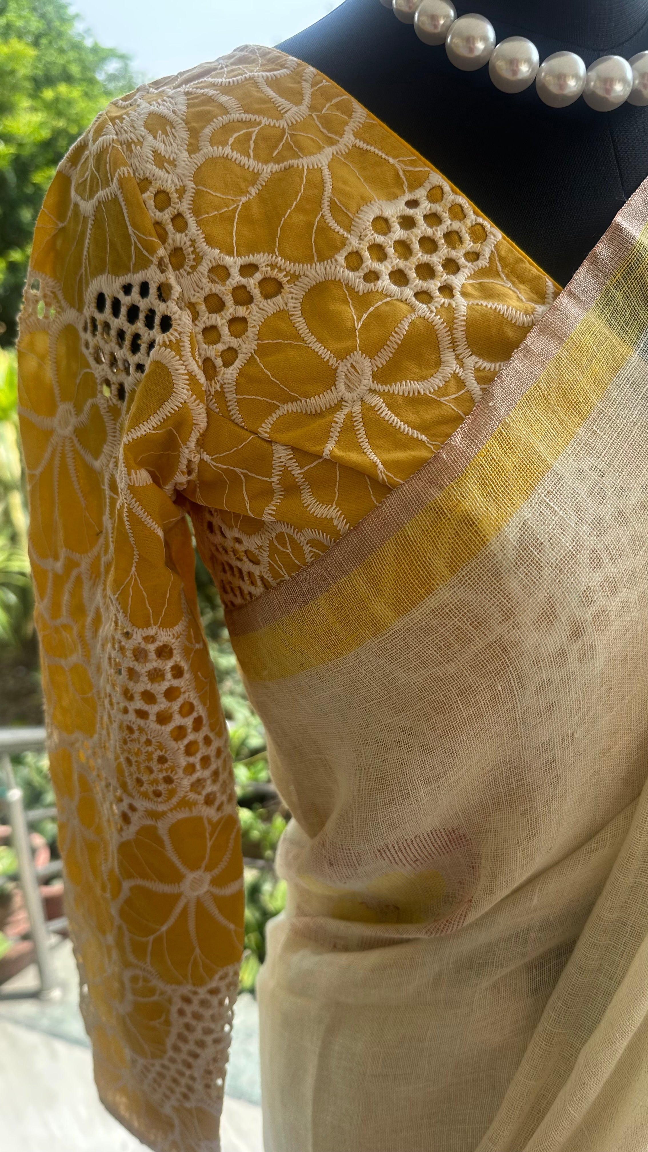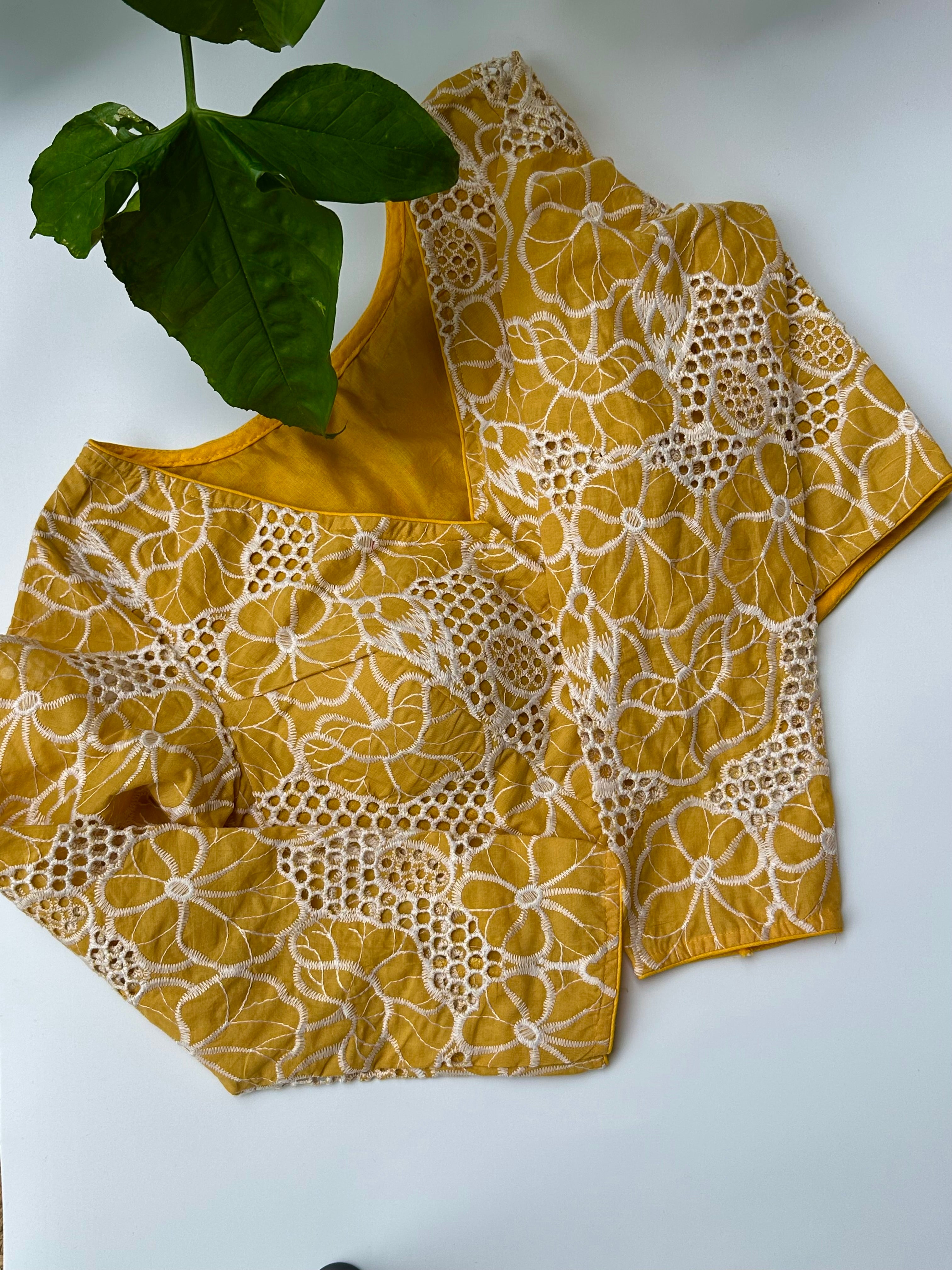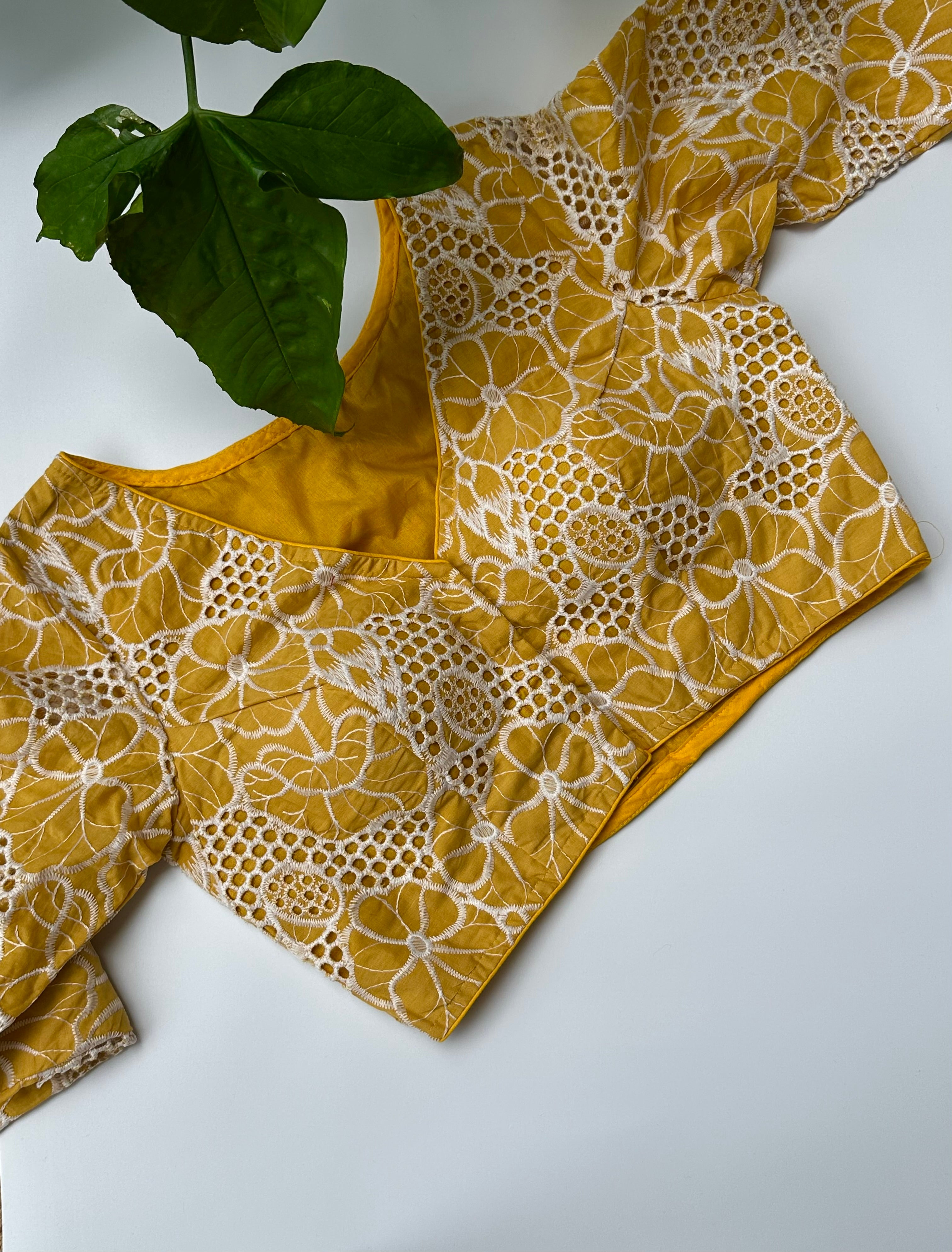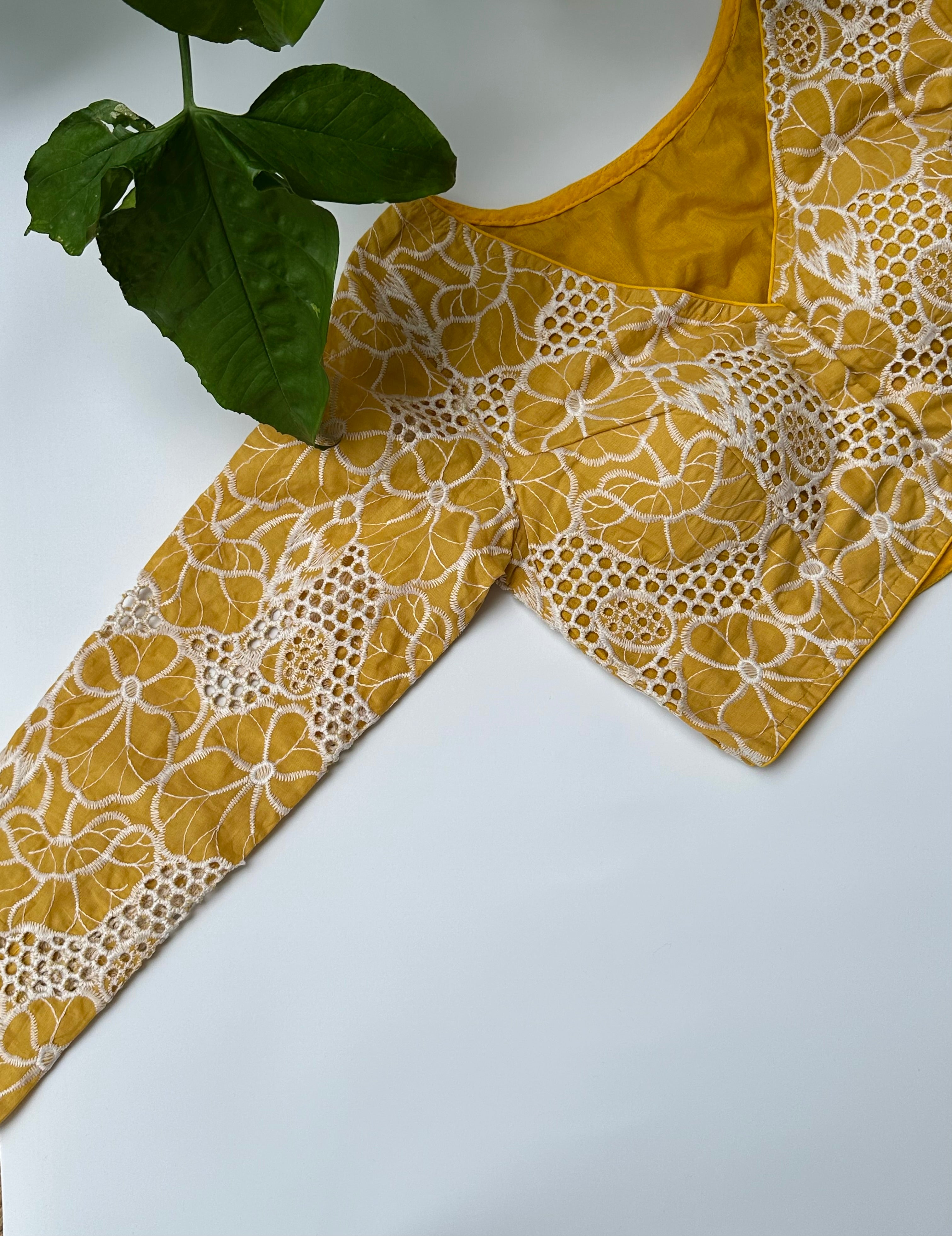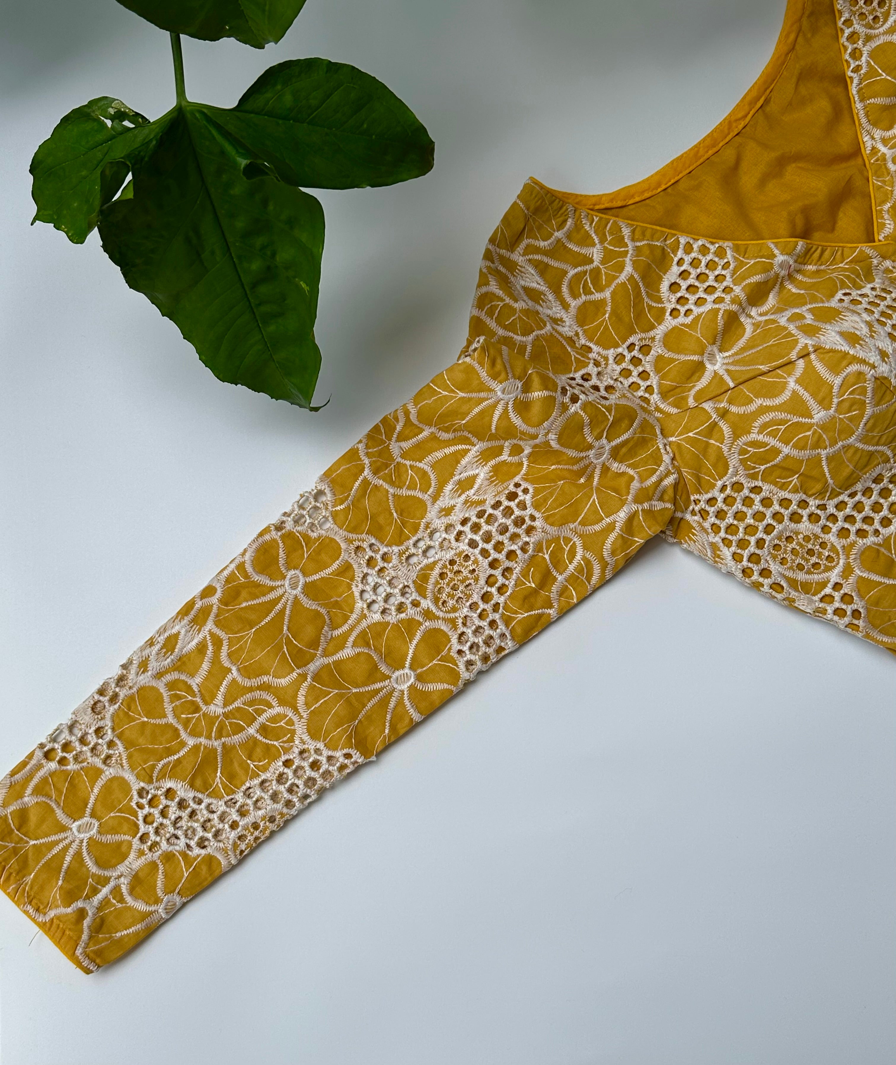 Cutwork Hakoba Full Sleeves Blouse (Yellow)