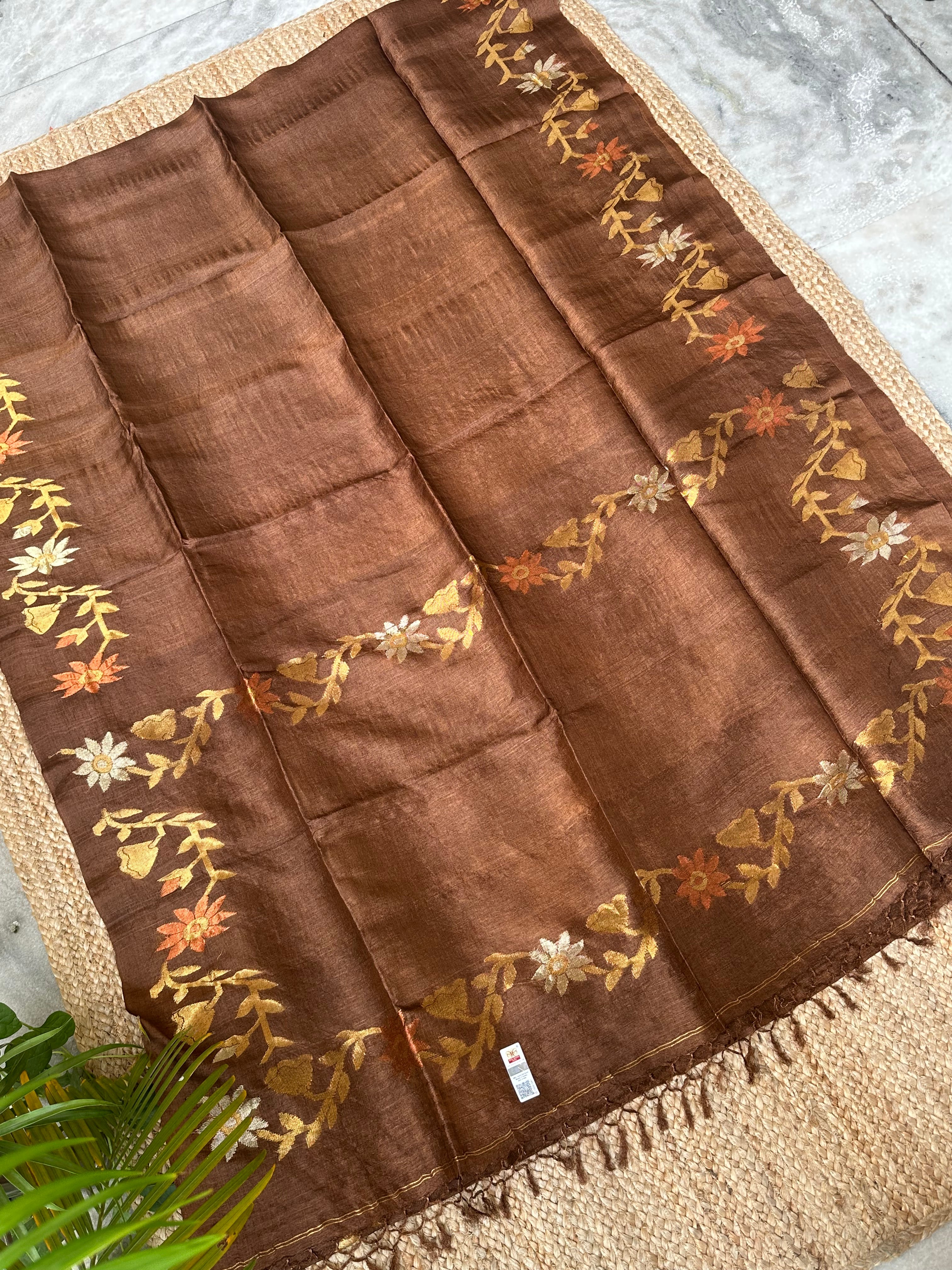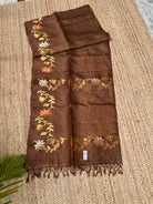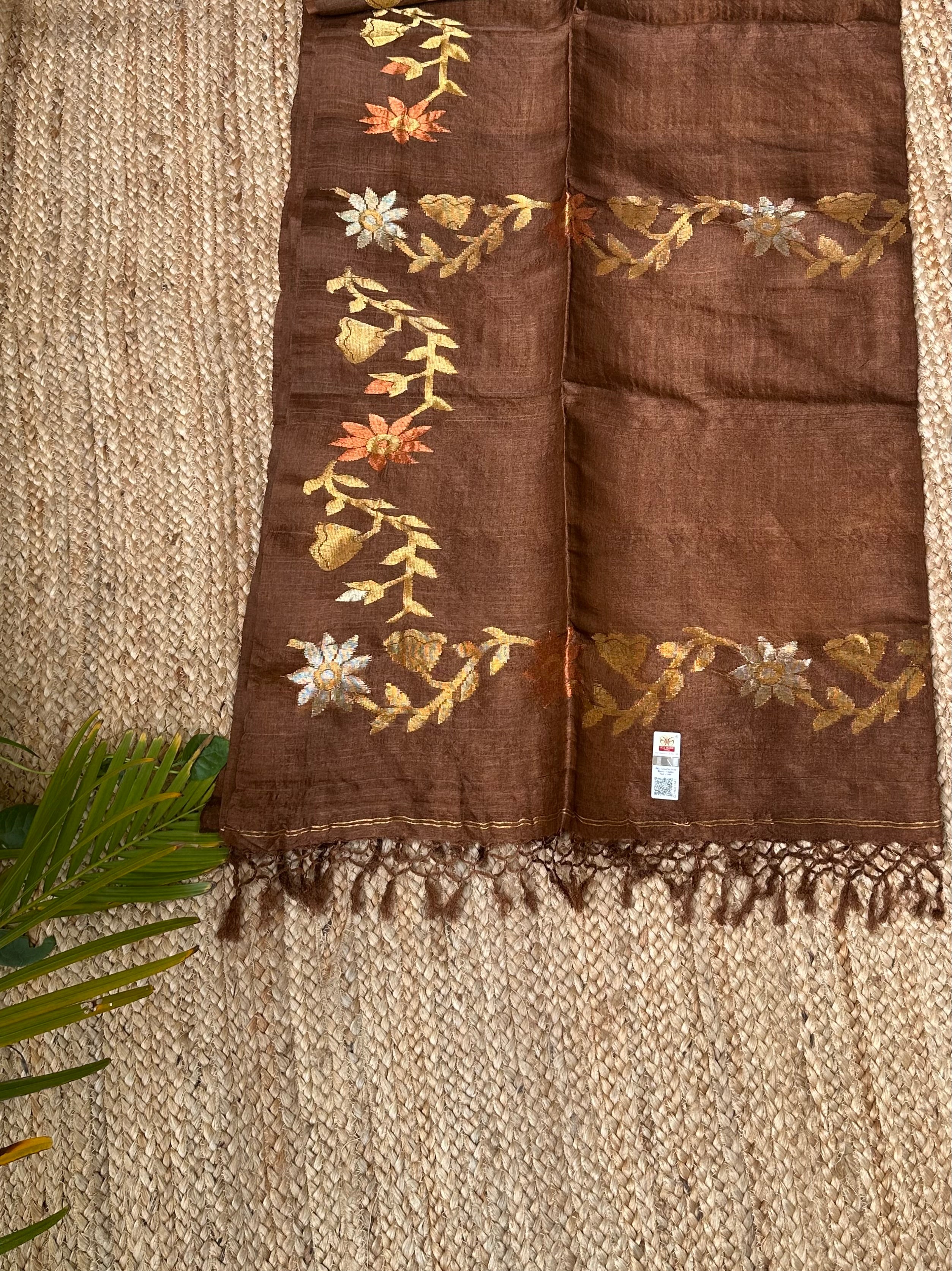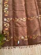 Chocolate Brown Tusser Jamdani Handloom Saree with Silk mark