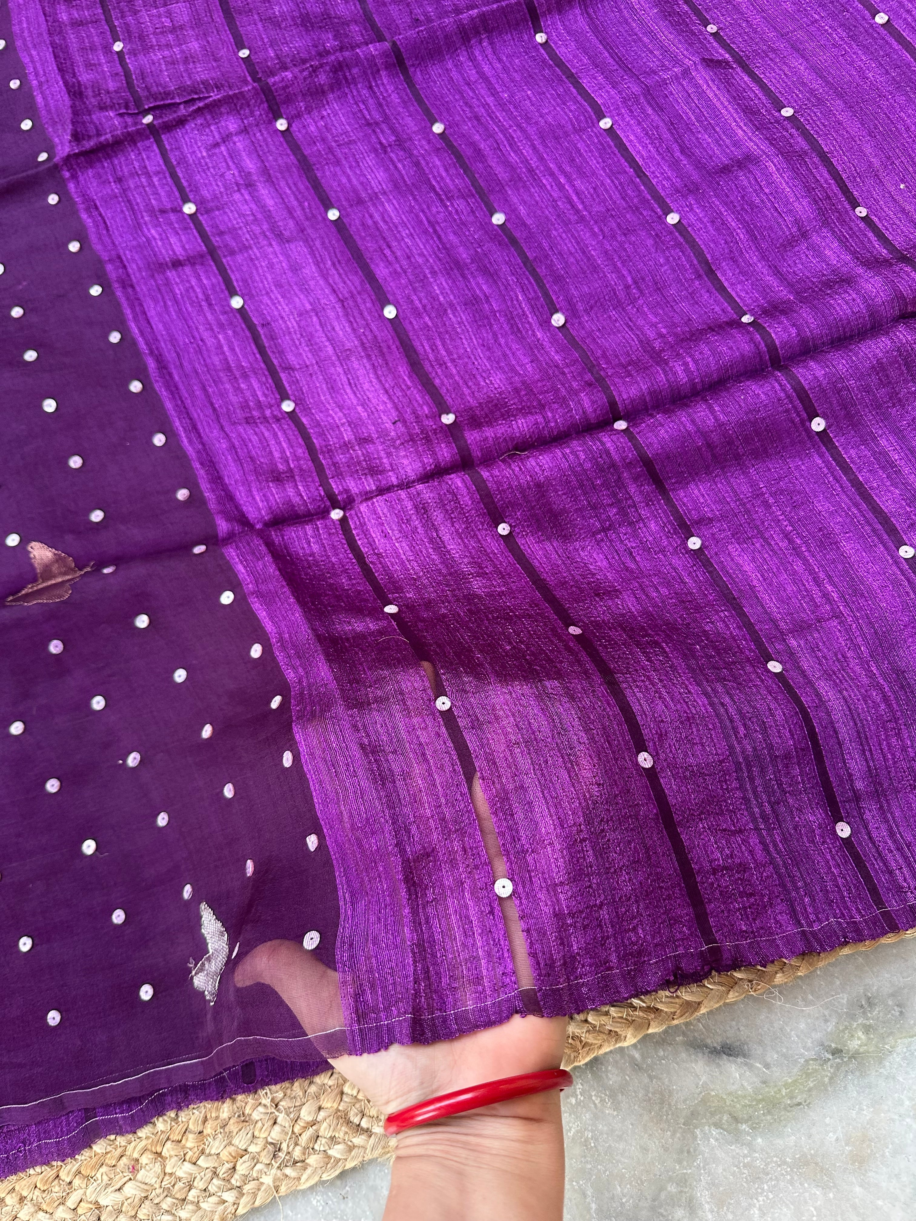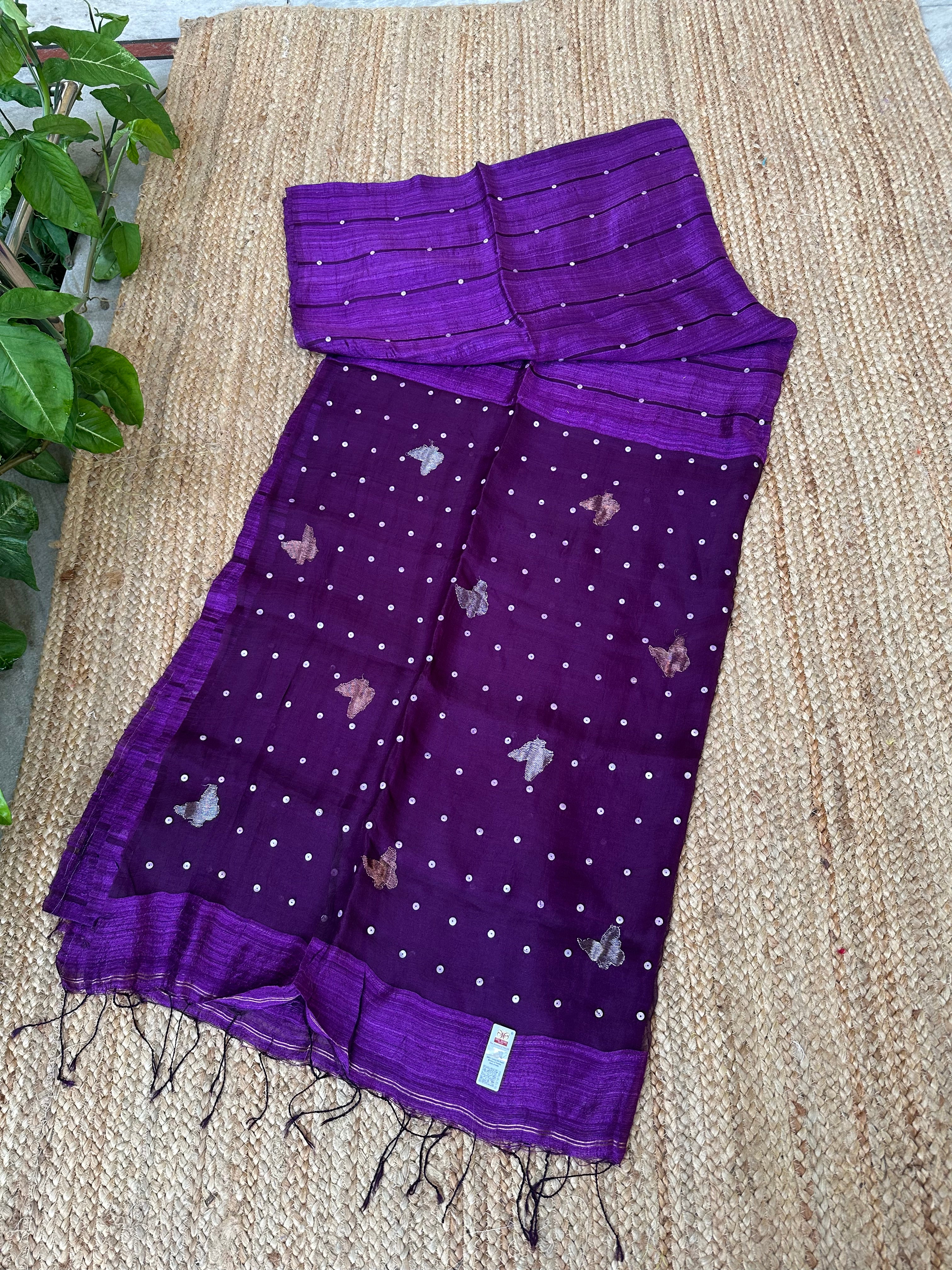 Dark Purple Pure Matka Silk Muslin Pallu Butterfly Handloom Saree