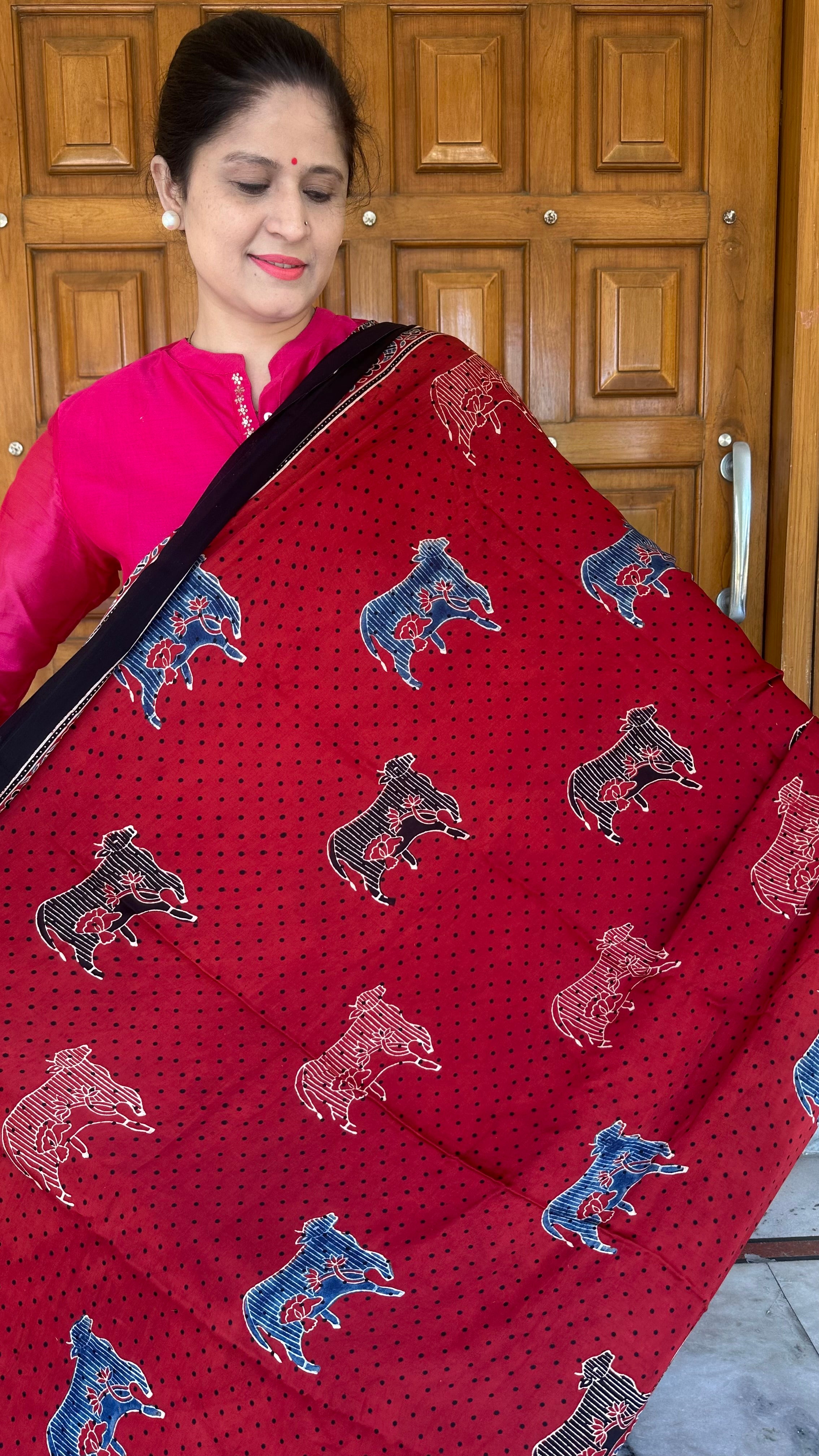 Dark Red Pichwai Ajrakh Modal Silk Saree