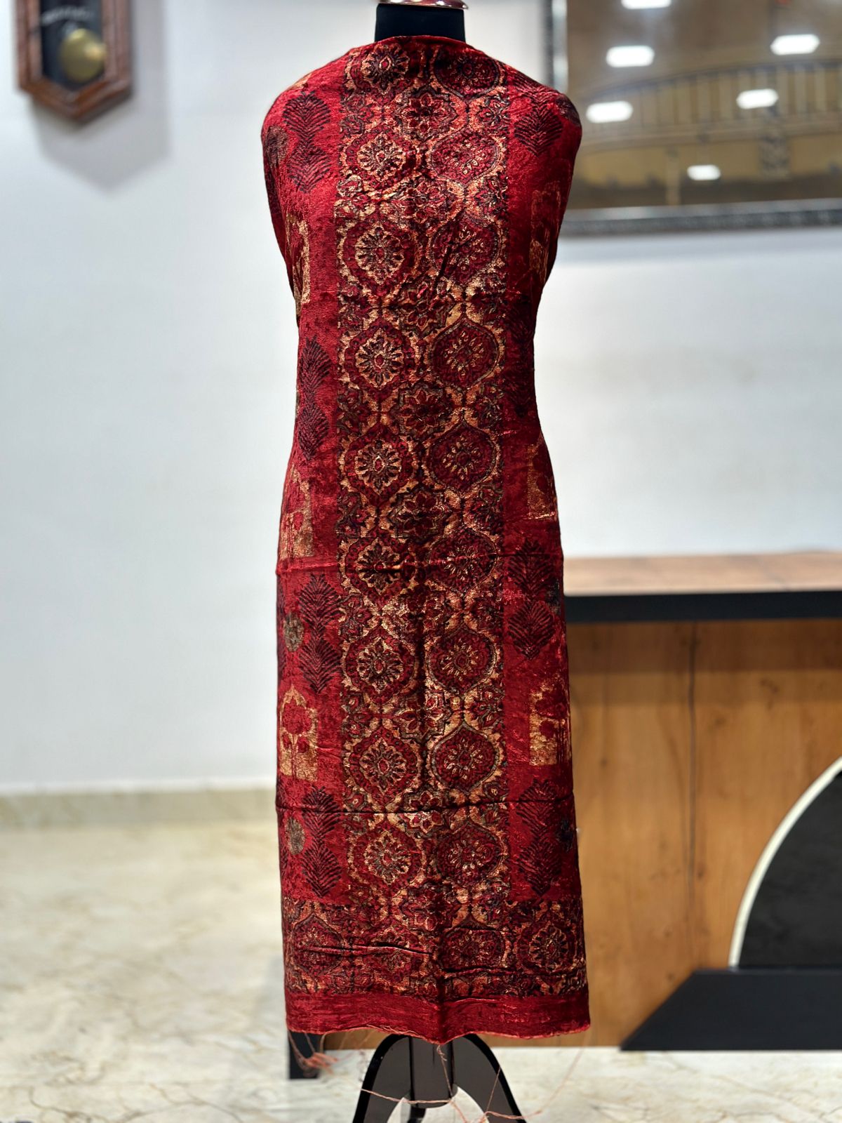 Pure Ajrakh Handblock Printed Velvet Kurta fabric.