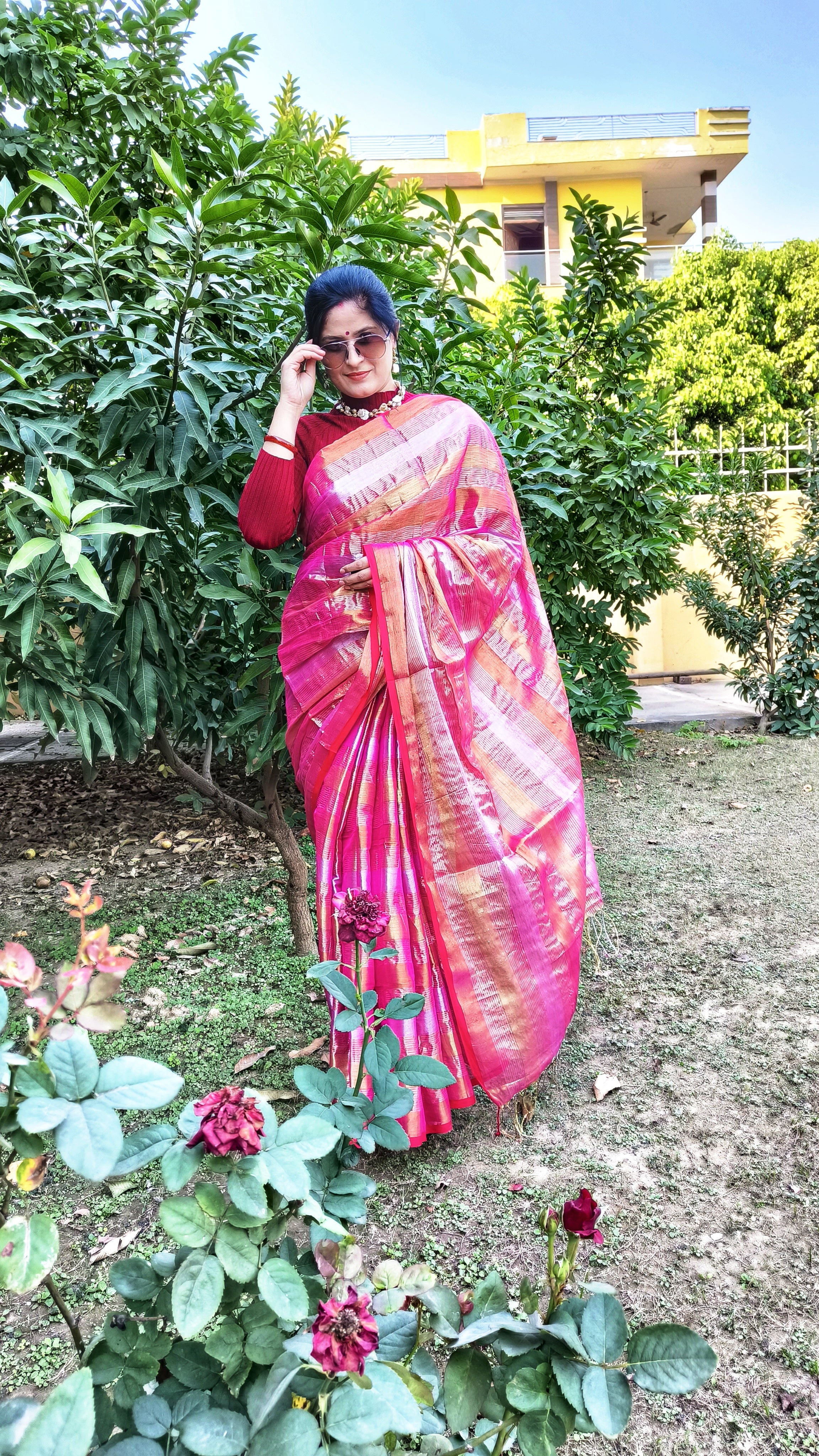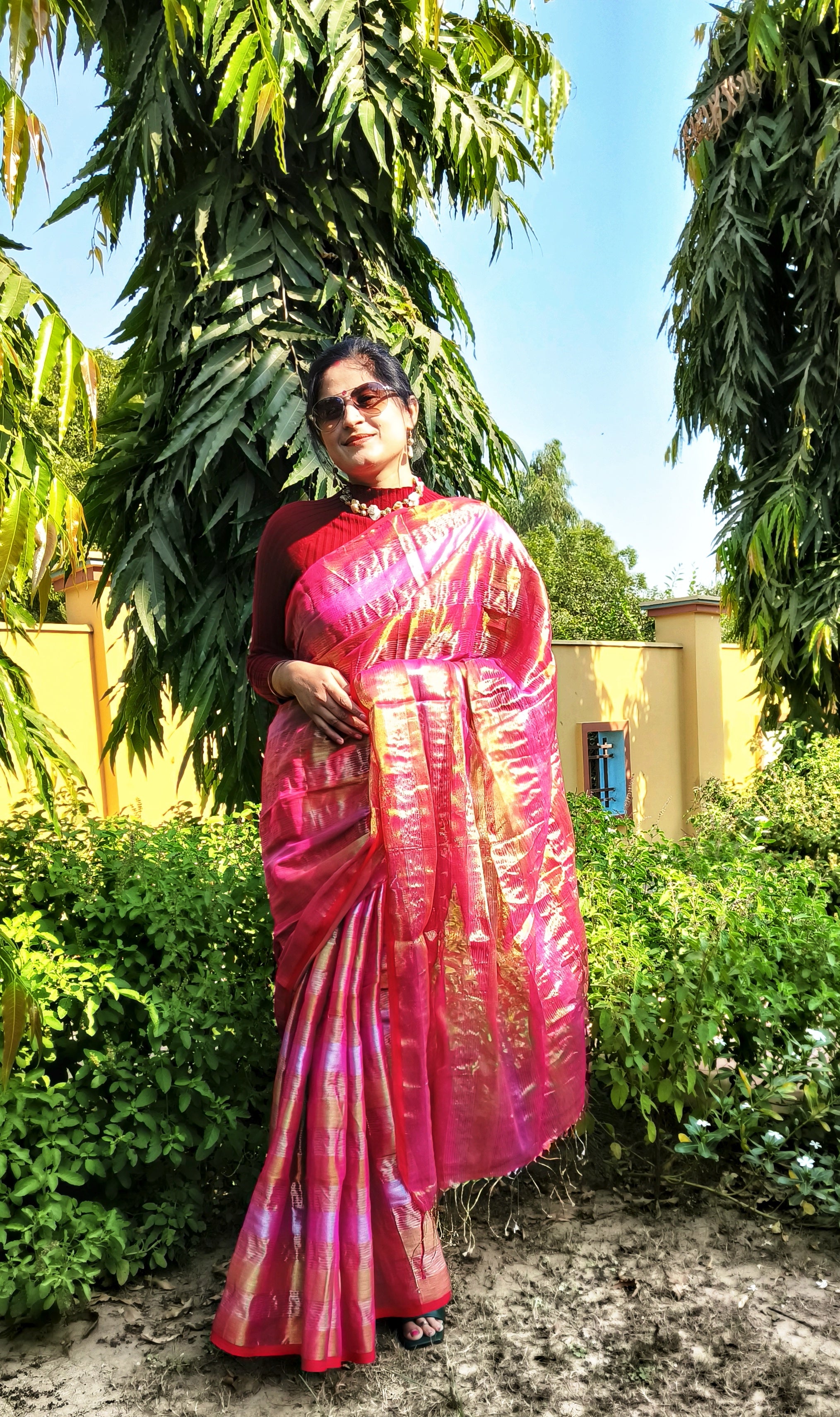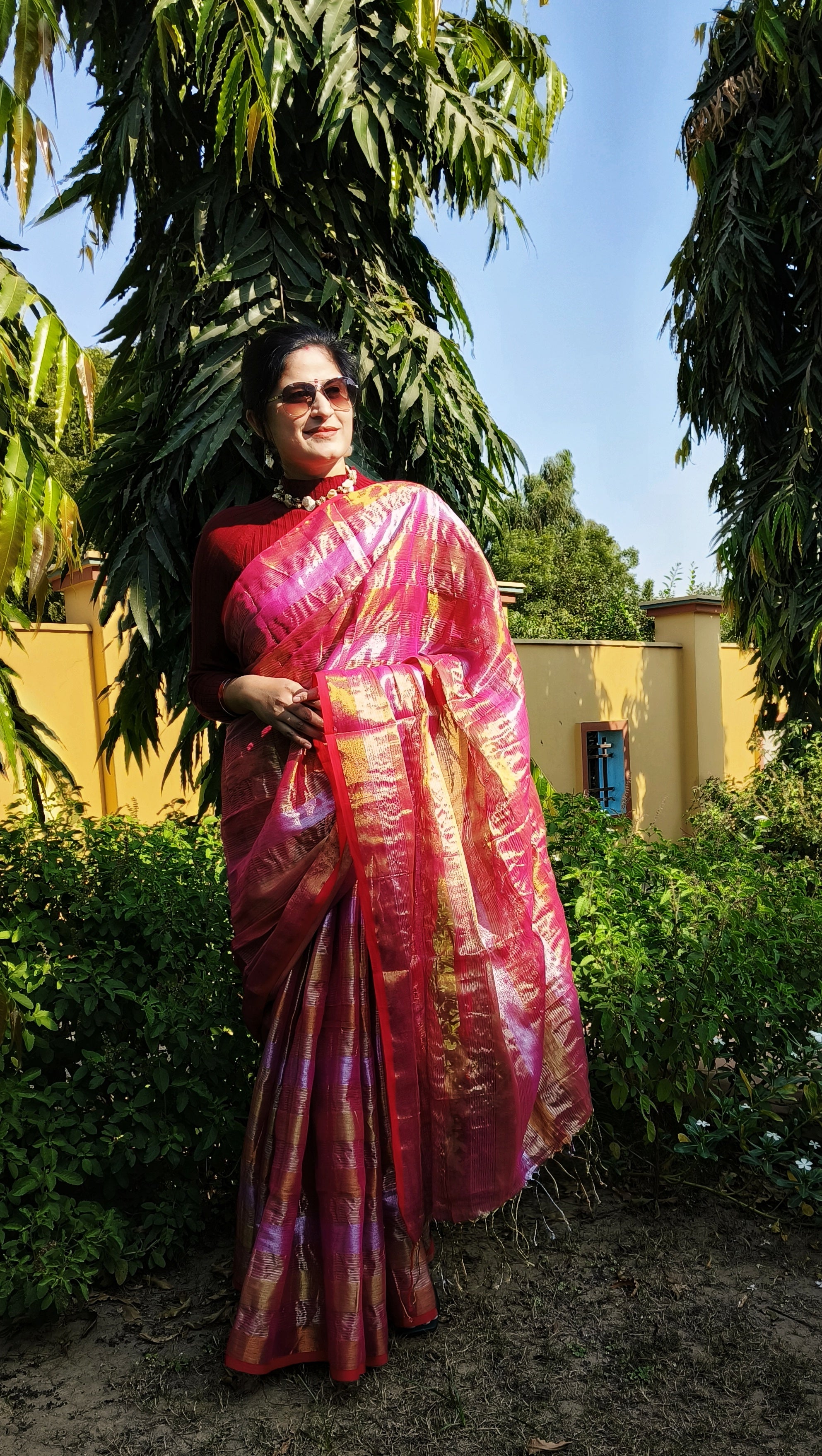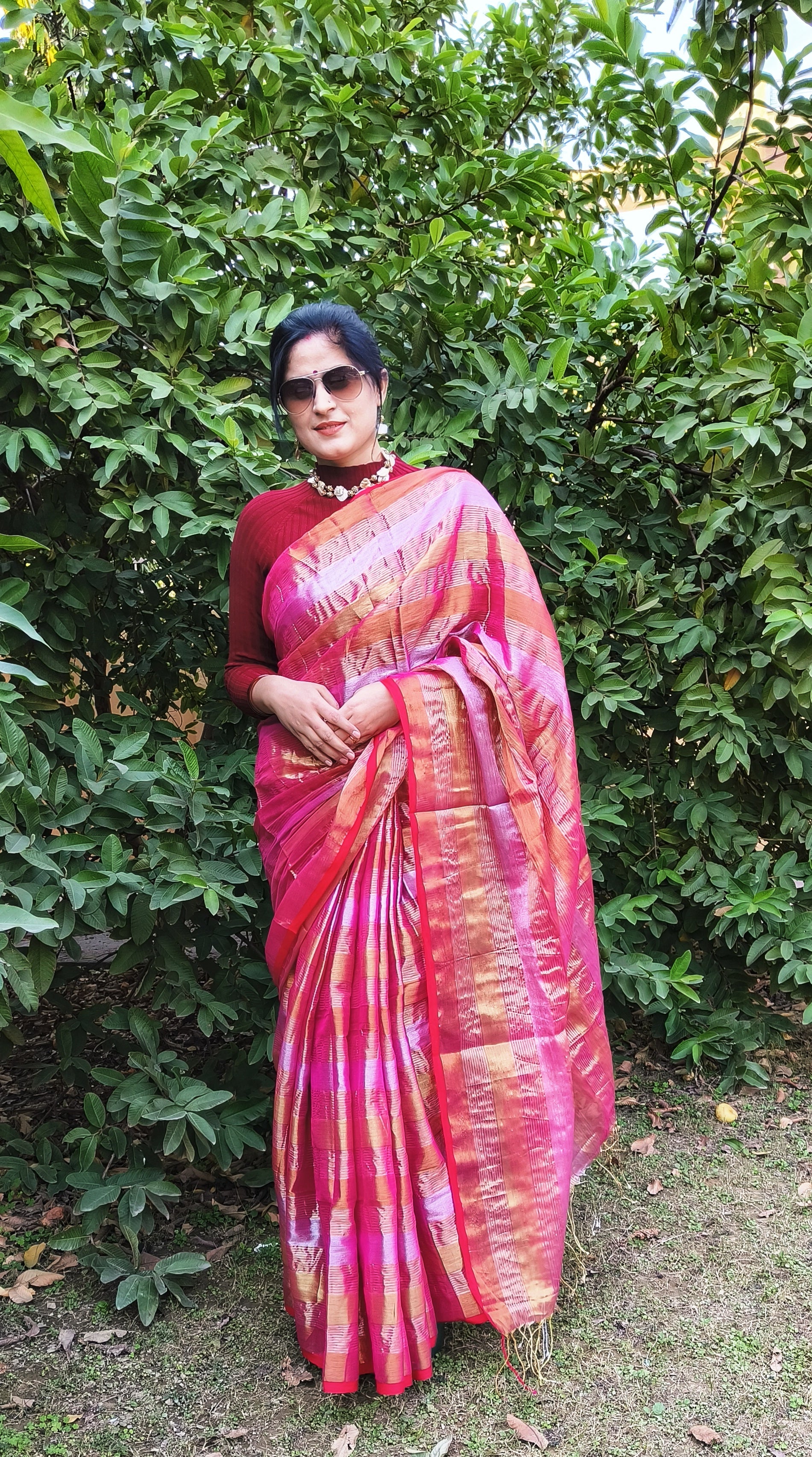 Material: Zari Mul Saree with different colours strips of zari. Droolworthy saree that will stand you out from the crowd!!