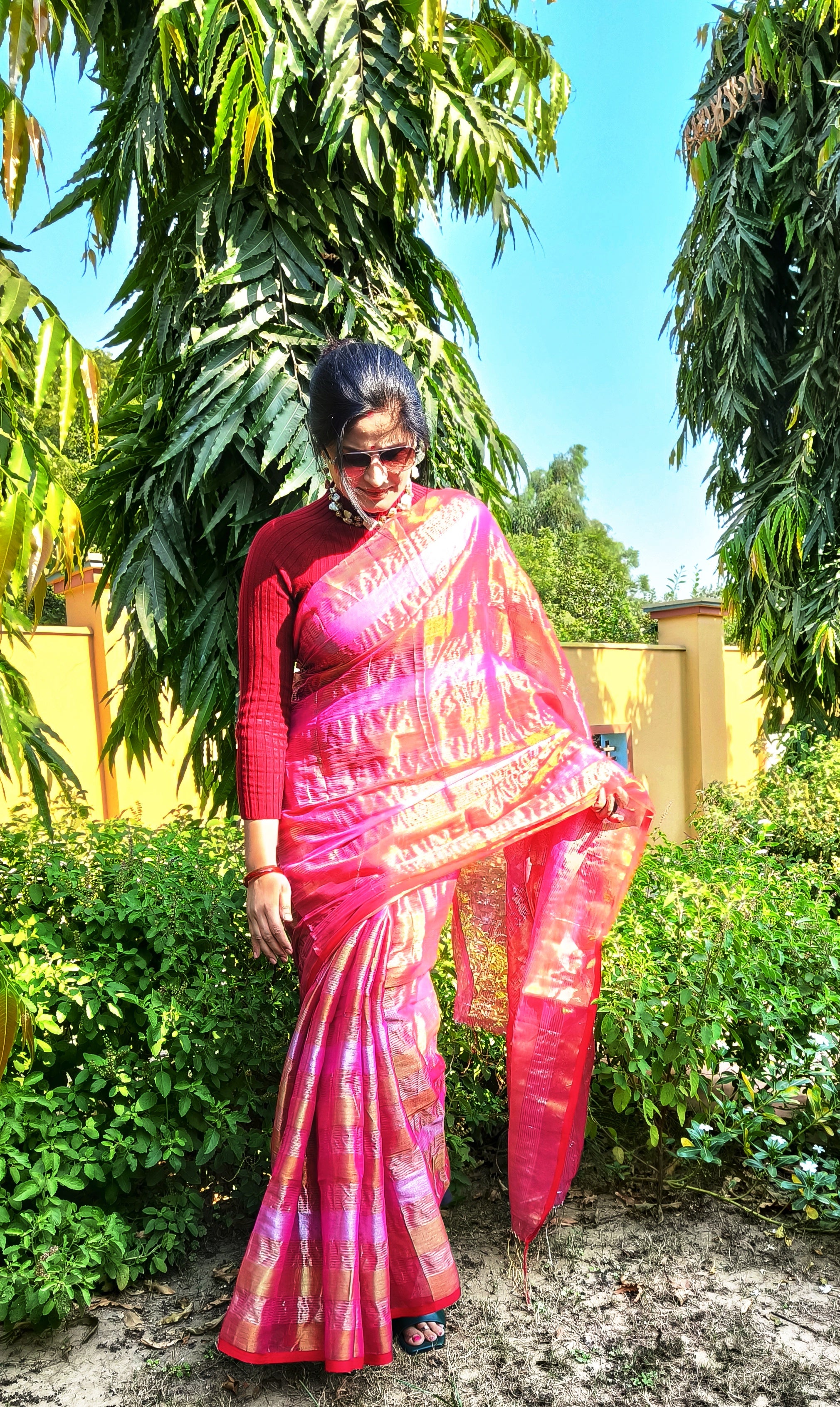 NOTE: we like the saree in some wrinkled form as you can see in the pics. If you want it non wrinkled the you can roll press it. Please don't return just because it is not ironed.