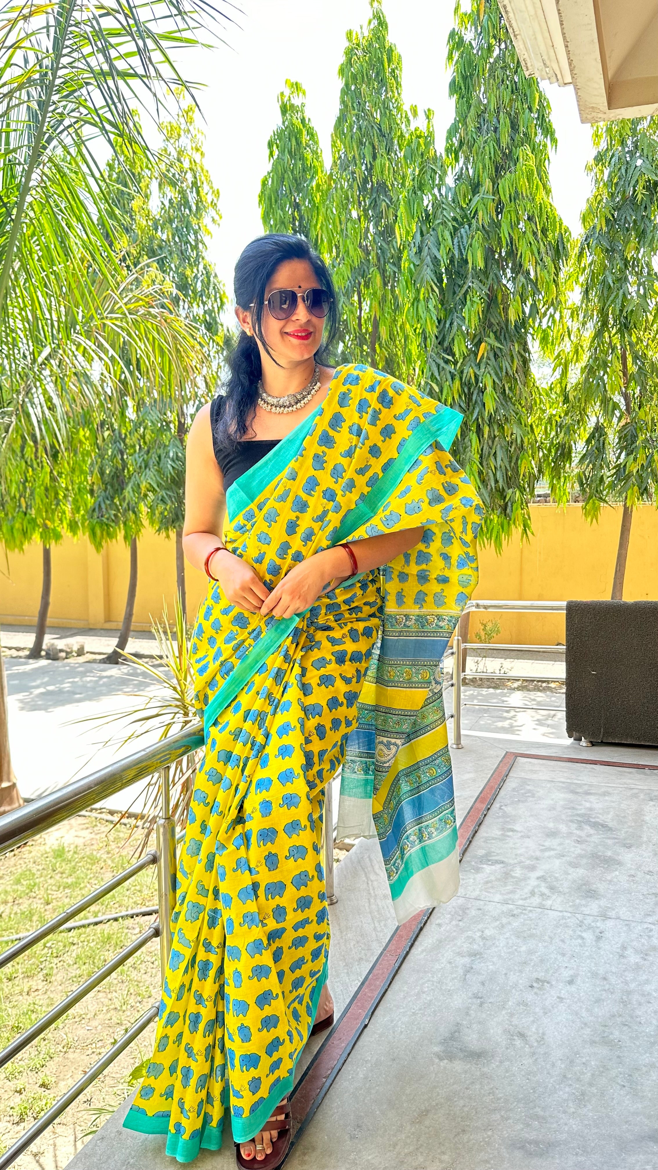 Experience the vibrant and unique charm of our Funky Handblock Printed Mul Cotton Saree. Made from pure Mul cotton, this saree features colourful handblock prints that are both eye-catching and traditional. With its soft fabric and striking design, this saree is perfect for adding a touch of fun and elegance to any occasion.