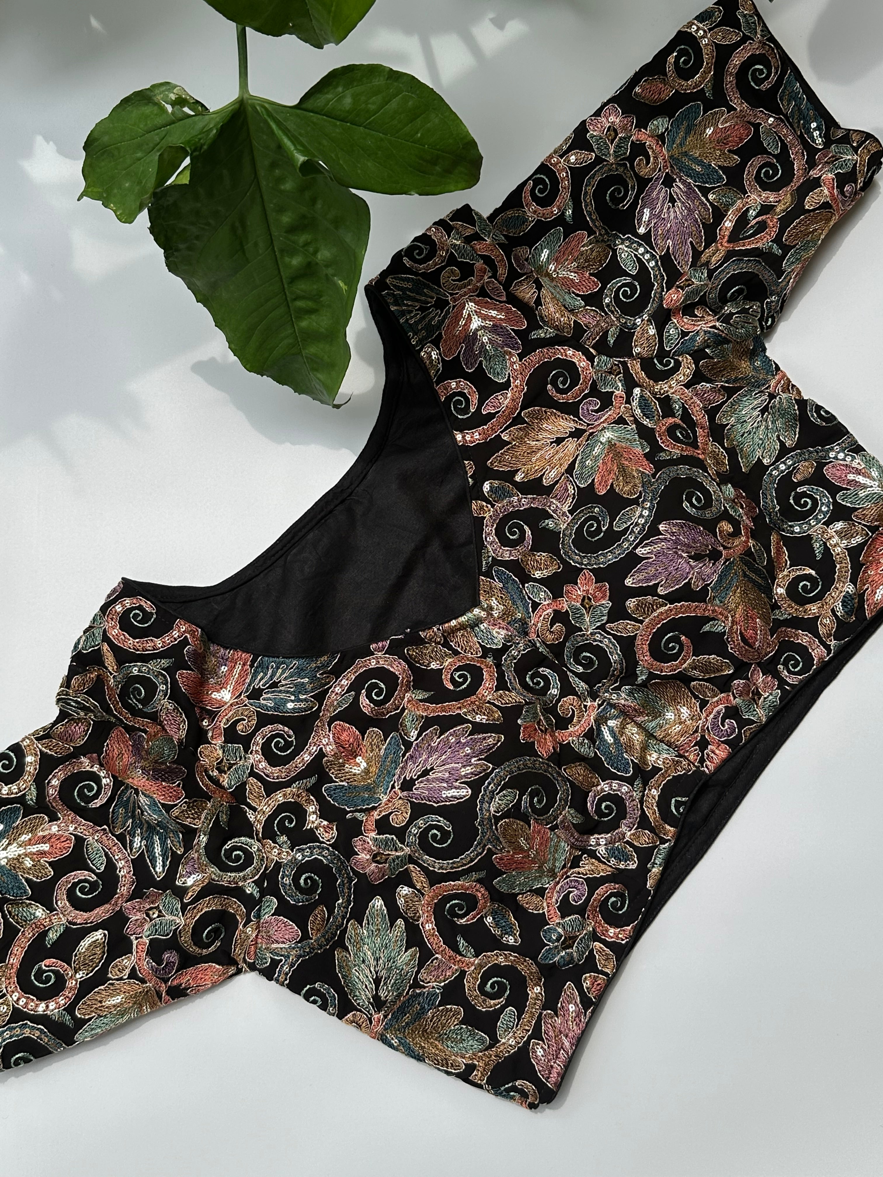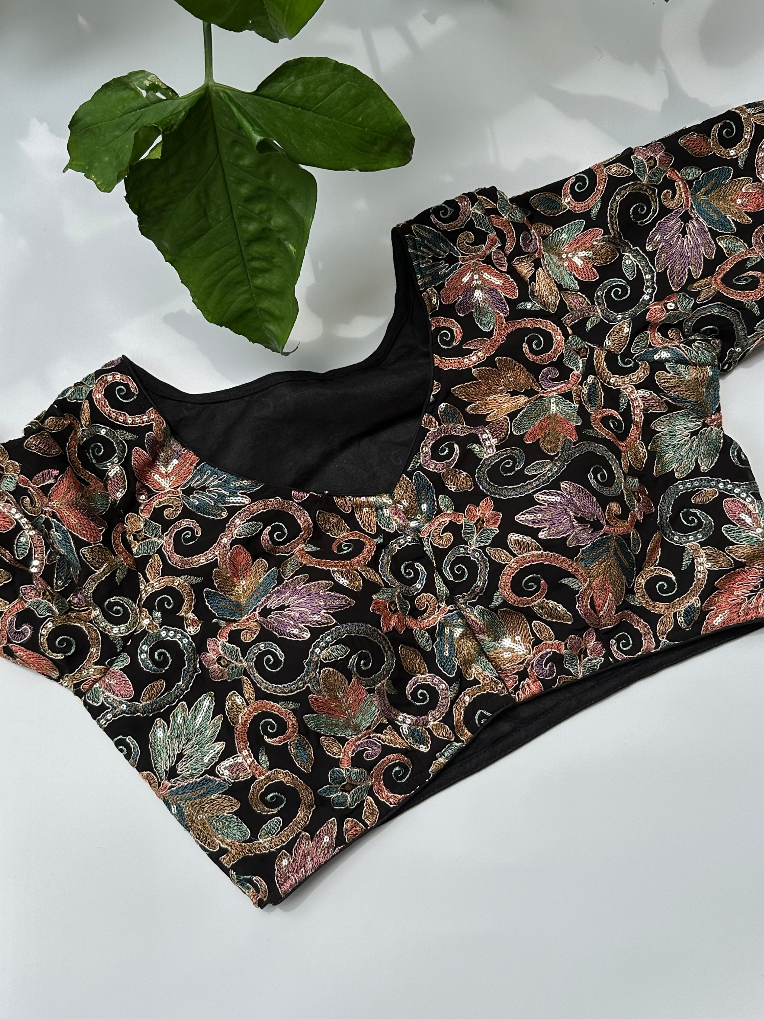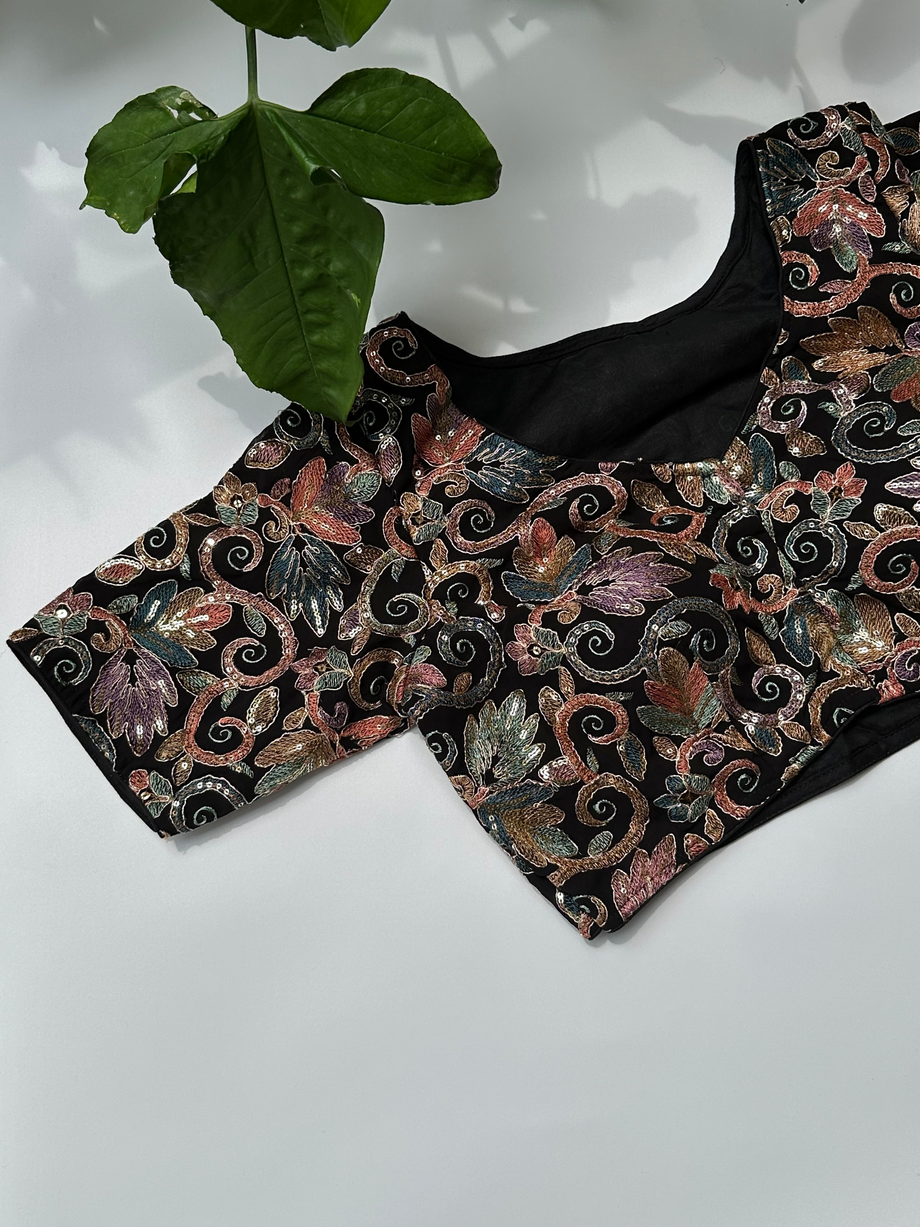 Georgette Jaal Multicoloured Embroidery Blouse (Black)
