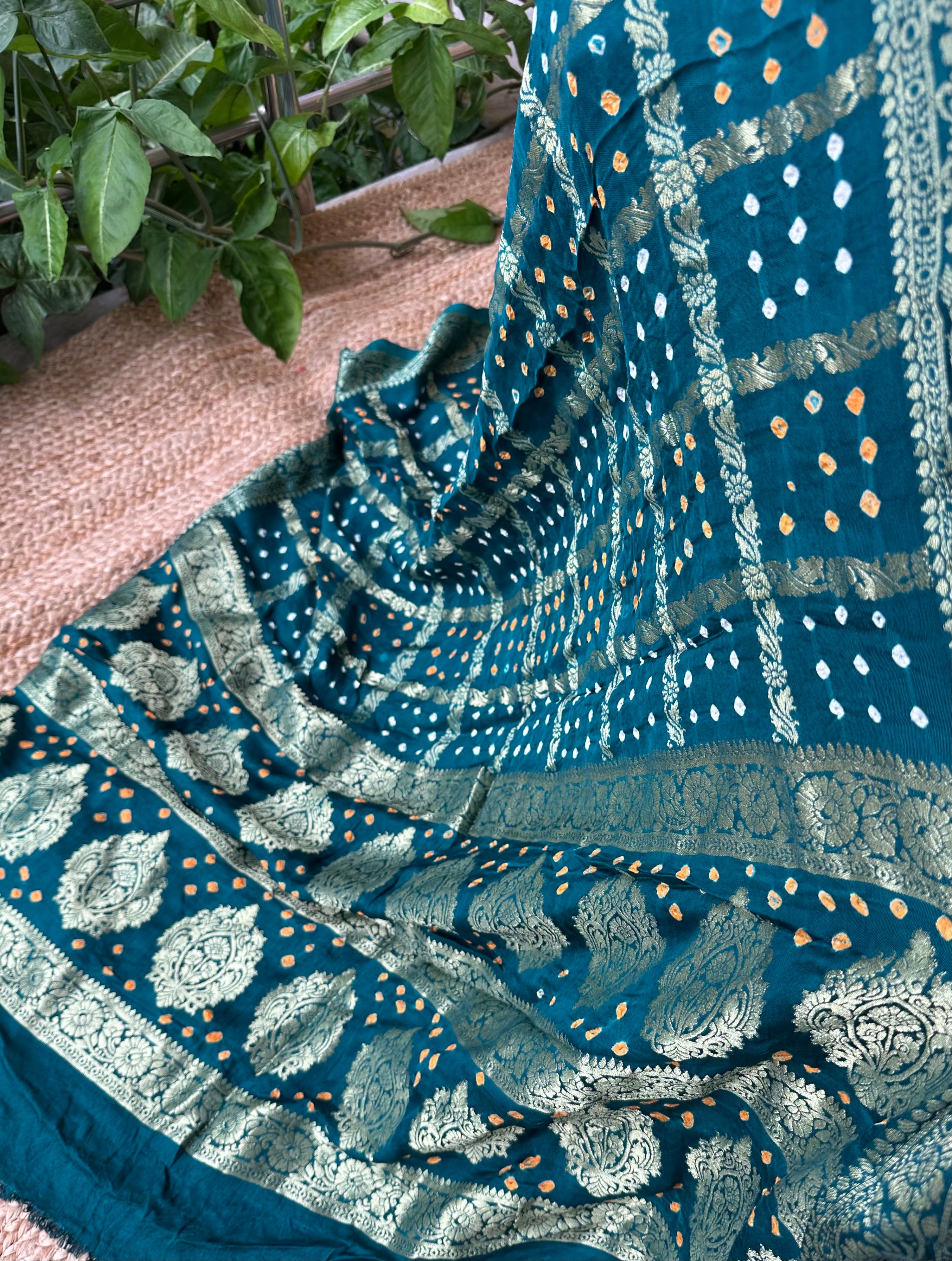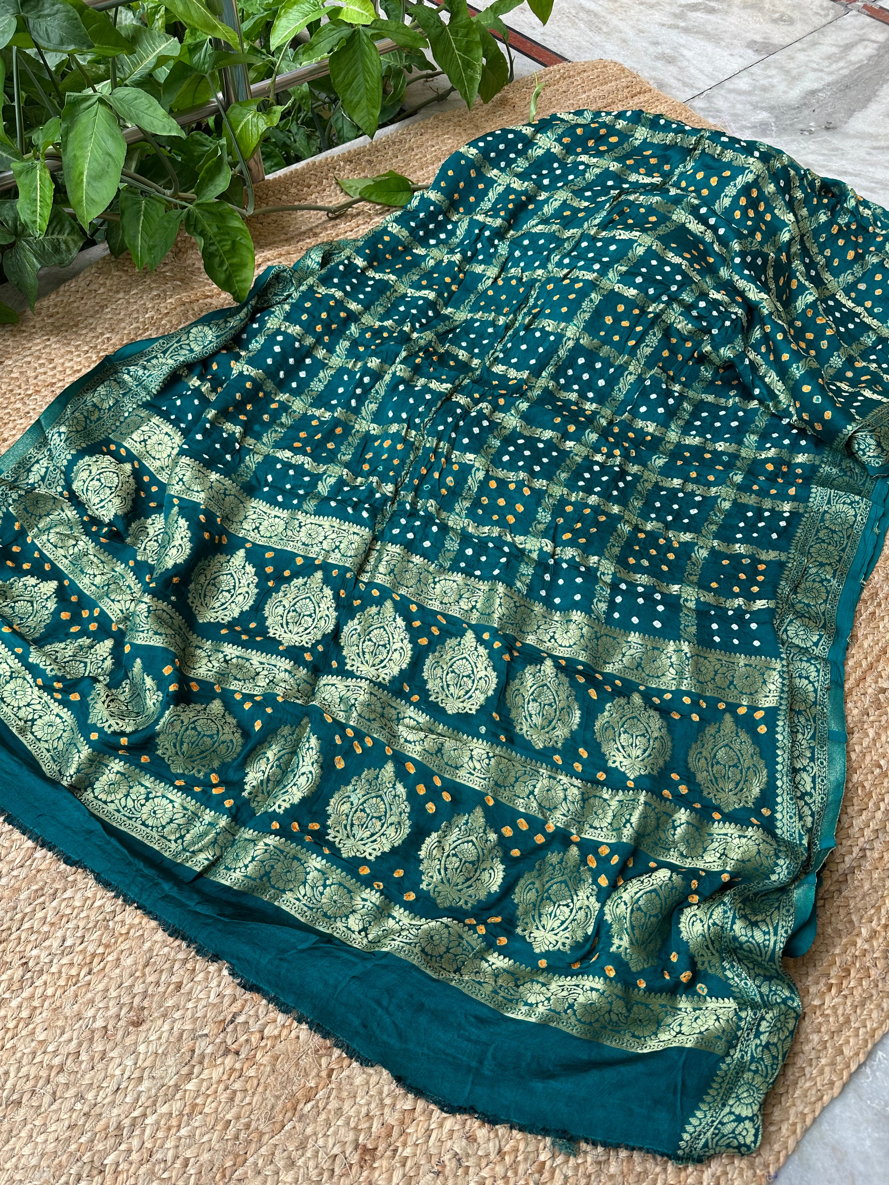Green Gharchola Bandhani Modal Dola Silk Nakshi Pallu Saree