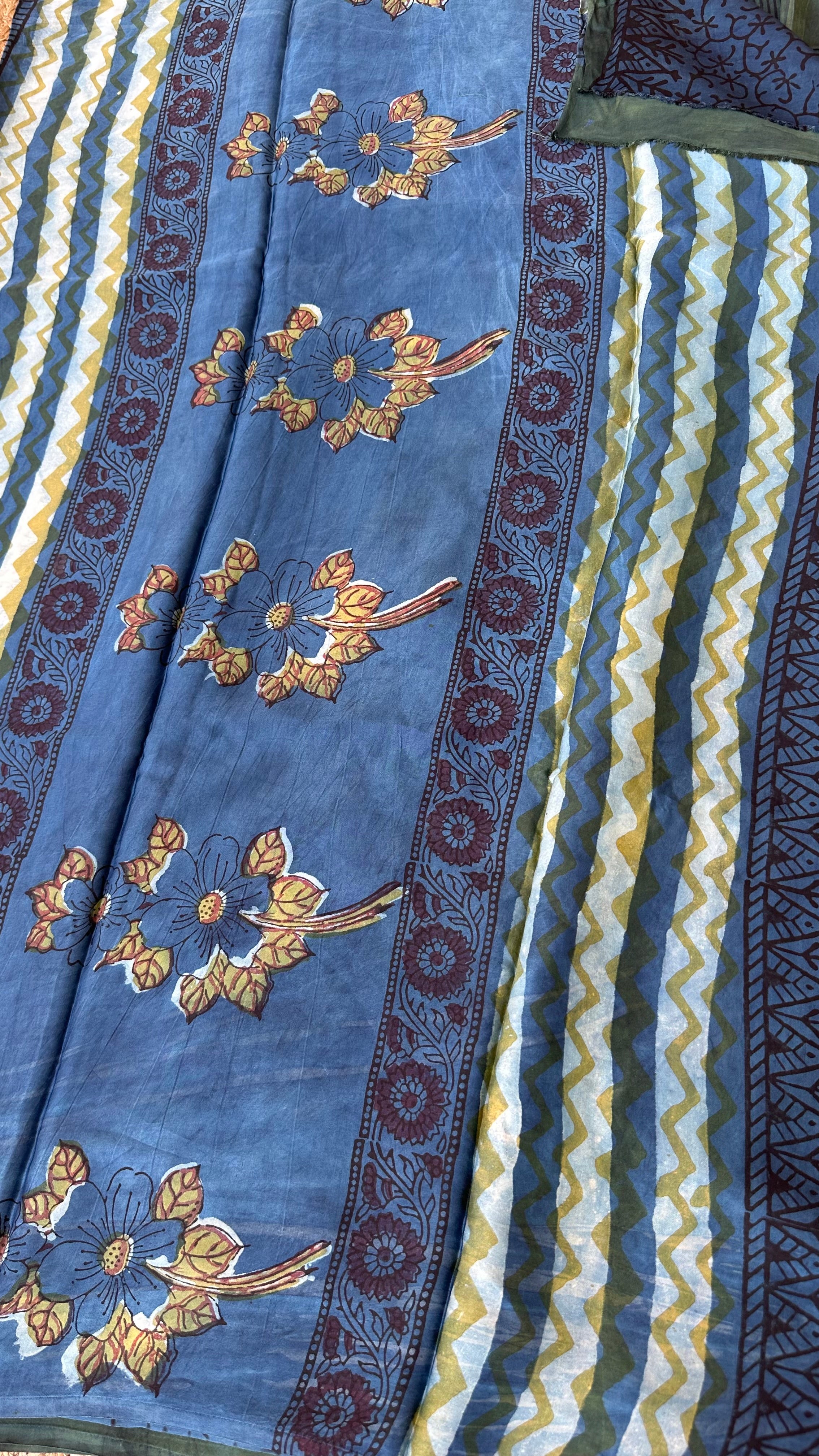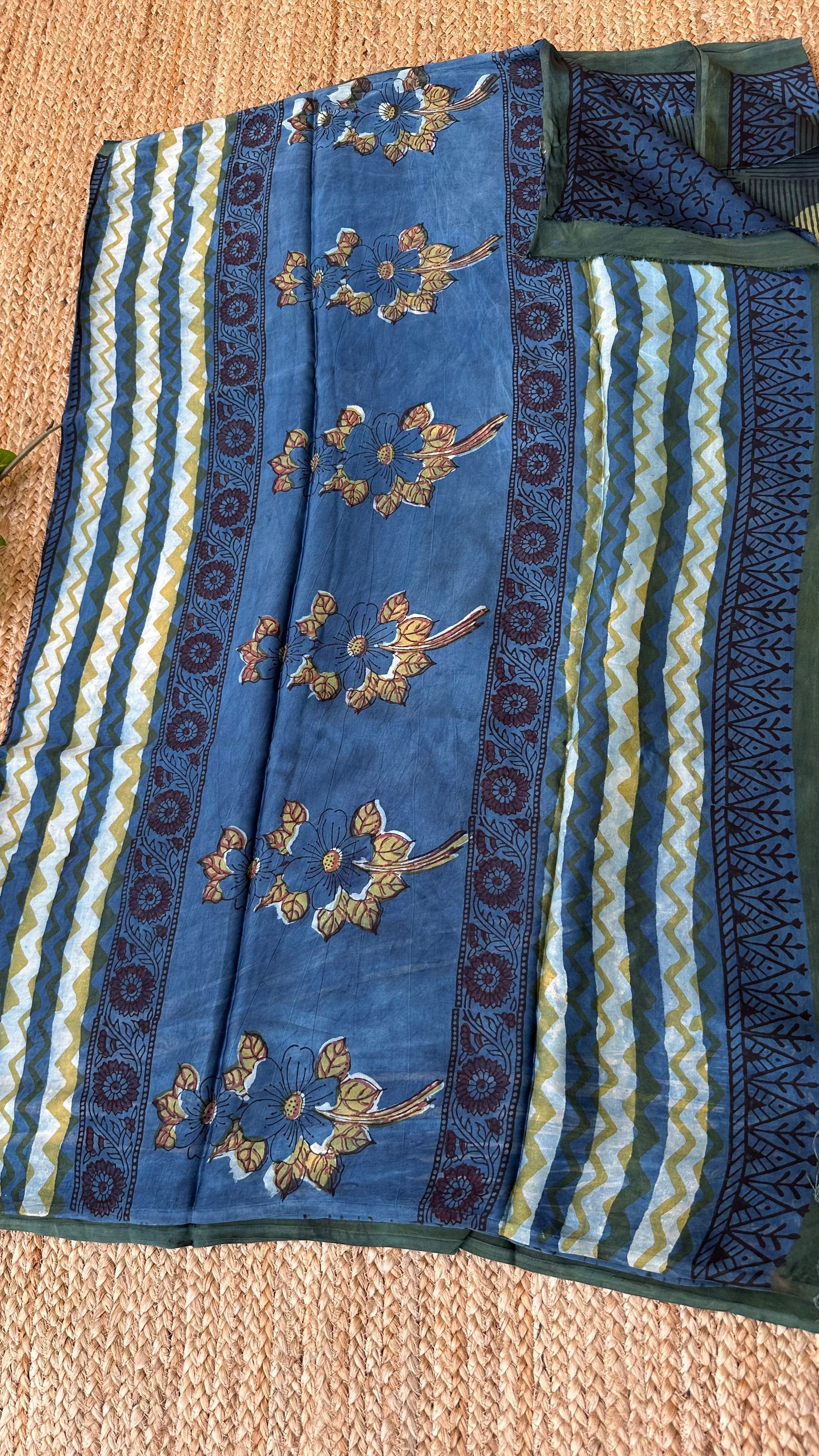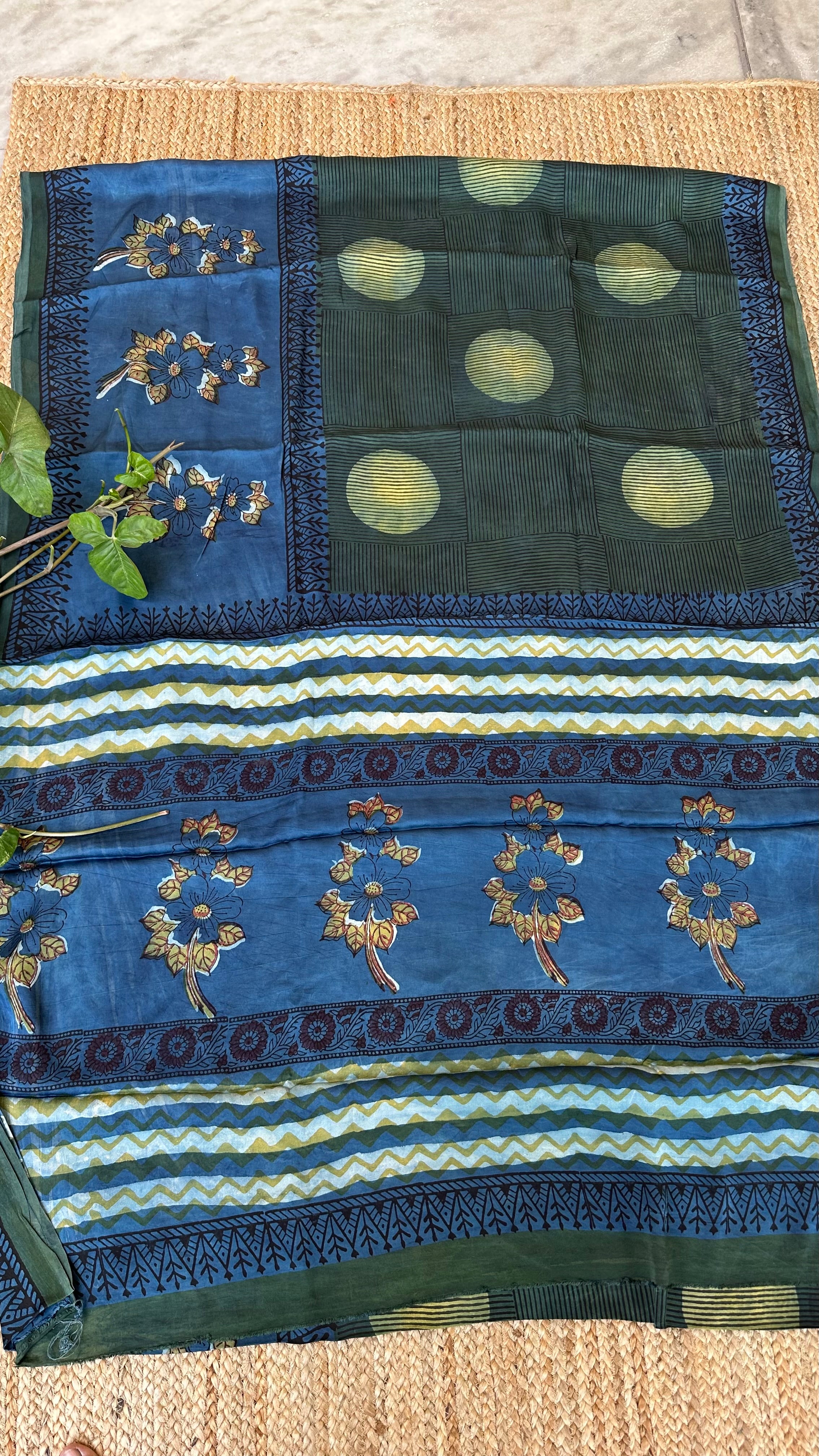 Material: Modal Silk. Handblock print using natural dyes. Authentic handblock print saree.
