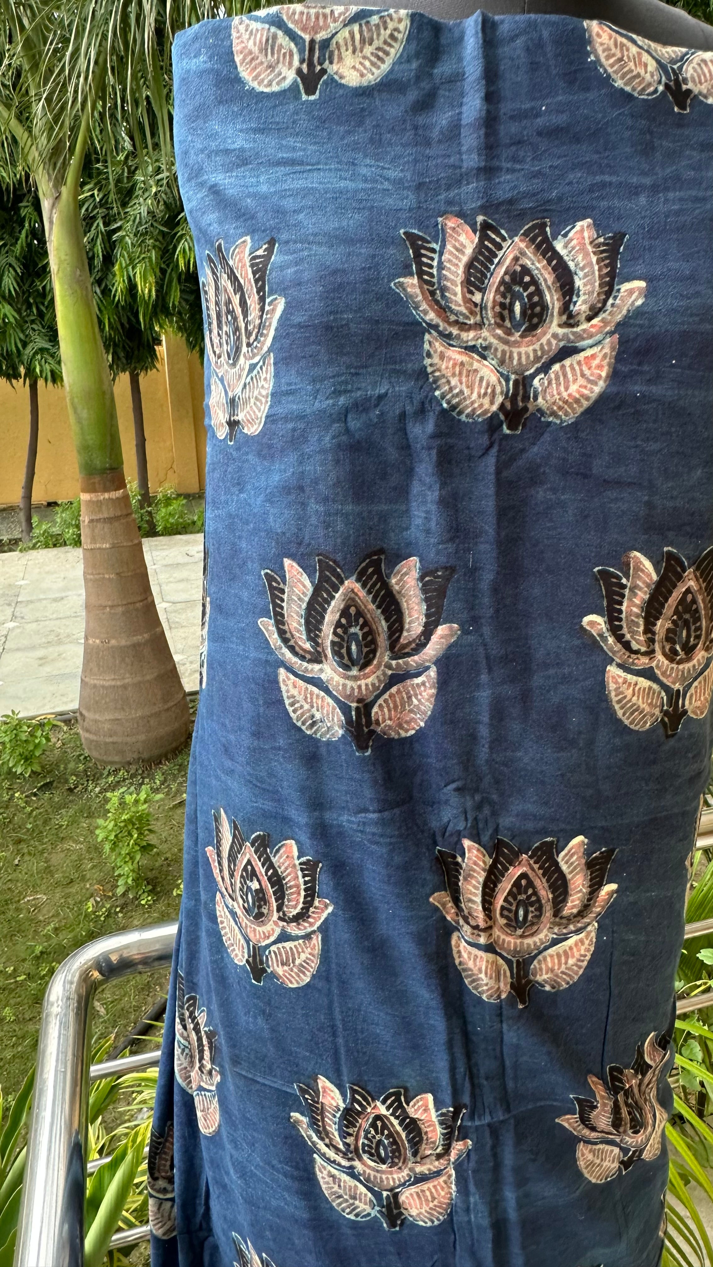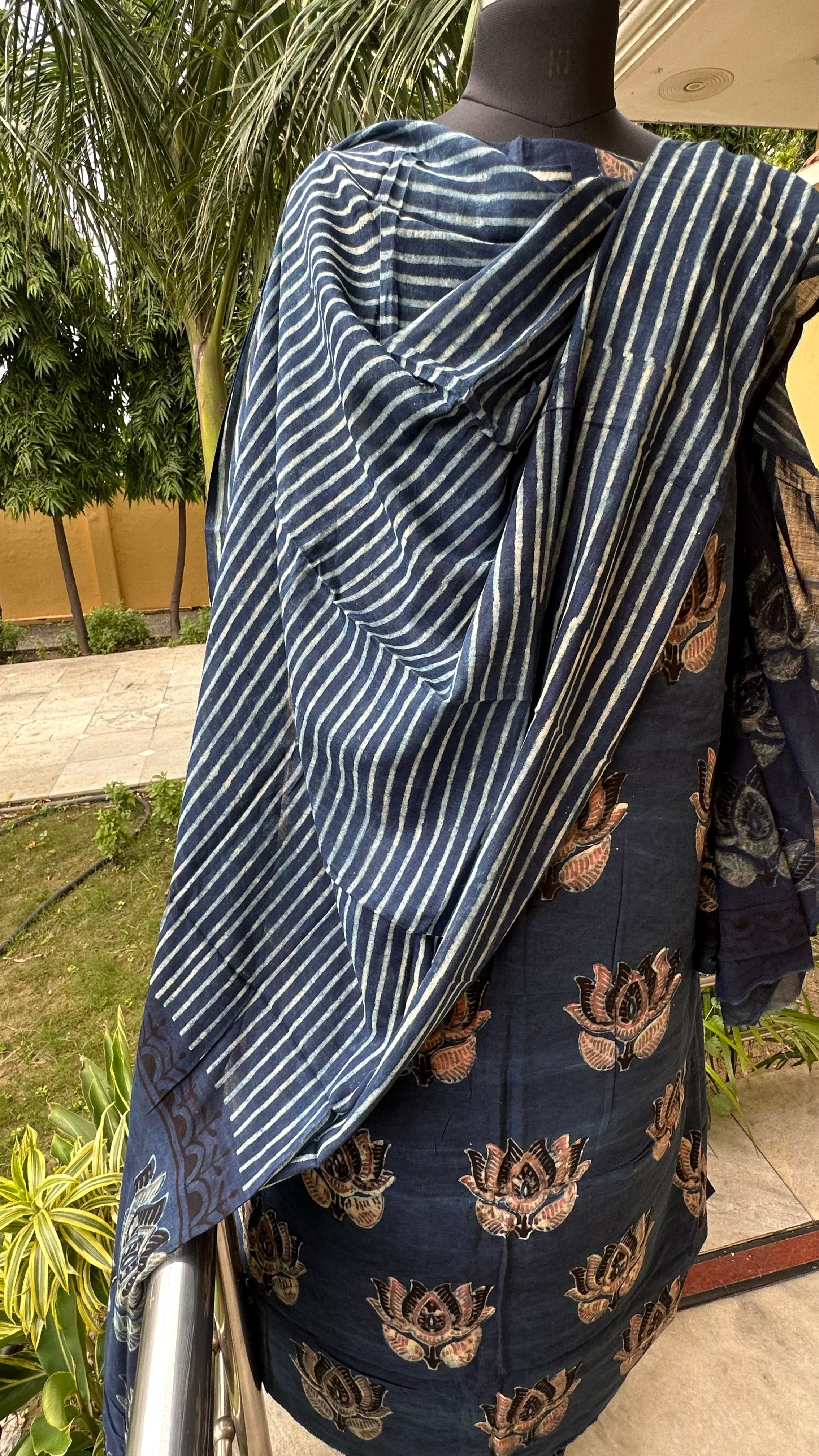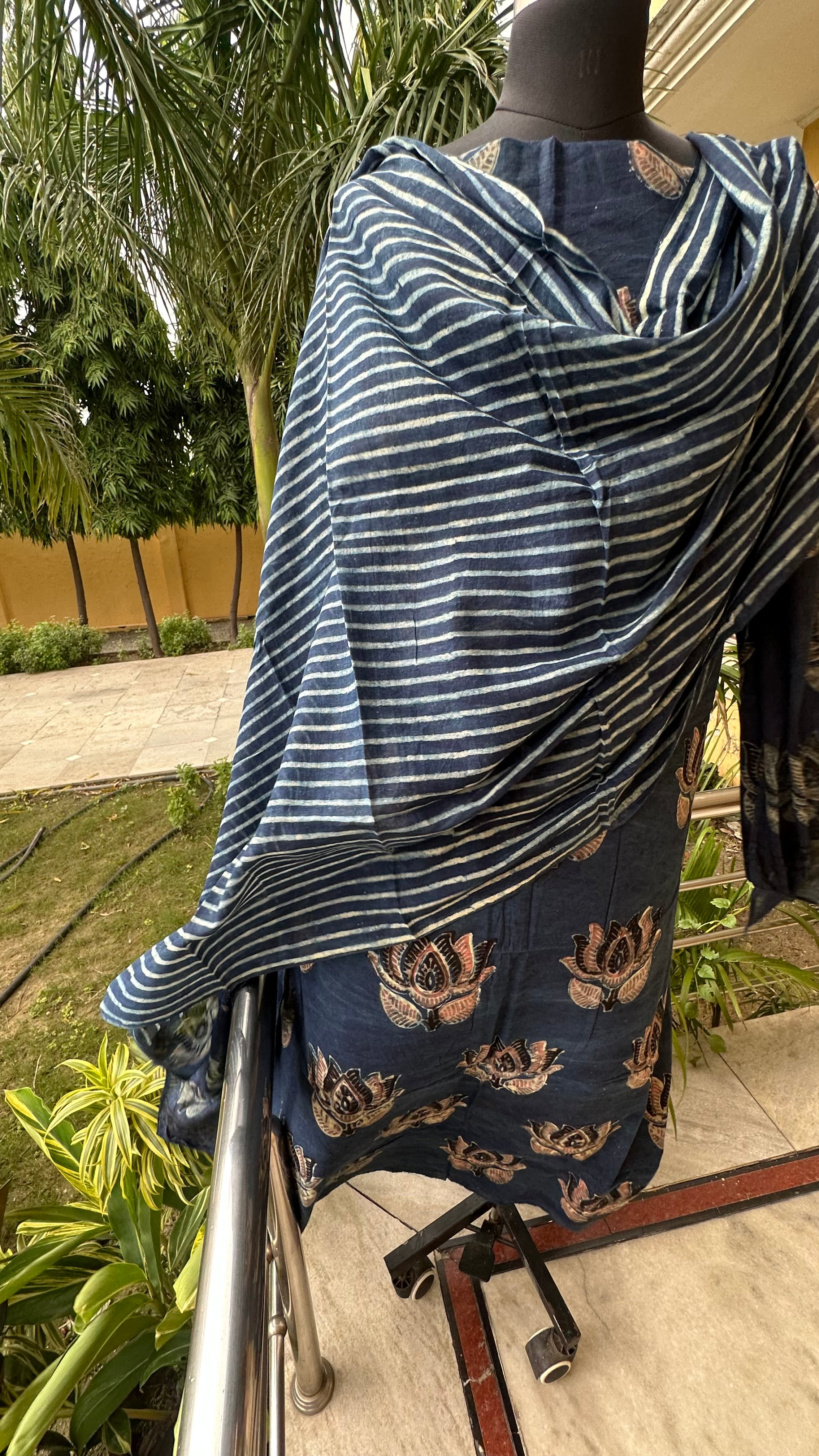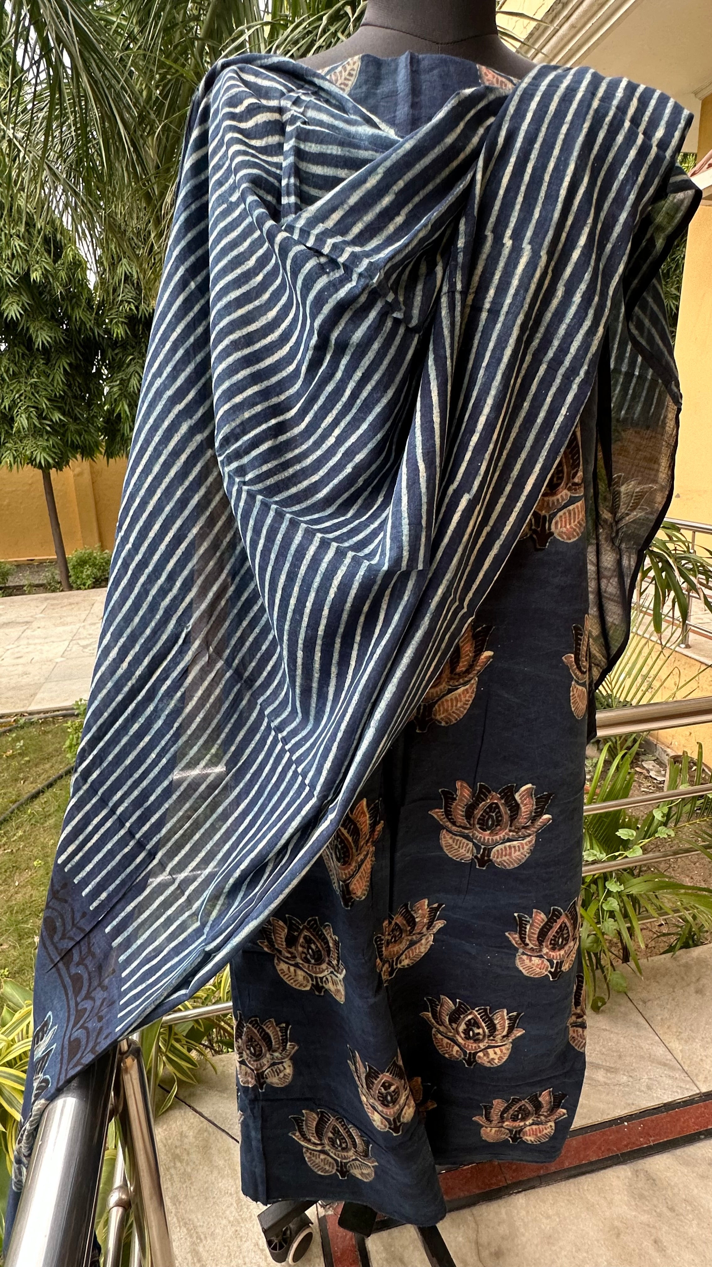 Indigo Lotus Design Handblock Taj Cotton Natural Dyed Ajrakh Suit set