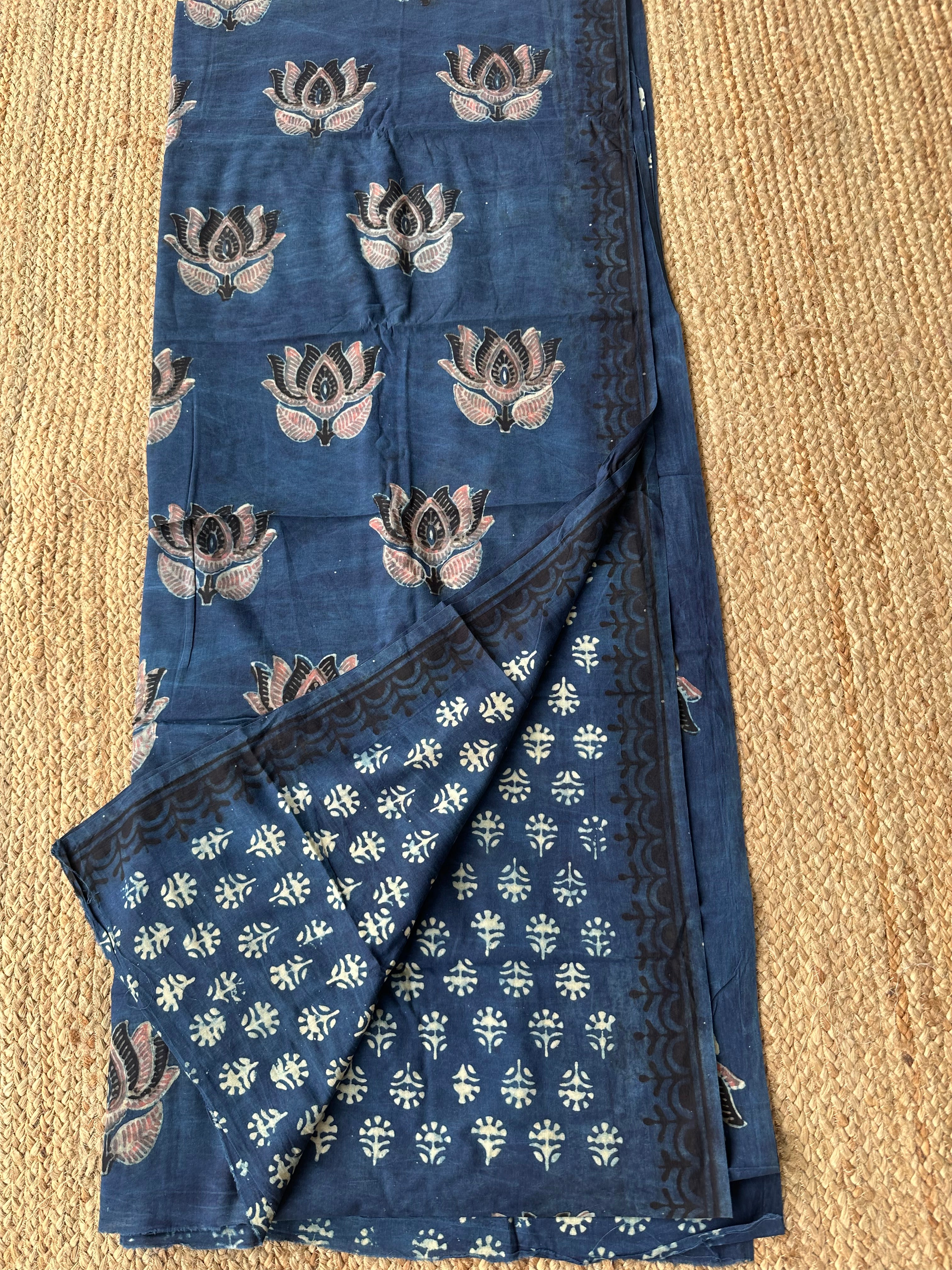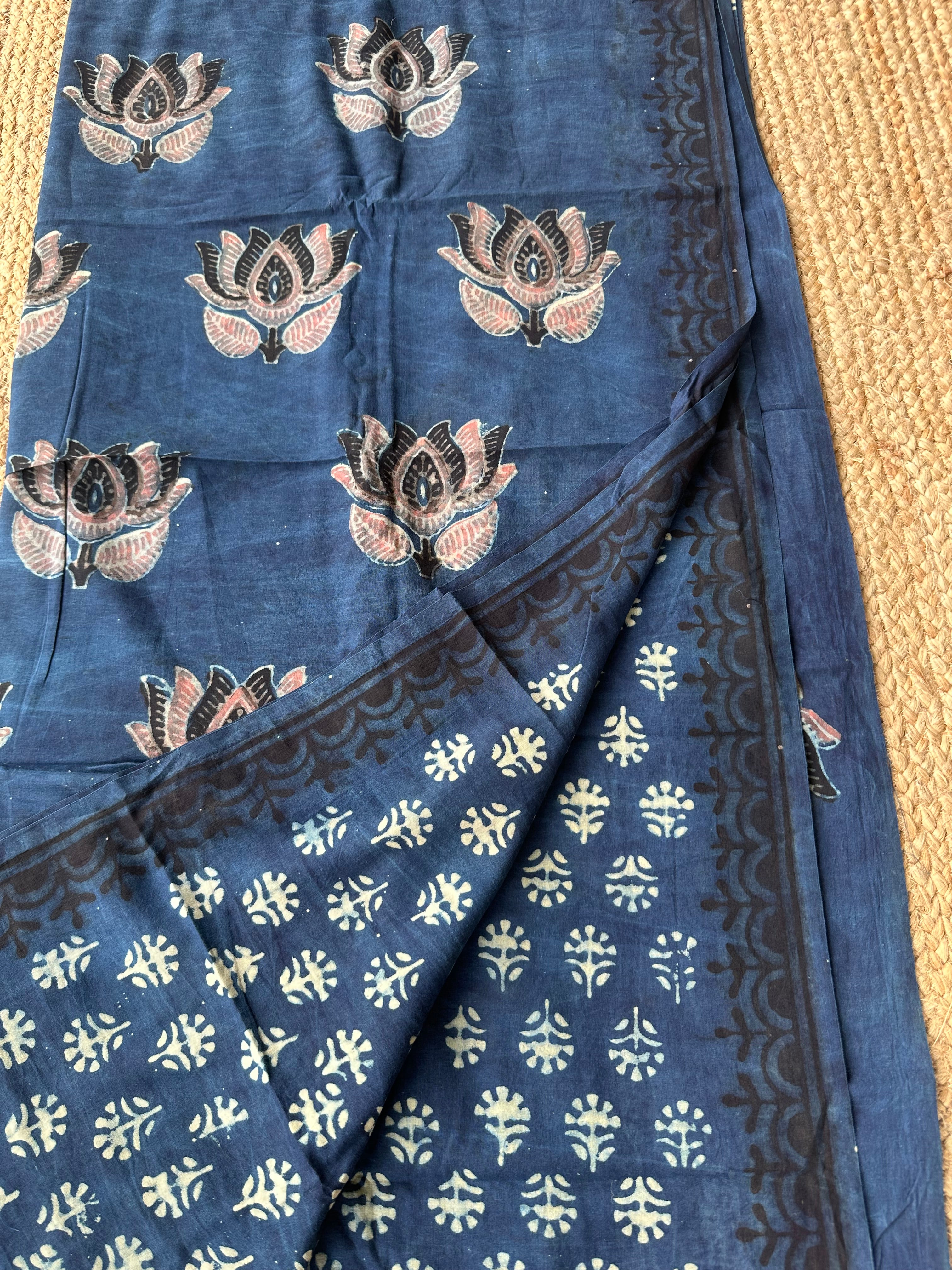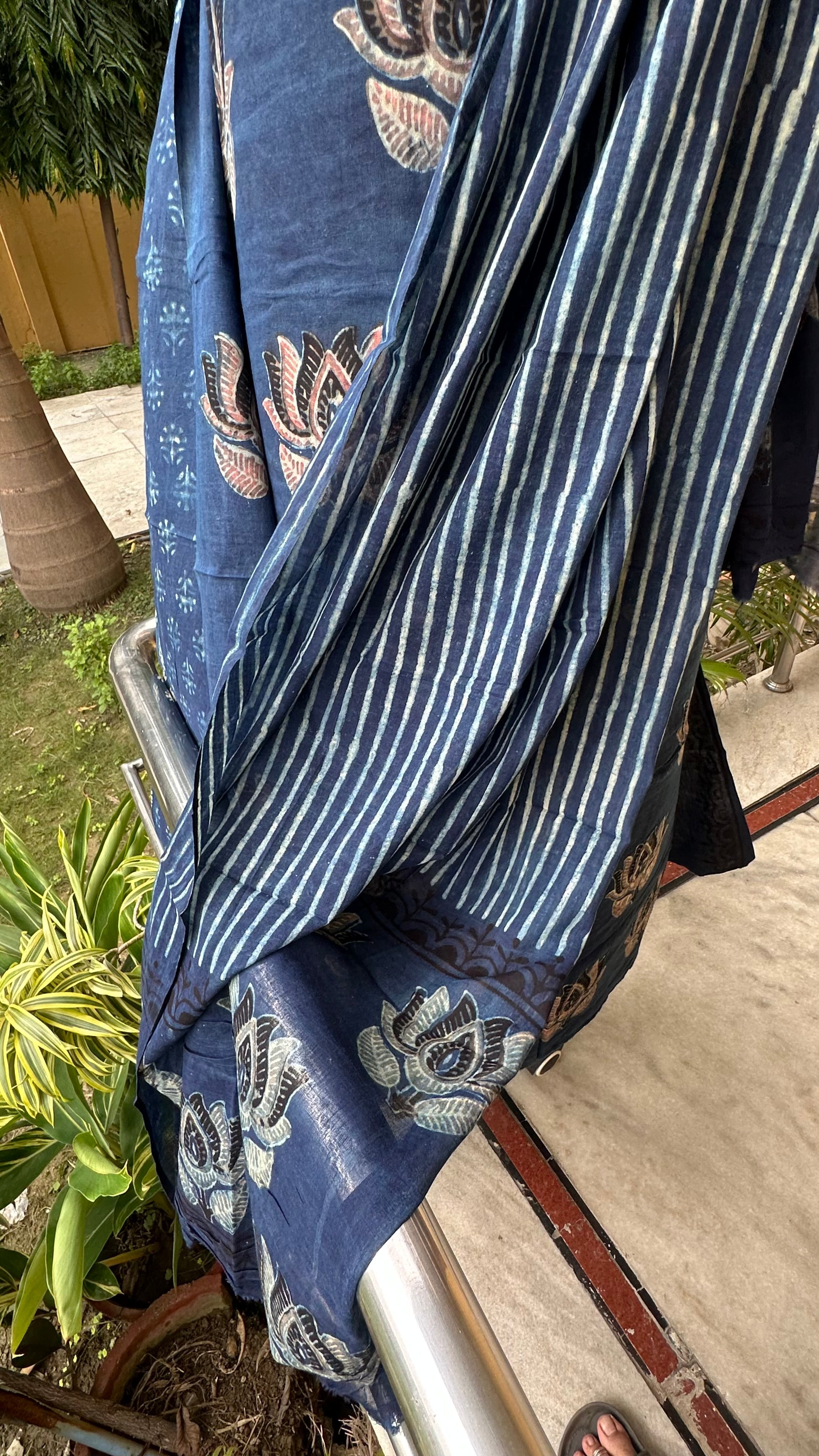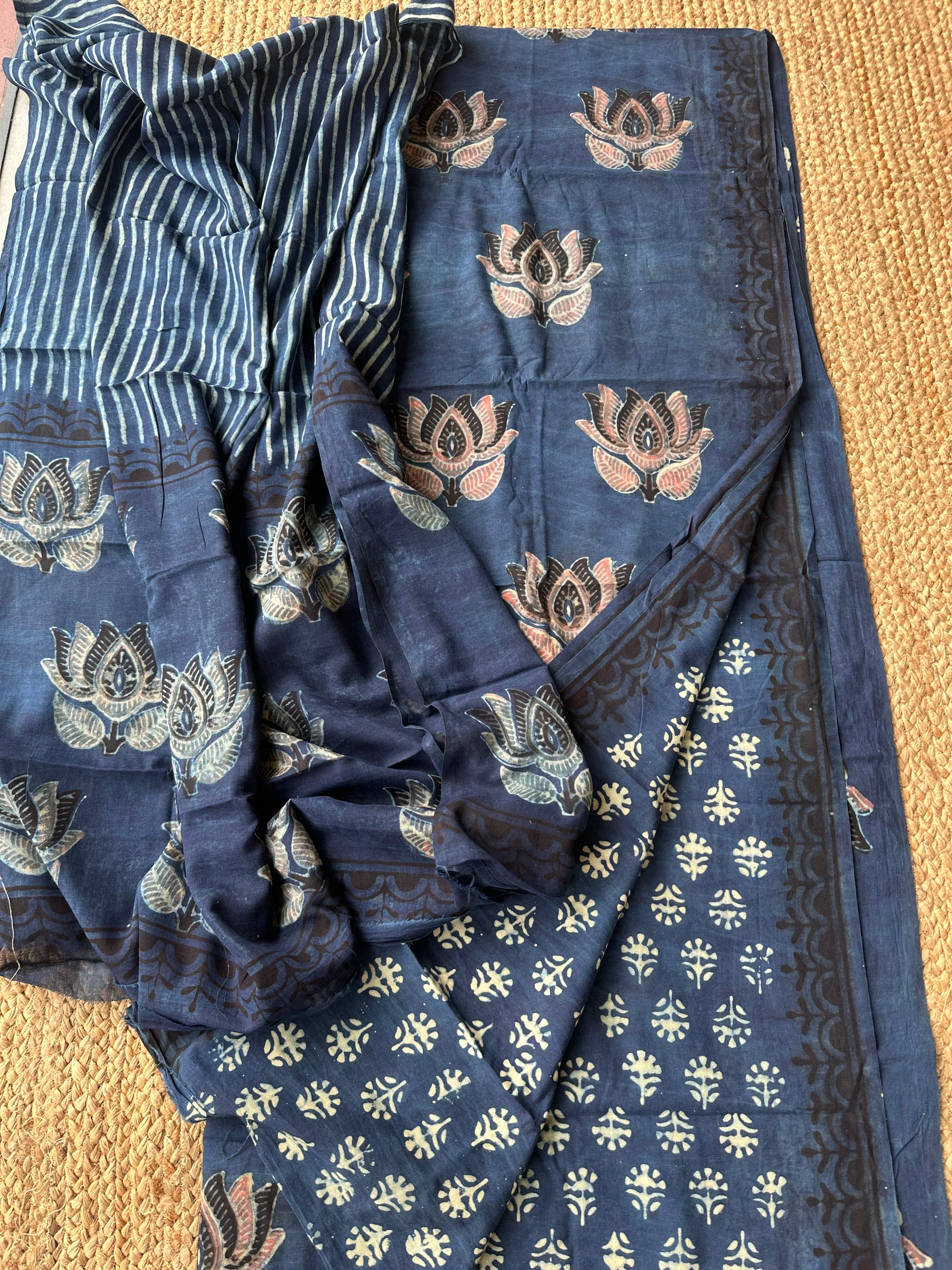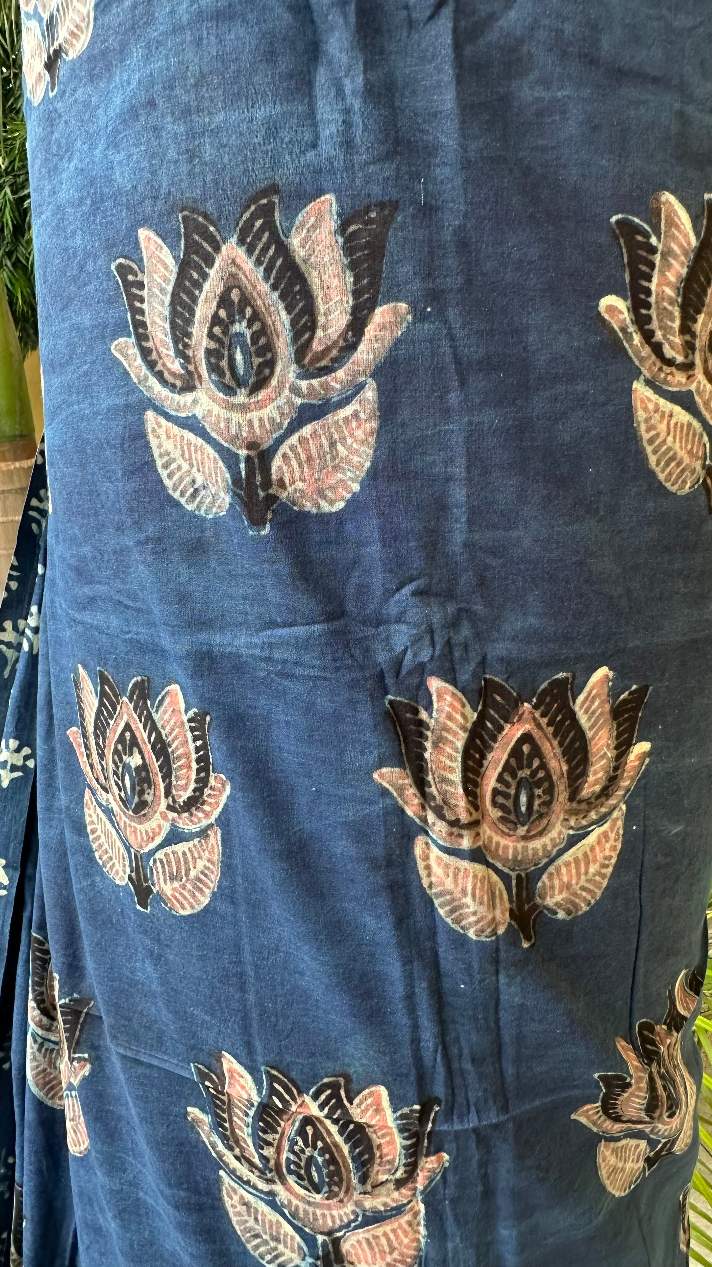 Indigo Lotus Design Handblock Taj Cotton Natural Dyed Ajrakh Suit set