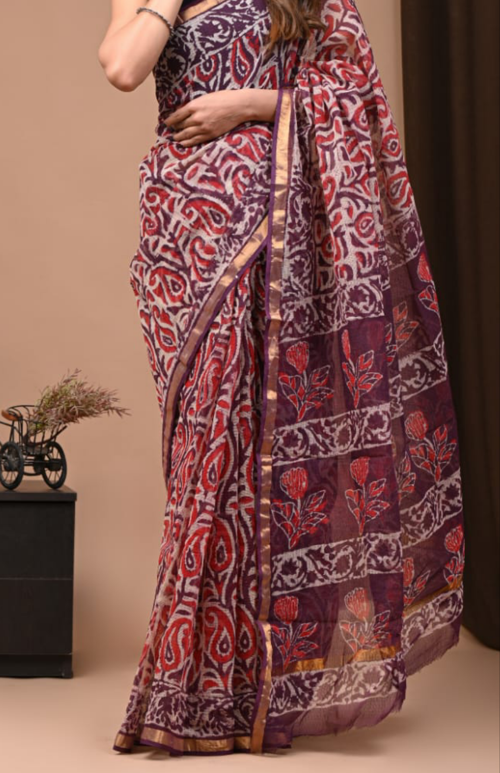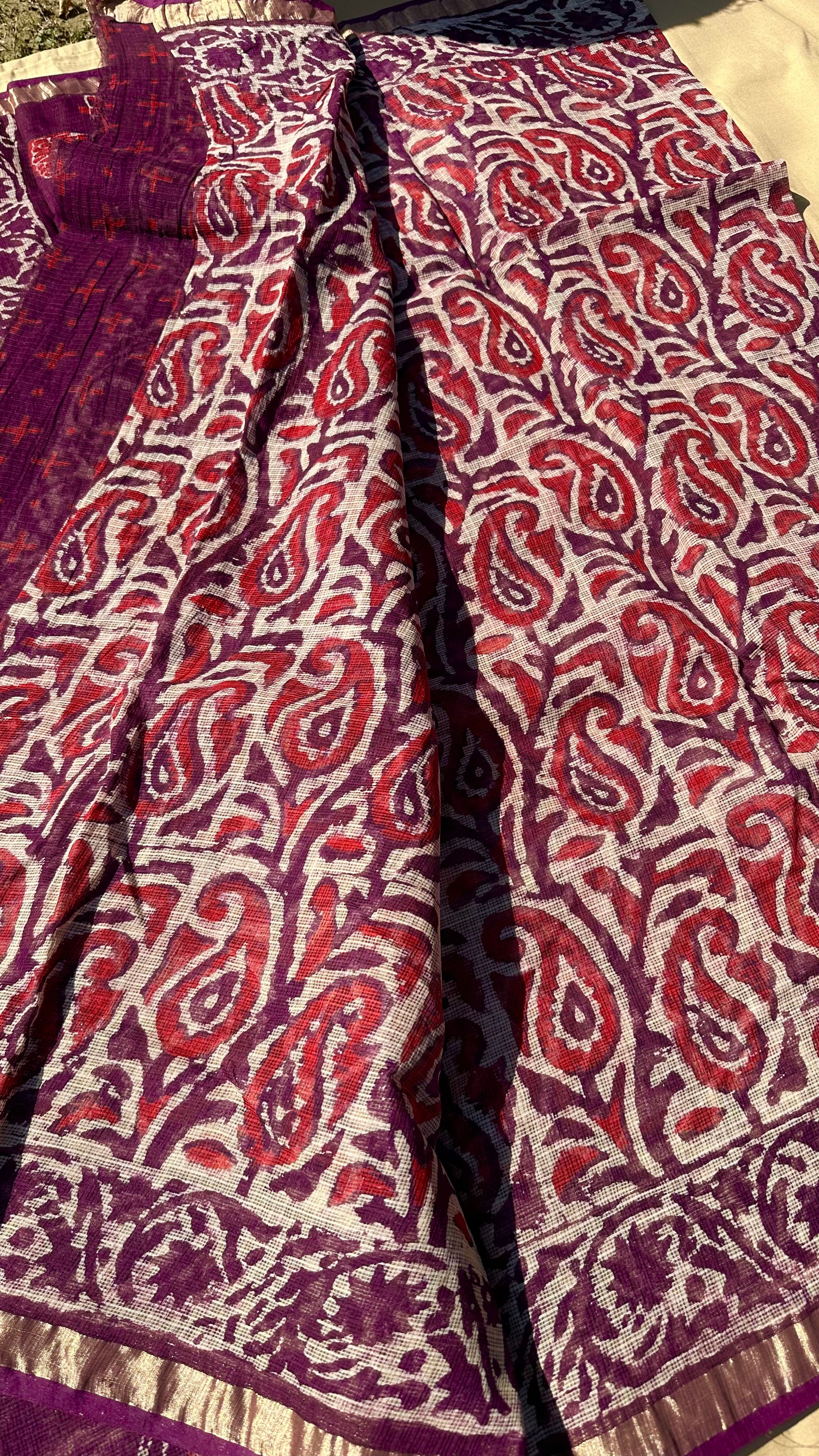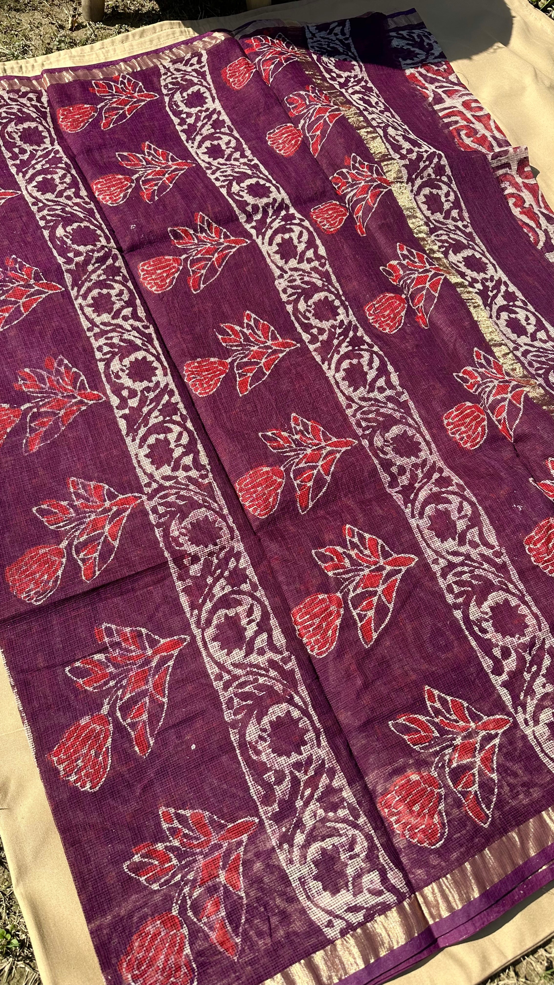 Blouse : 1mtr Kota Doria Handblock printed blouse.