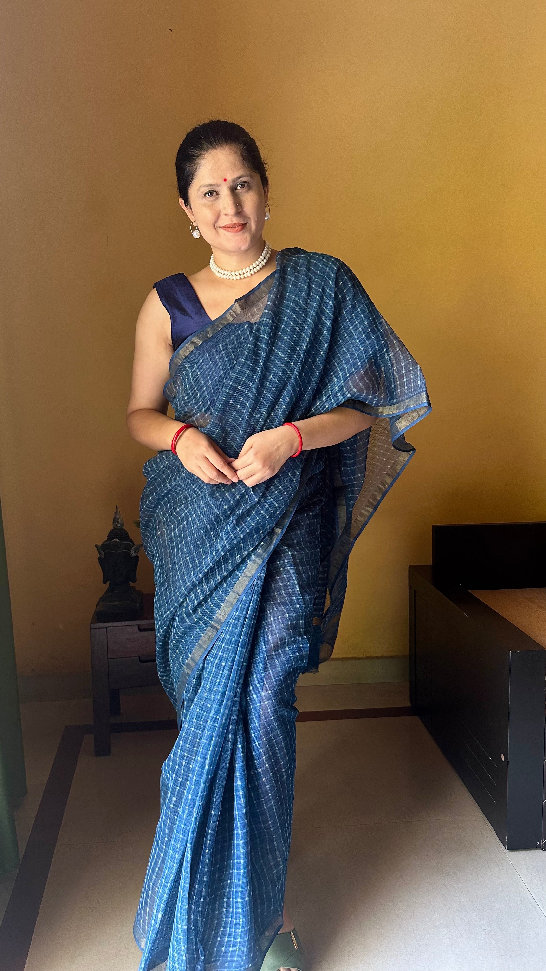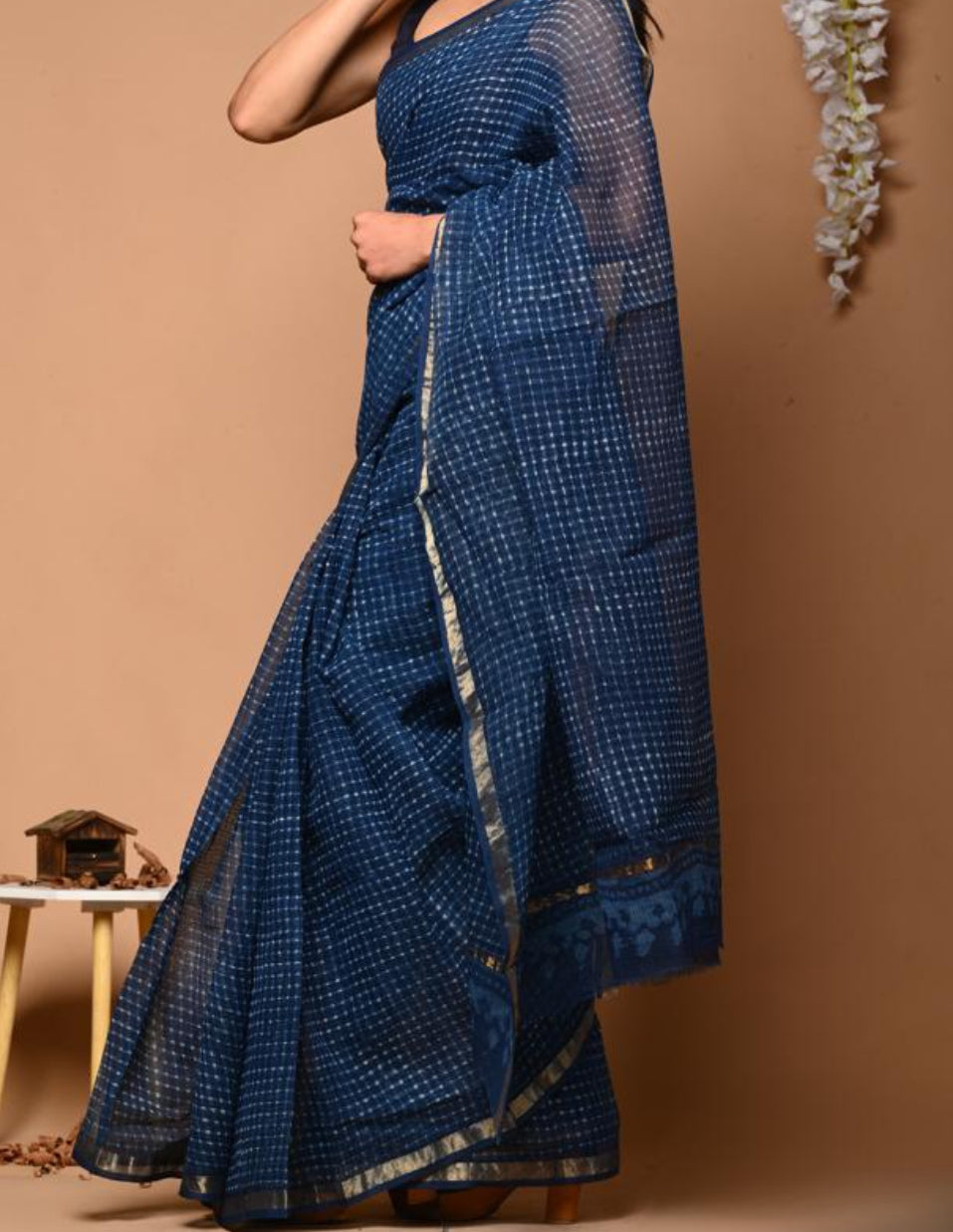 Material: soft Kota handblock print saree. Made by using natural dyes.L- 5.5 mtrs, W- 42 inches