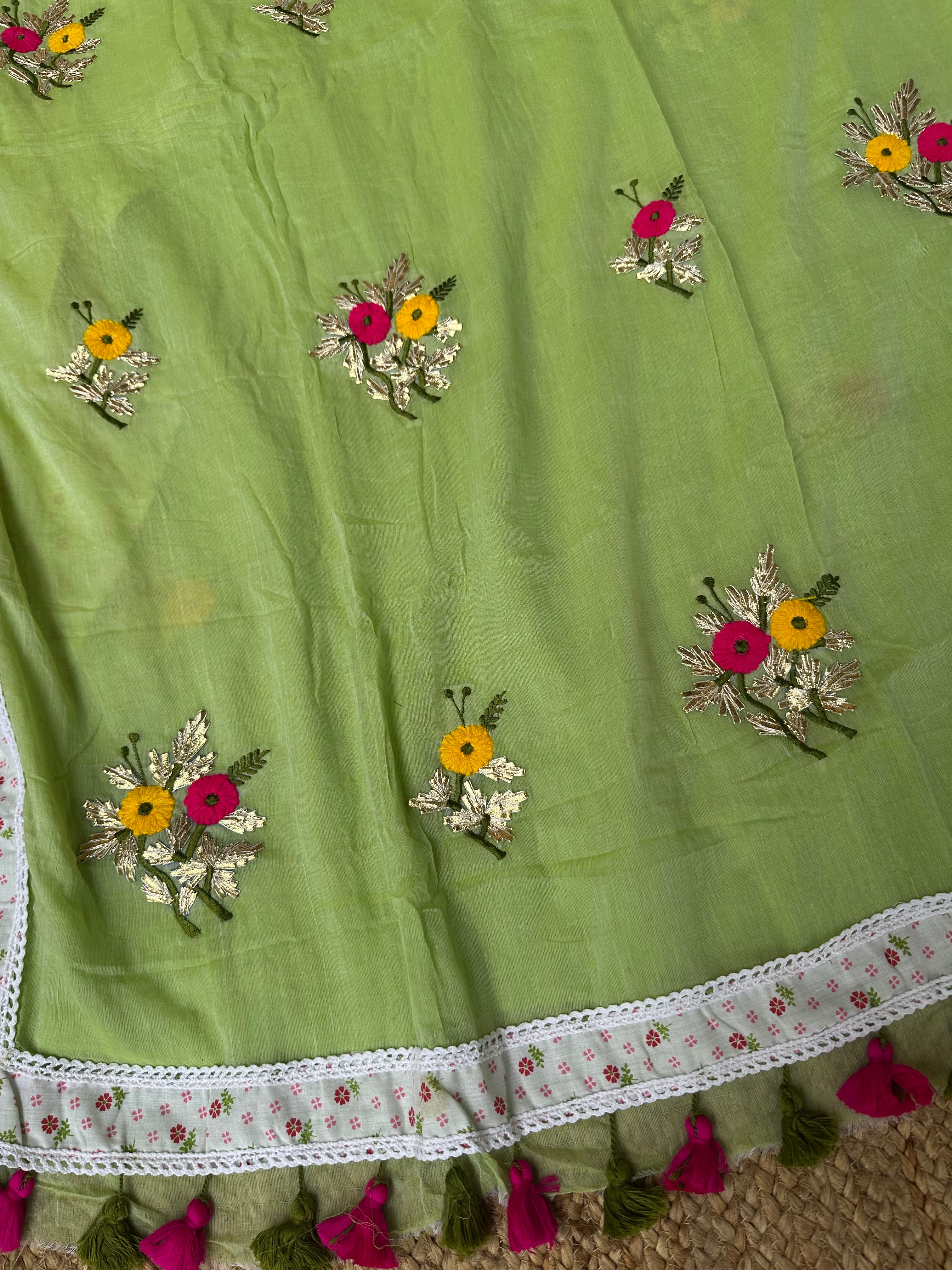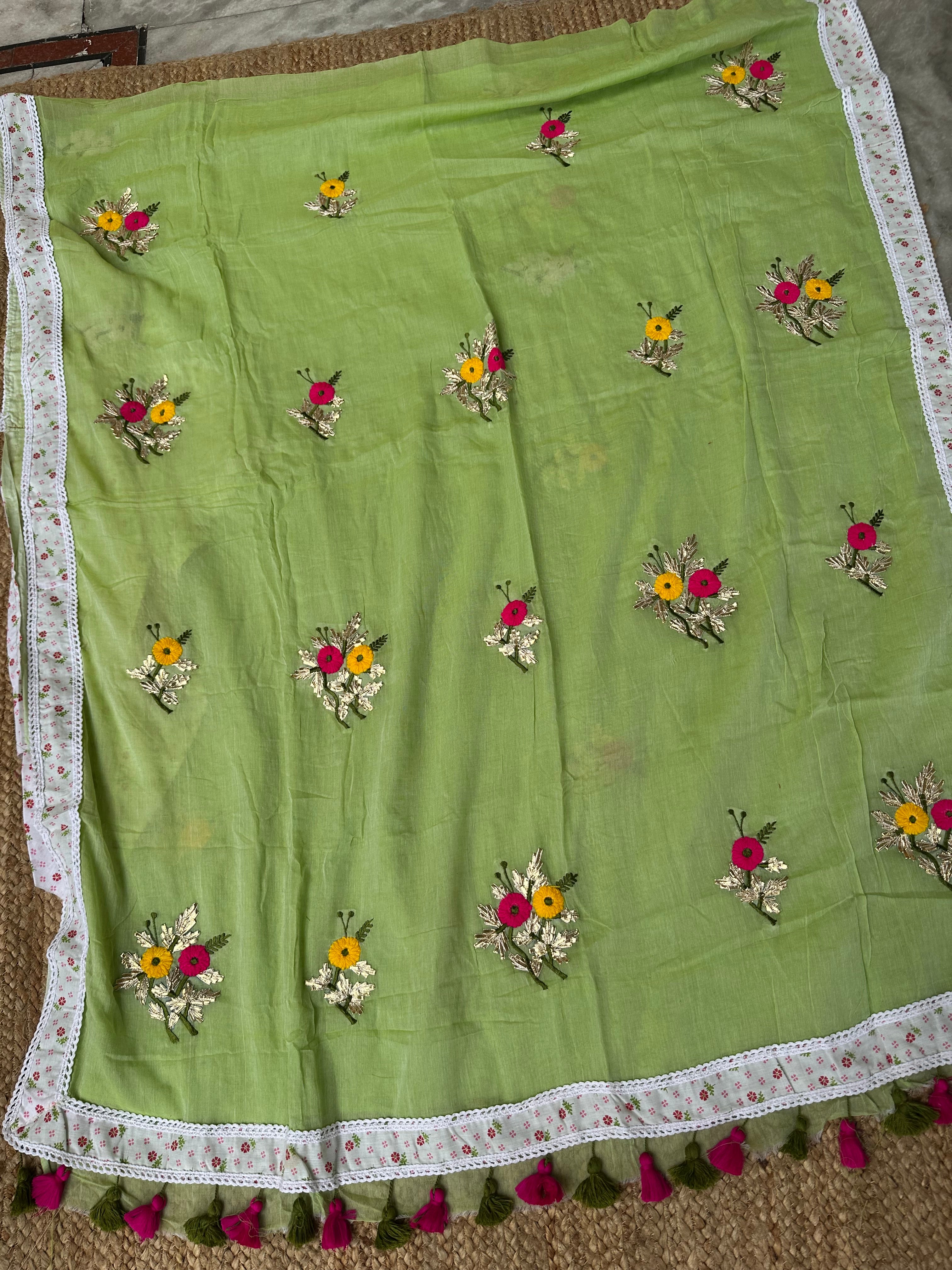 Light Green Mul Cotton Gota Patti Embroidered Lacework Saree