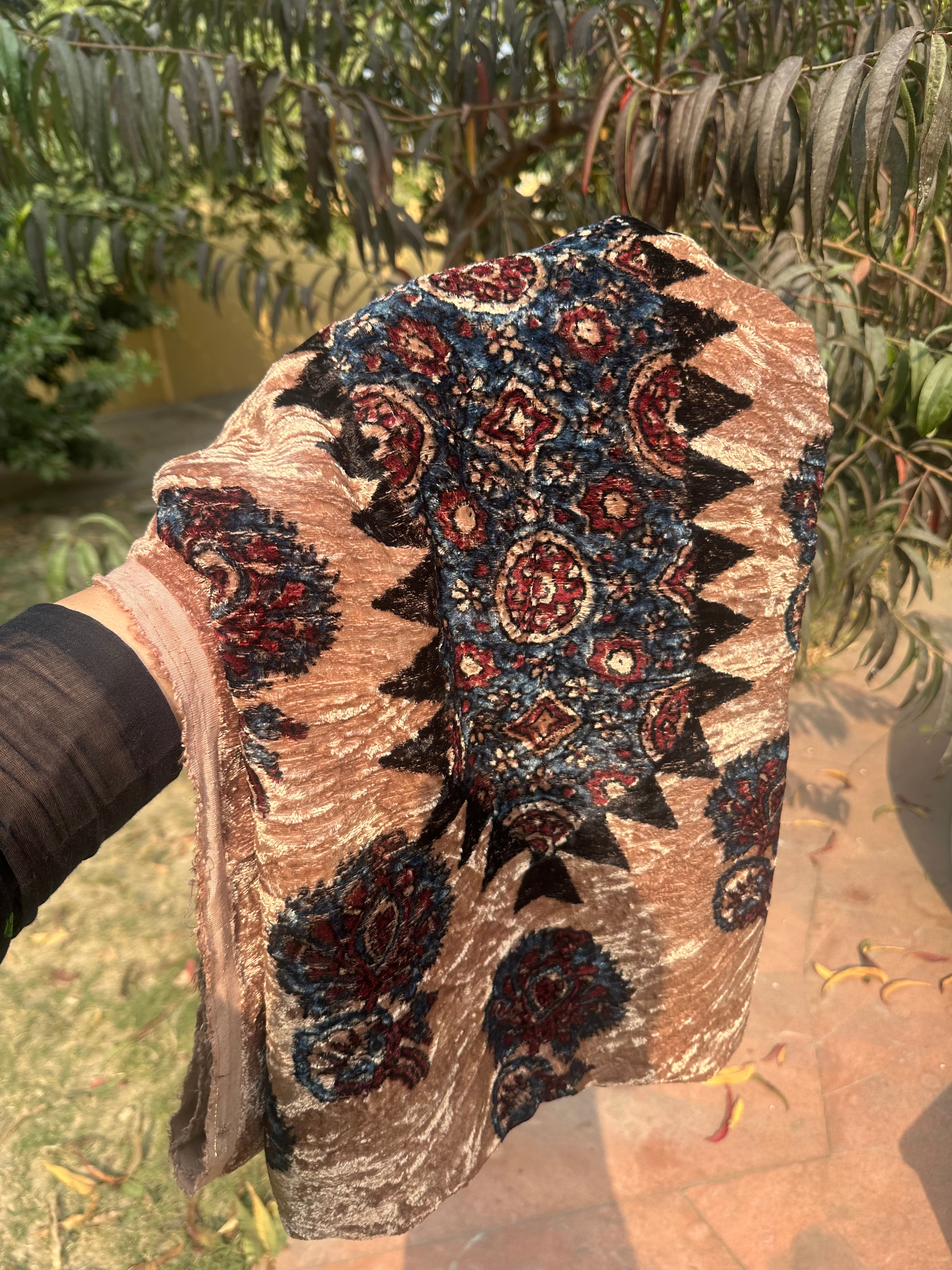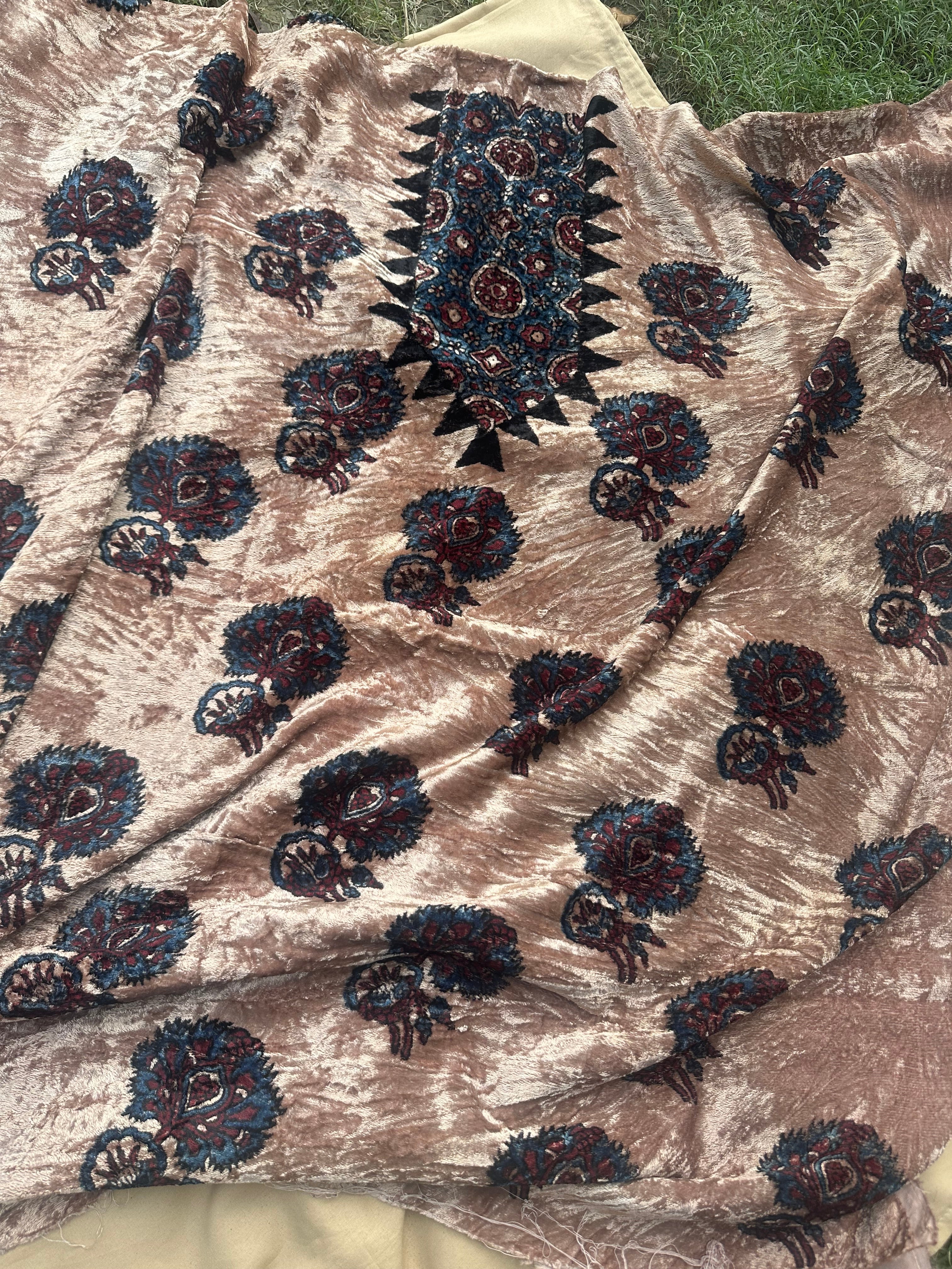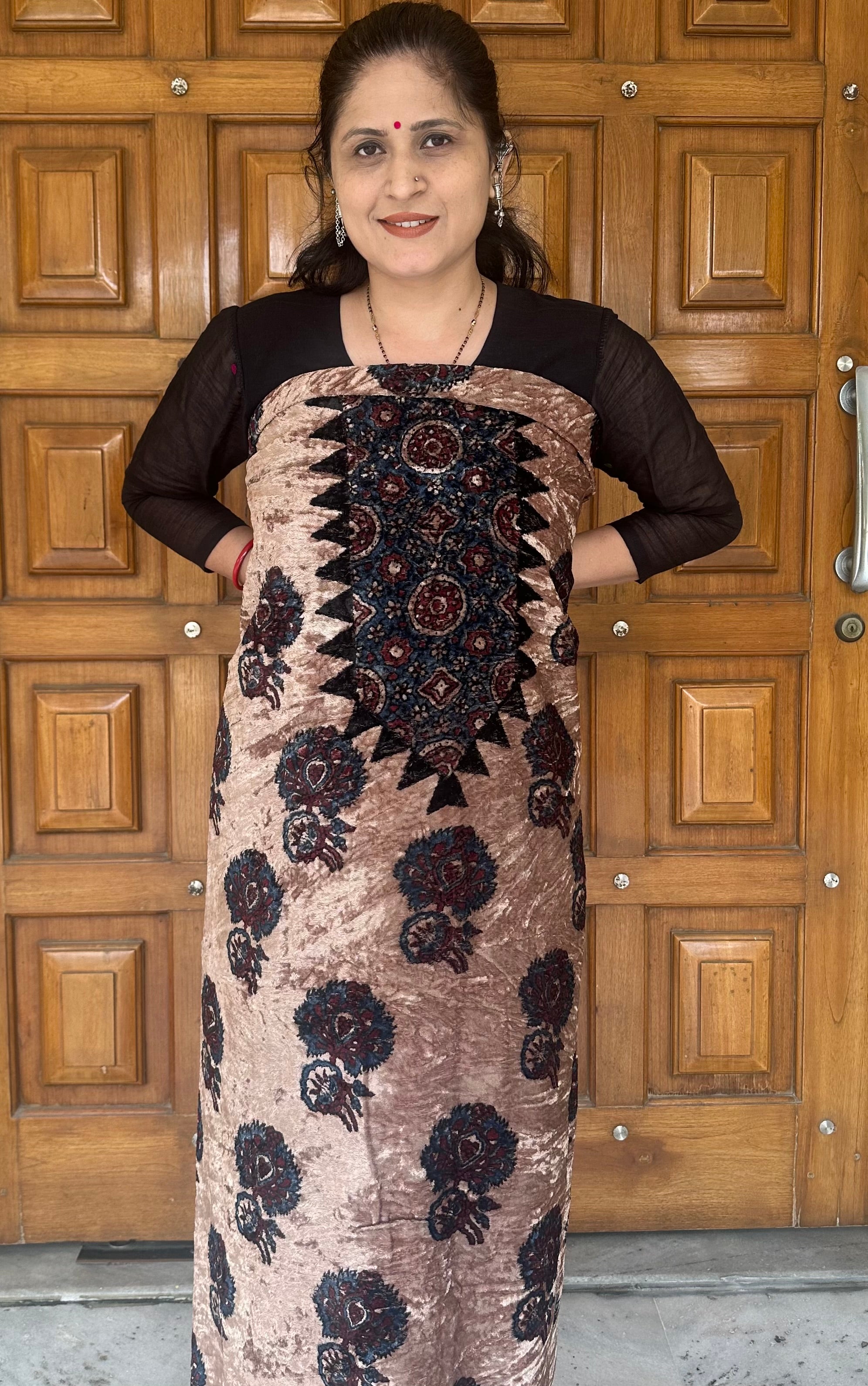 Pure Ajrakh Handblock Printed Velvet Kurta fabric.