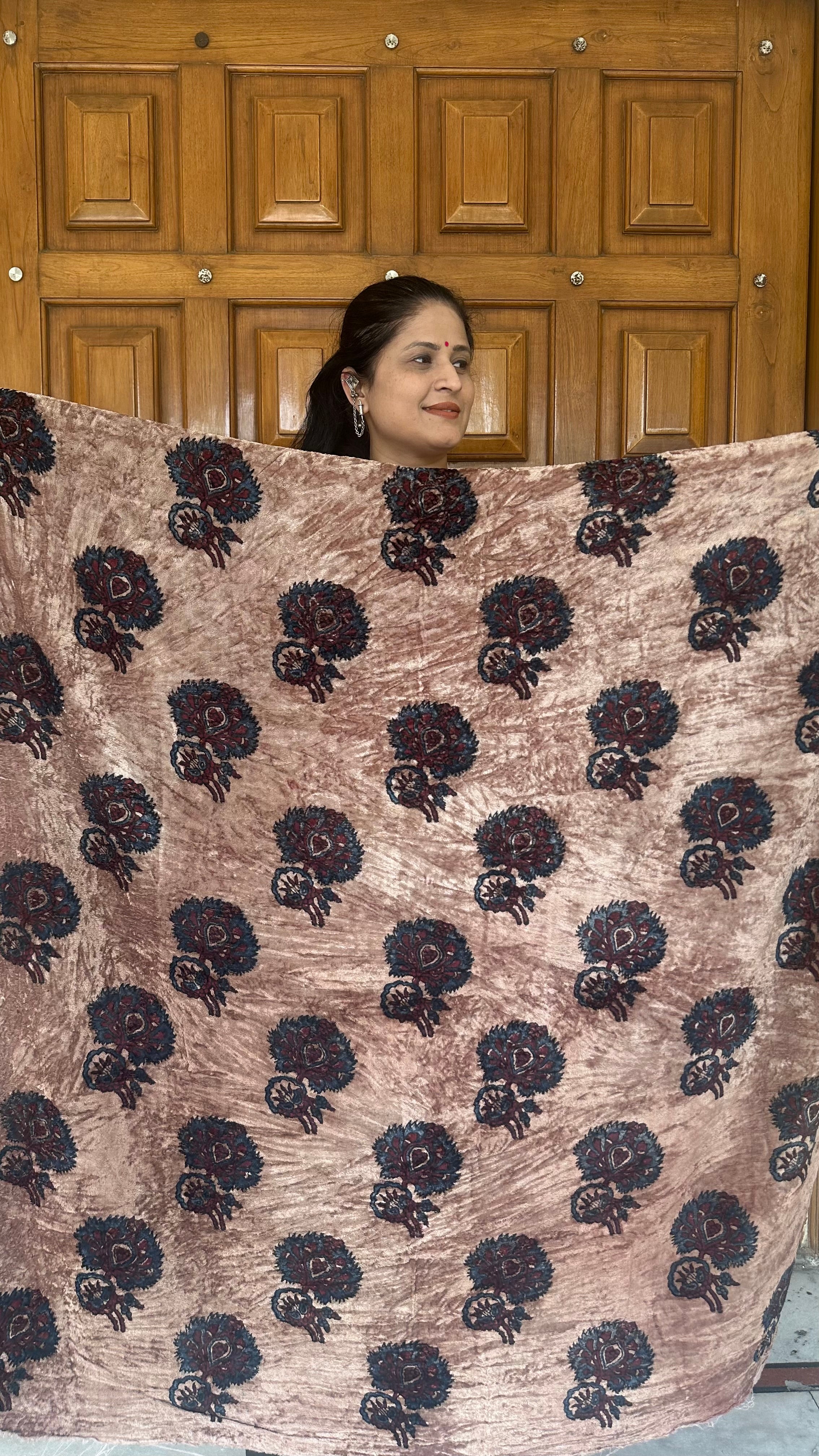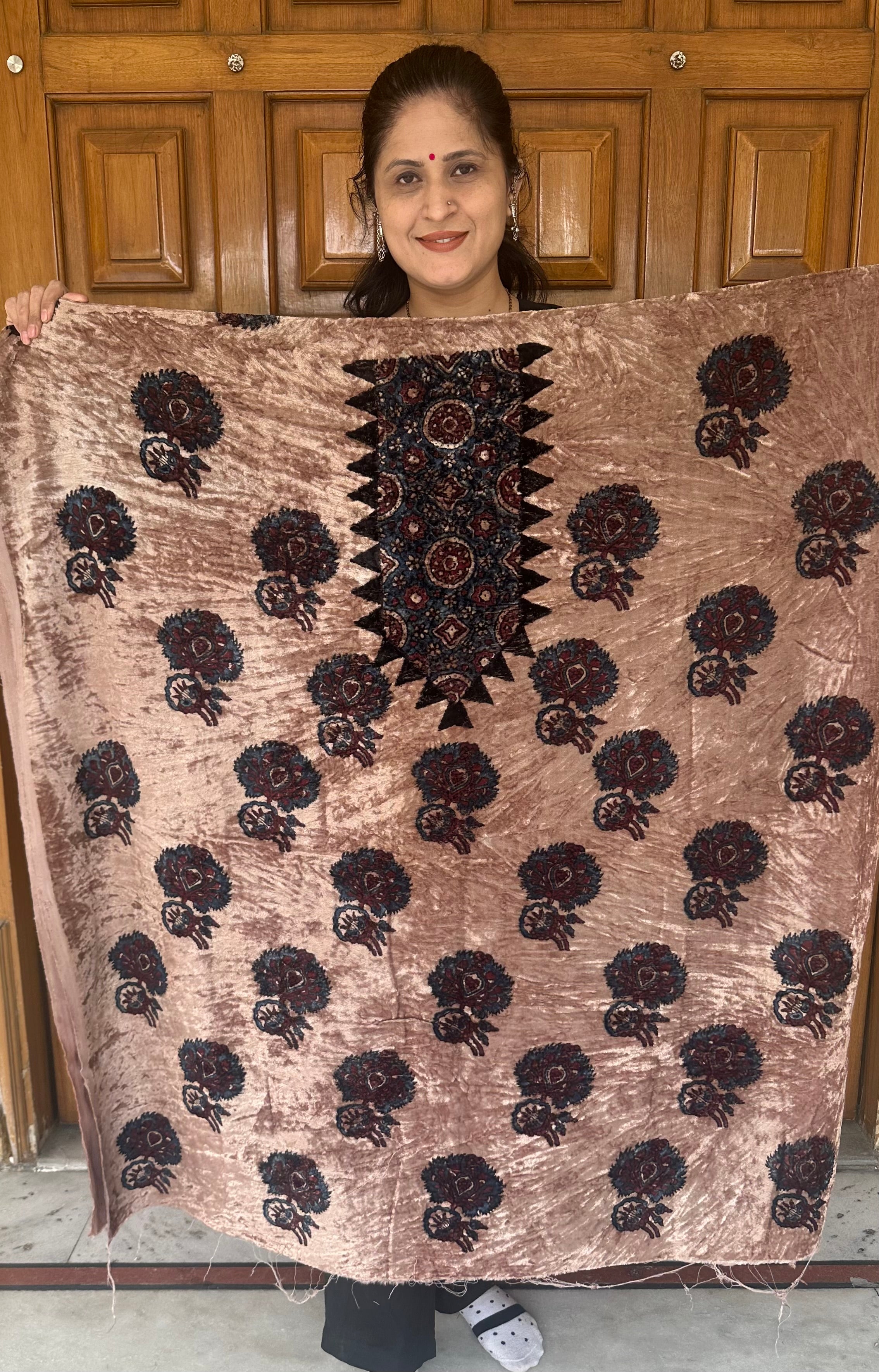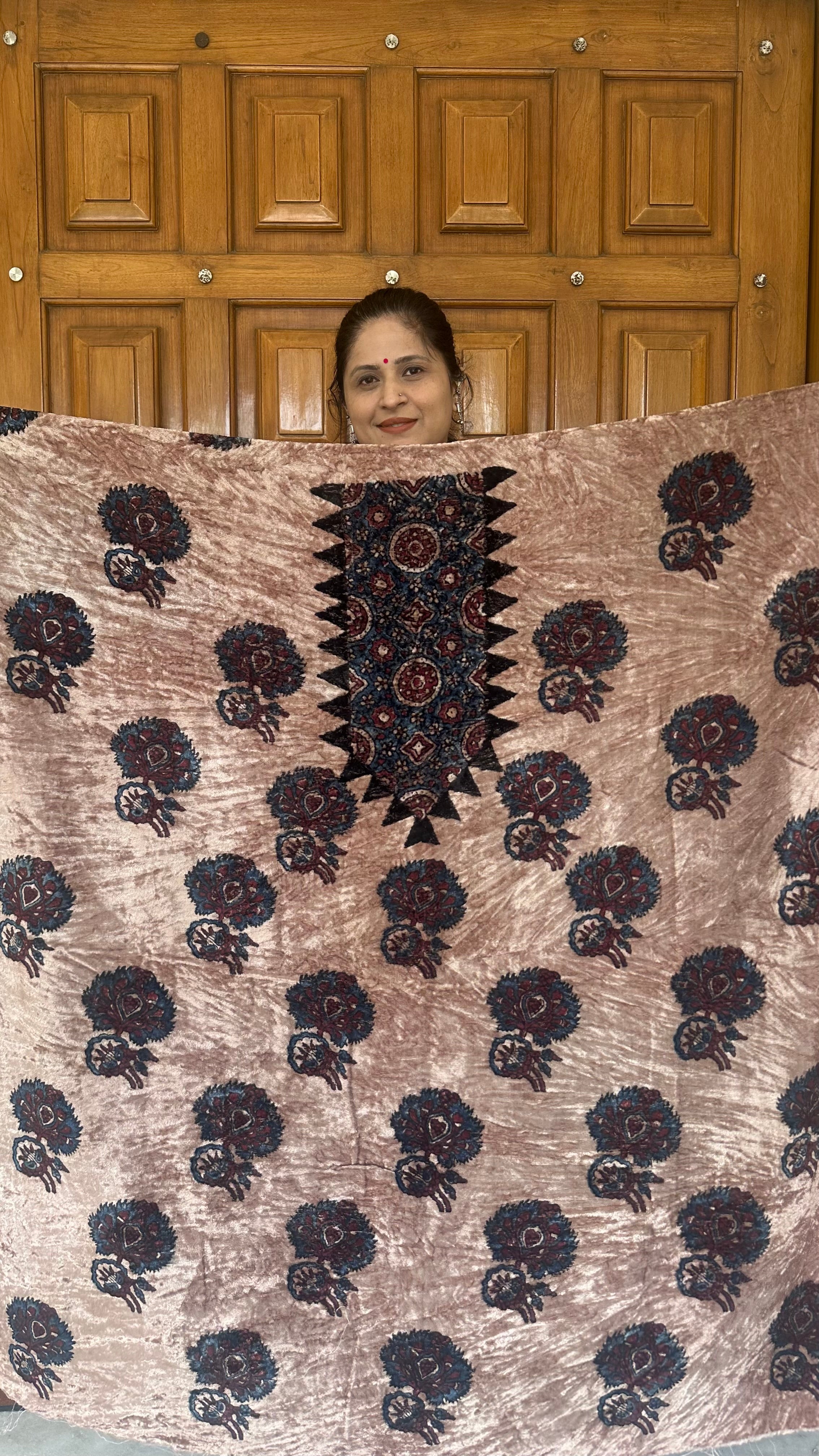 Pure Ajrakh Handblock Printed Velvet Kurta fabric.