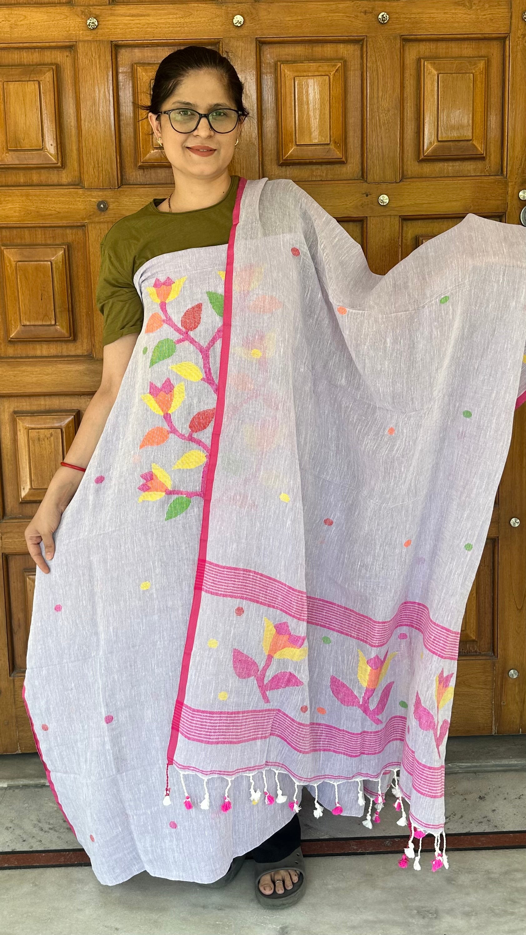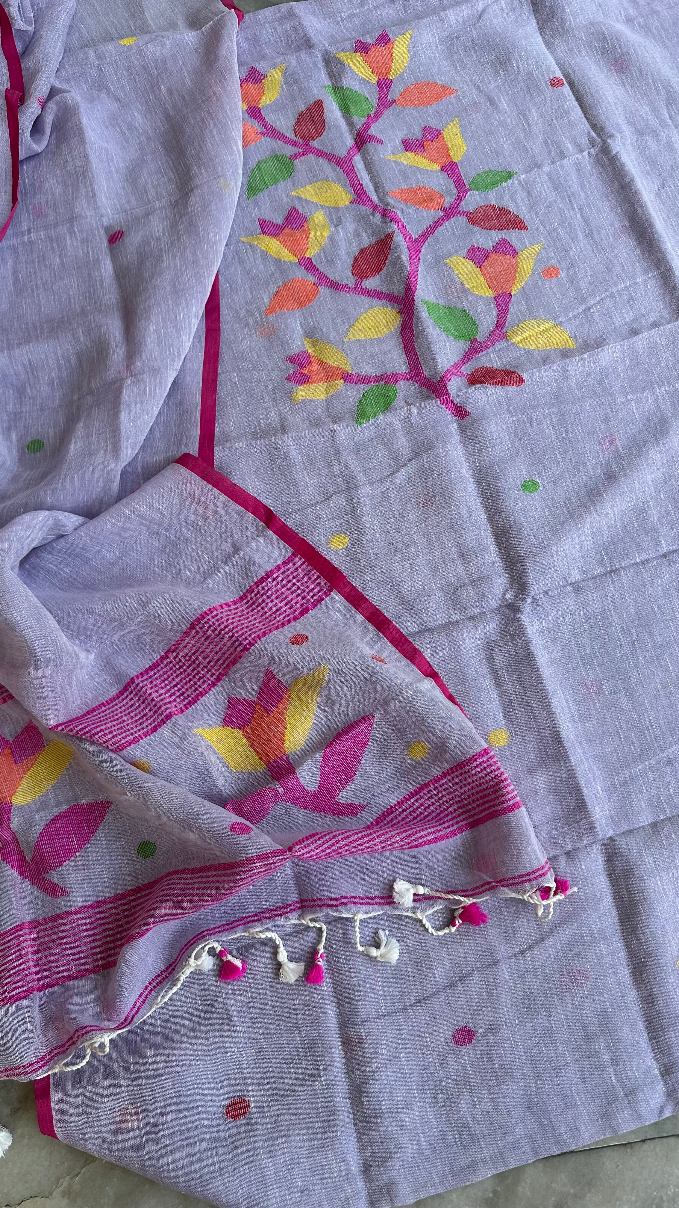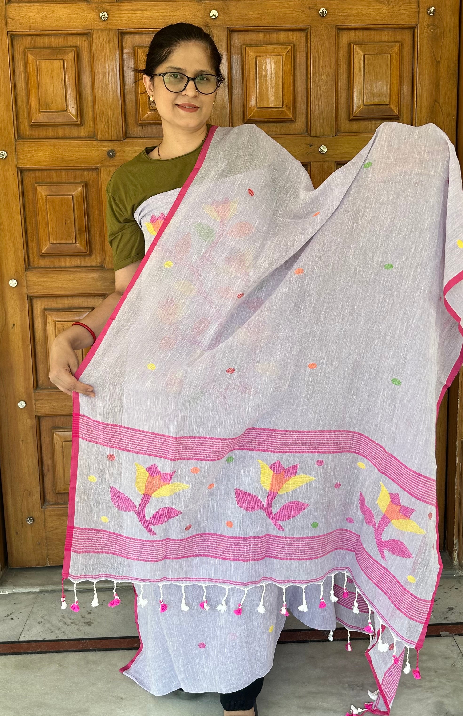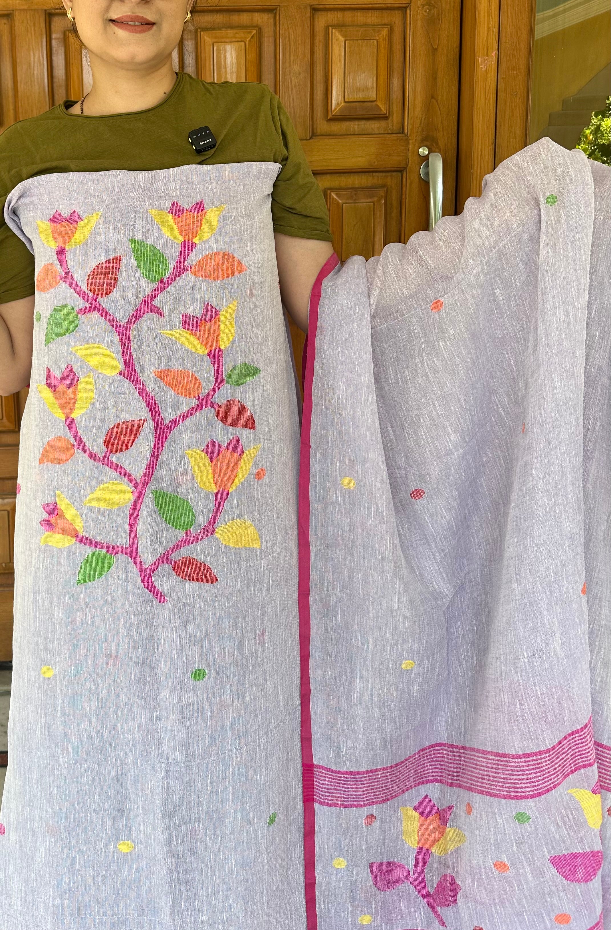 Lightest Purple Linen Handloom Jamdani Kurta Dupatta Set
