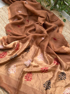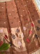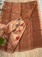 Linen Tissue Handloom Paithani Jamdani Pallu Saree- Brown