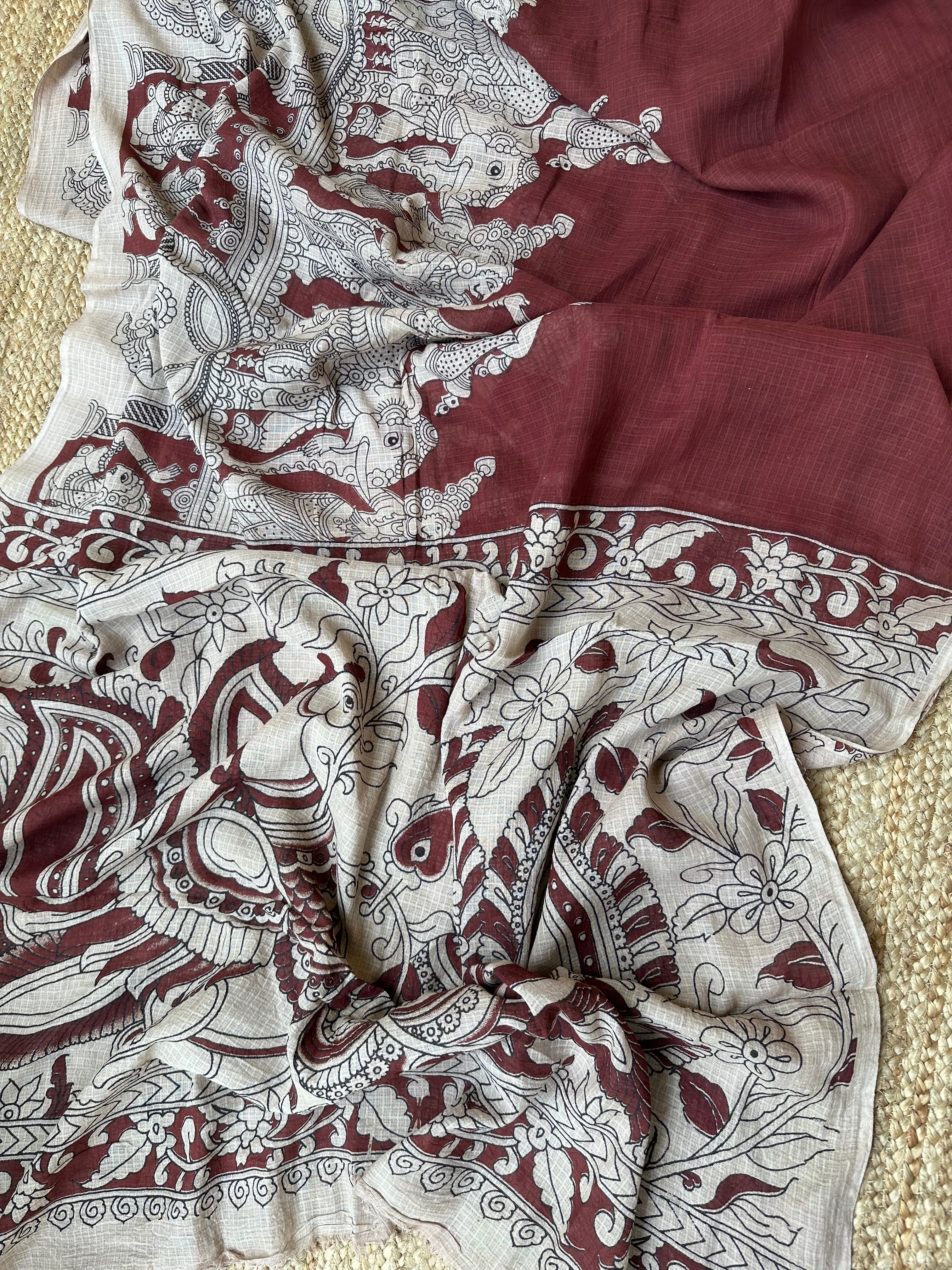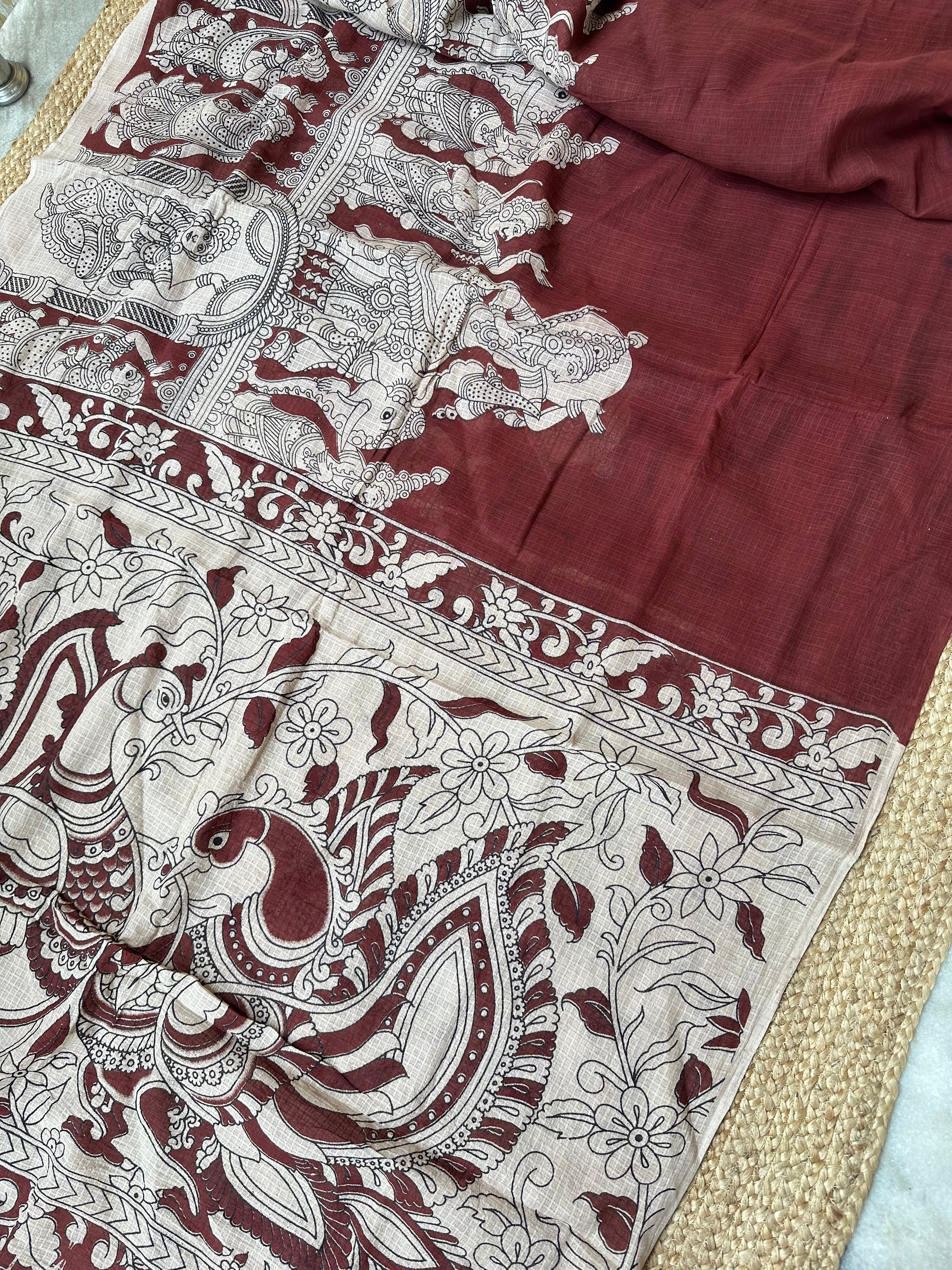 Material: Very soft Kota cotton. It is not stiff. All hand kalamkari done by artisans.