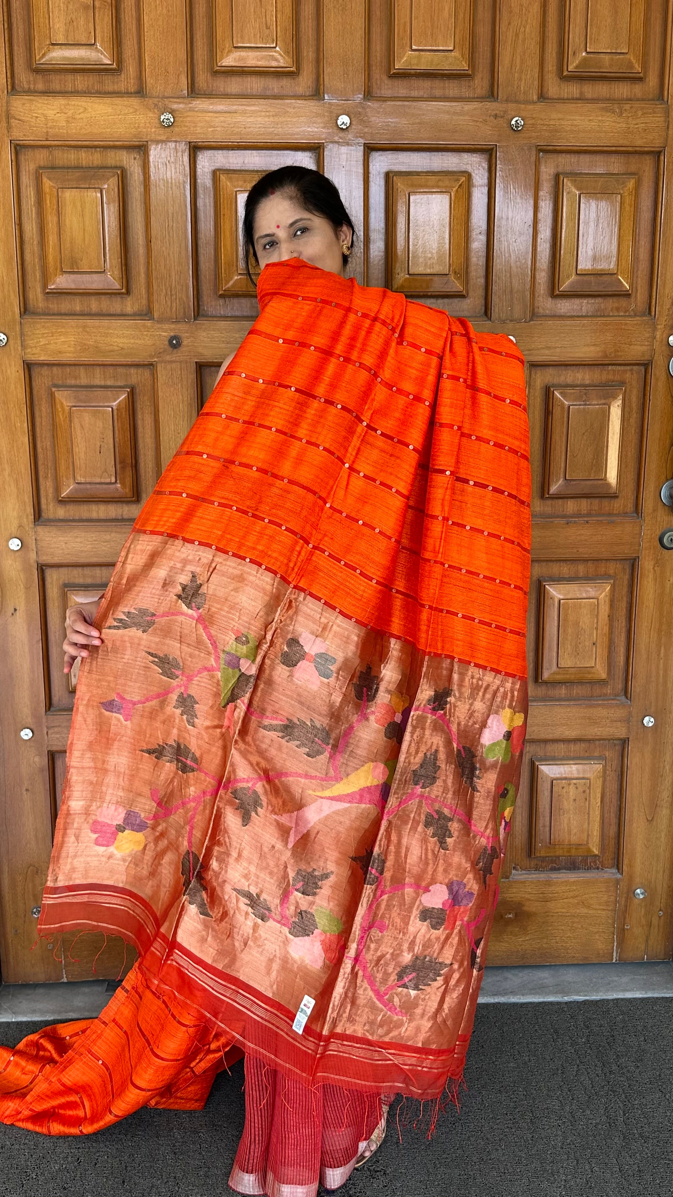 Orange Matka Silk Handloom Paithani Saree (Silkmark certified)