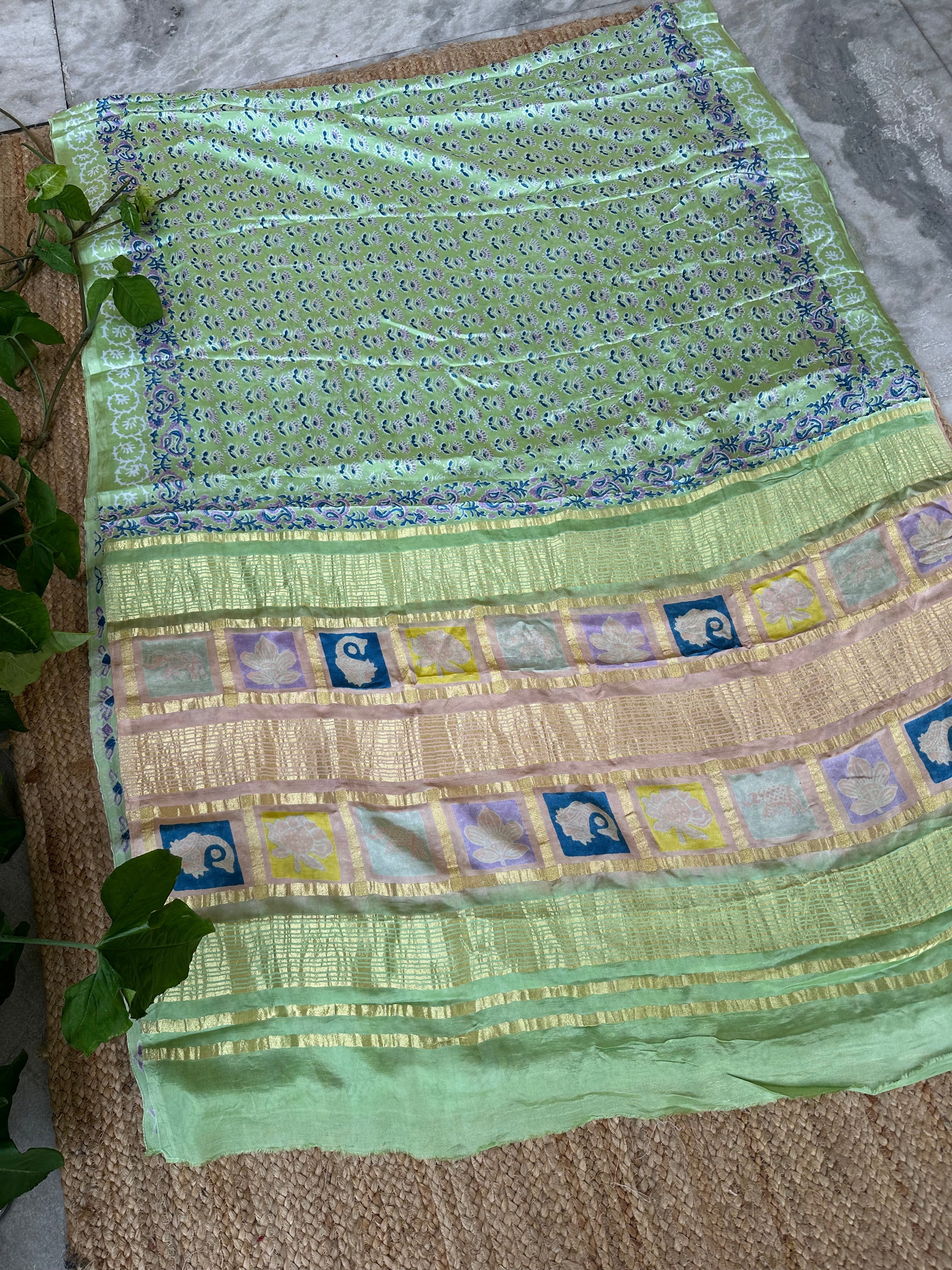 Pastel Green Modal Silk Gharchola Half n Half Saree