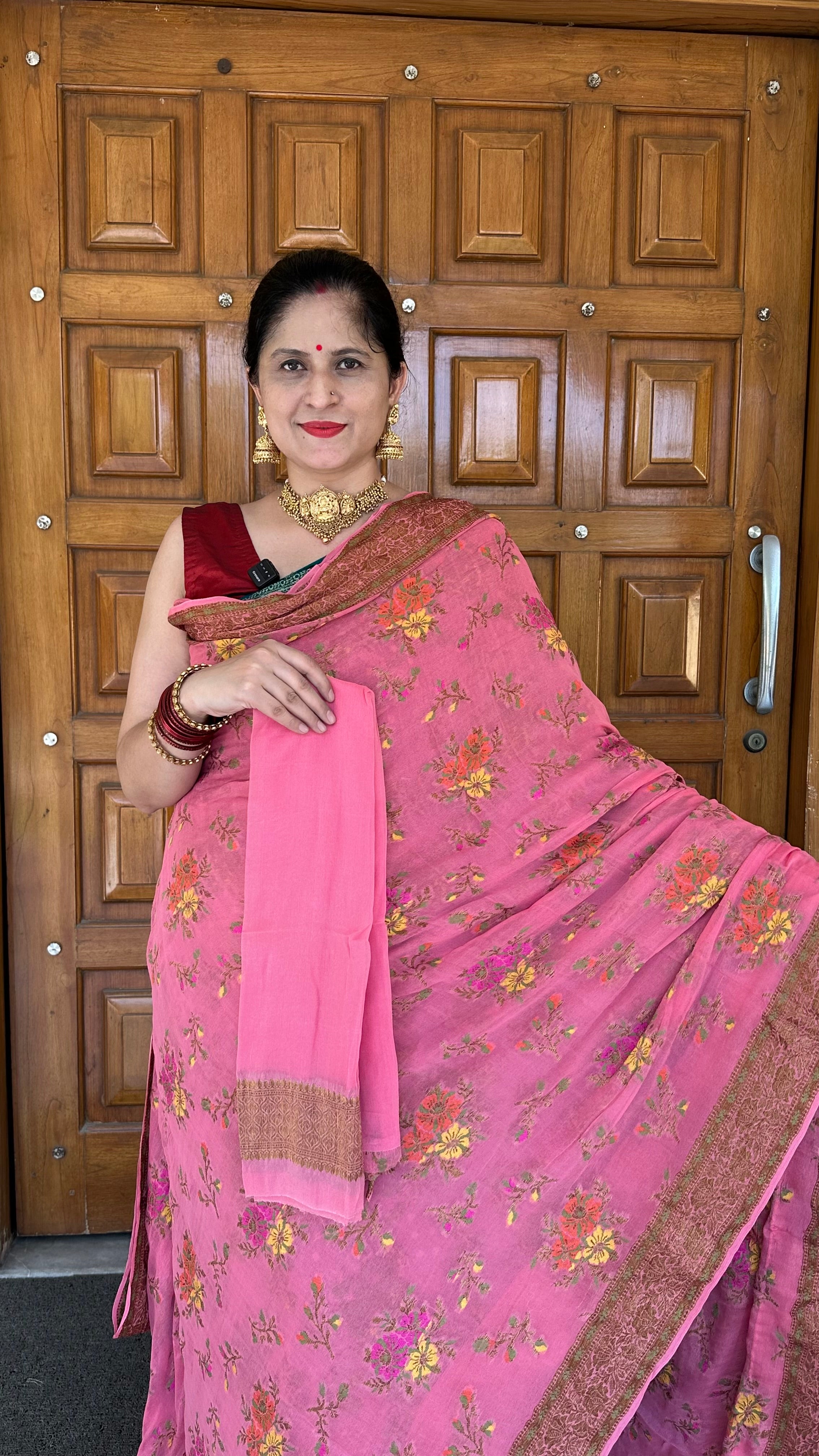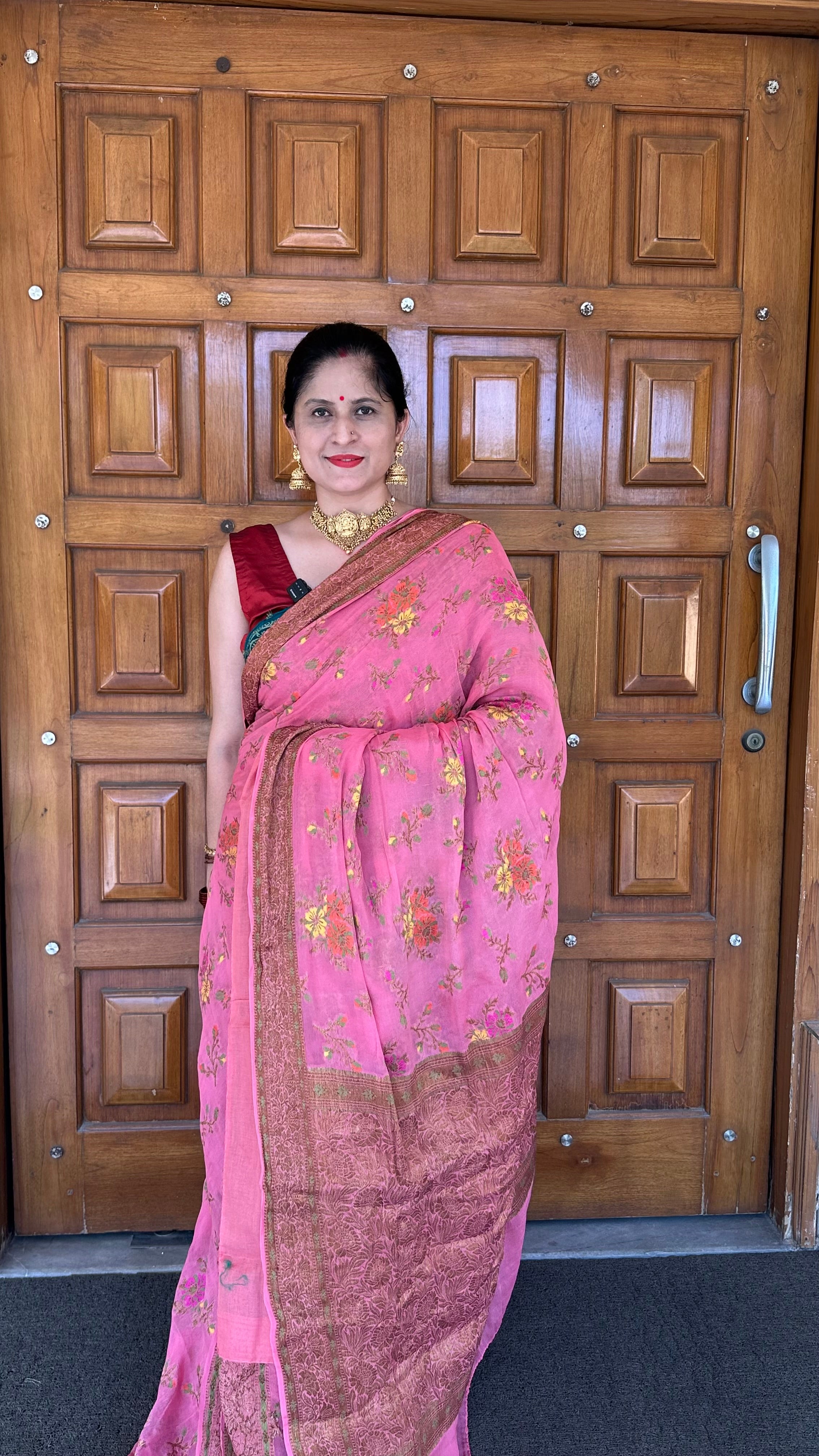 Peach Pink Pure Georgette Khaddi Handloom Saree (Silkmark certified)