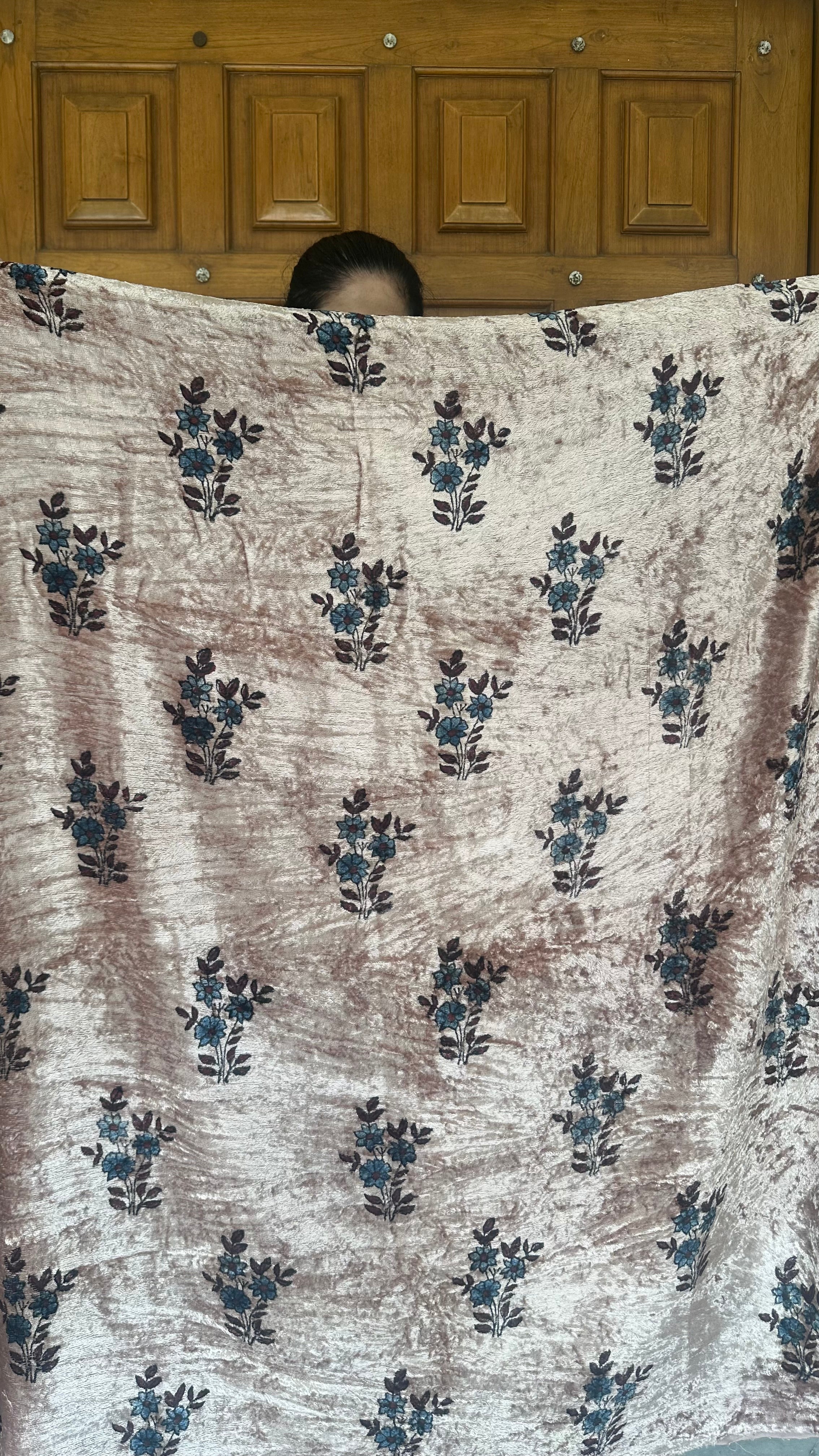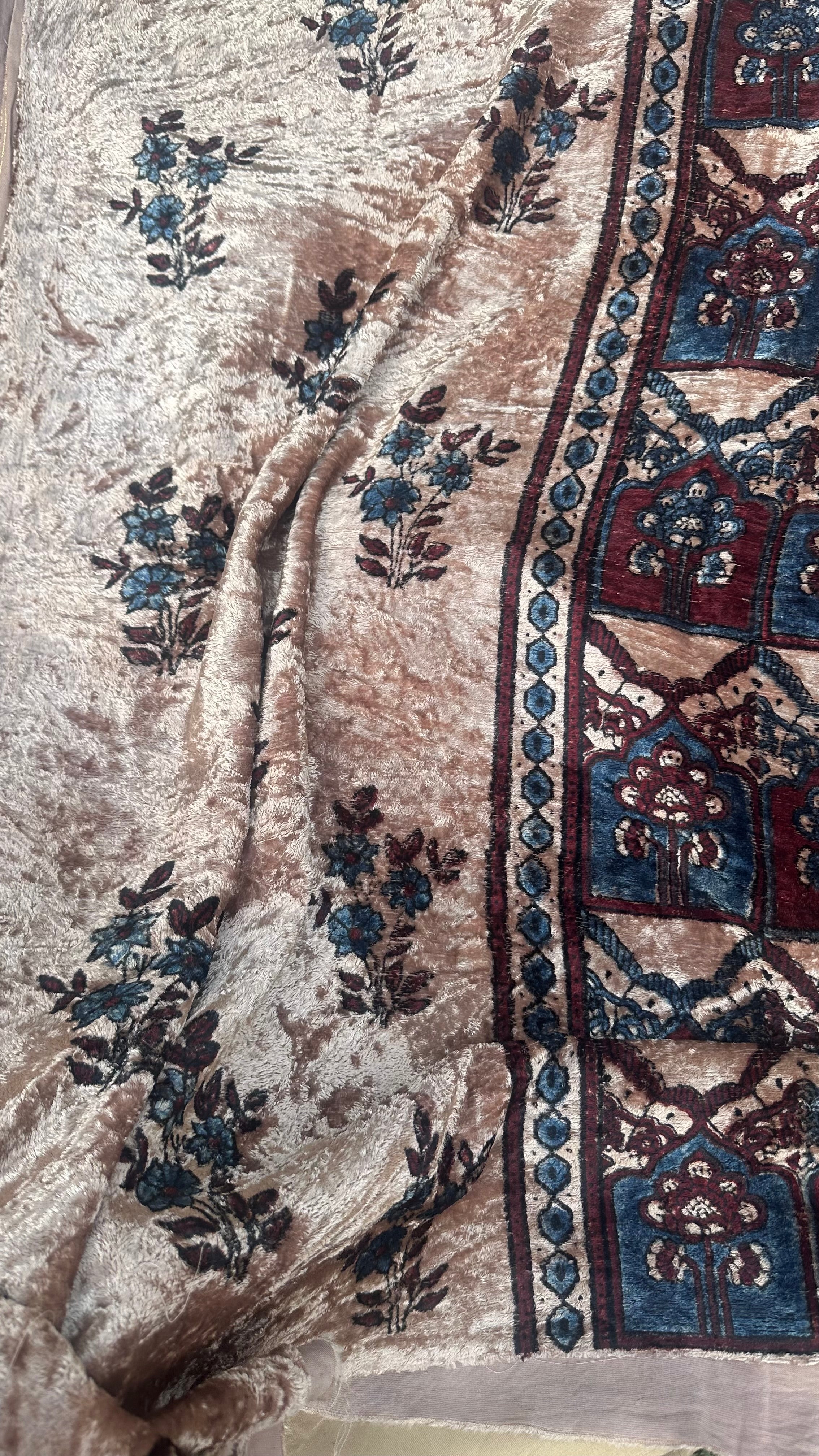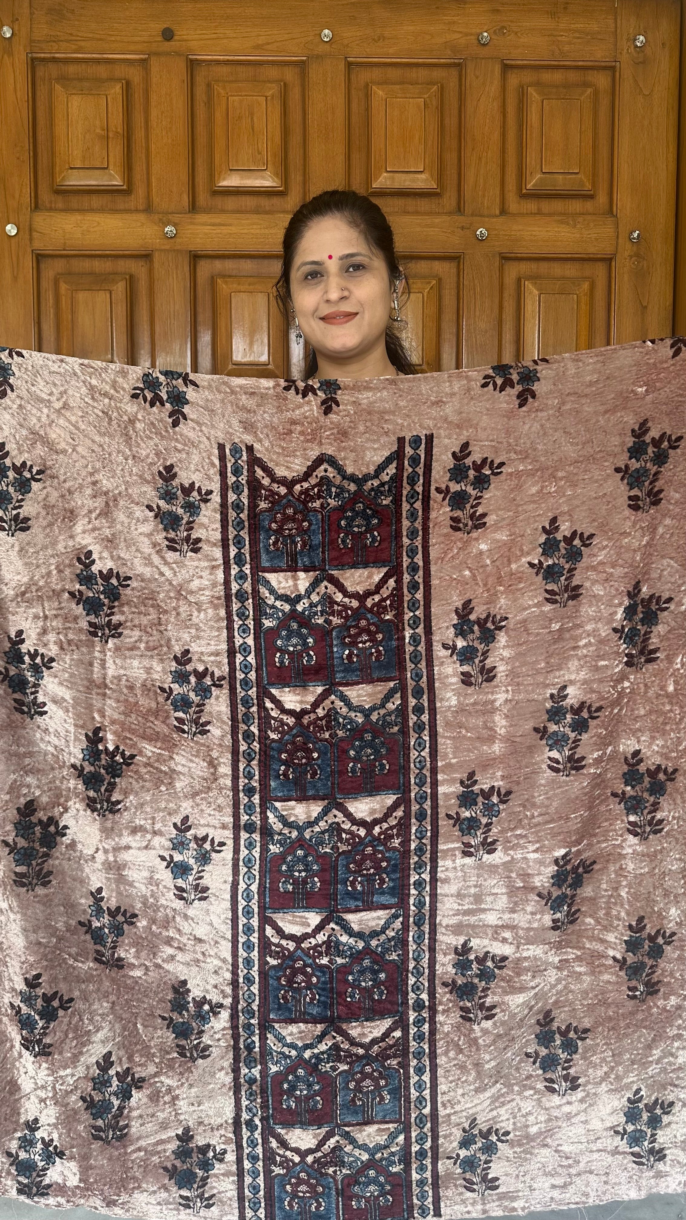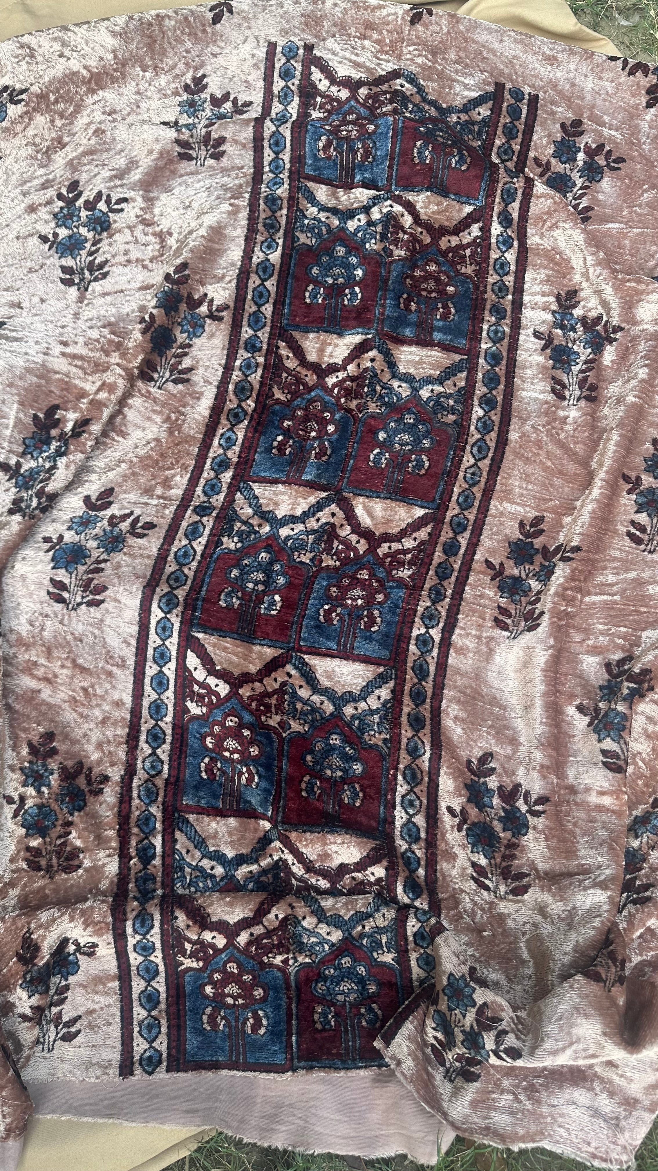 Pure Ajrakh Handblock Printed Velvet Kurta fabric.