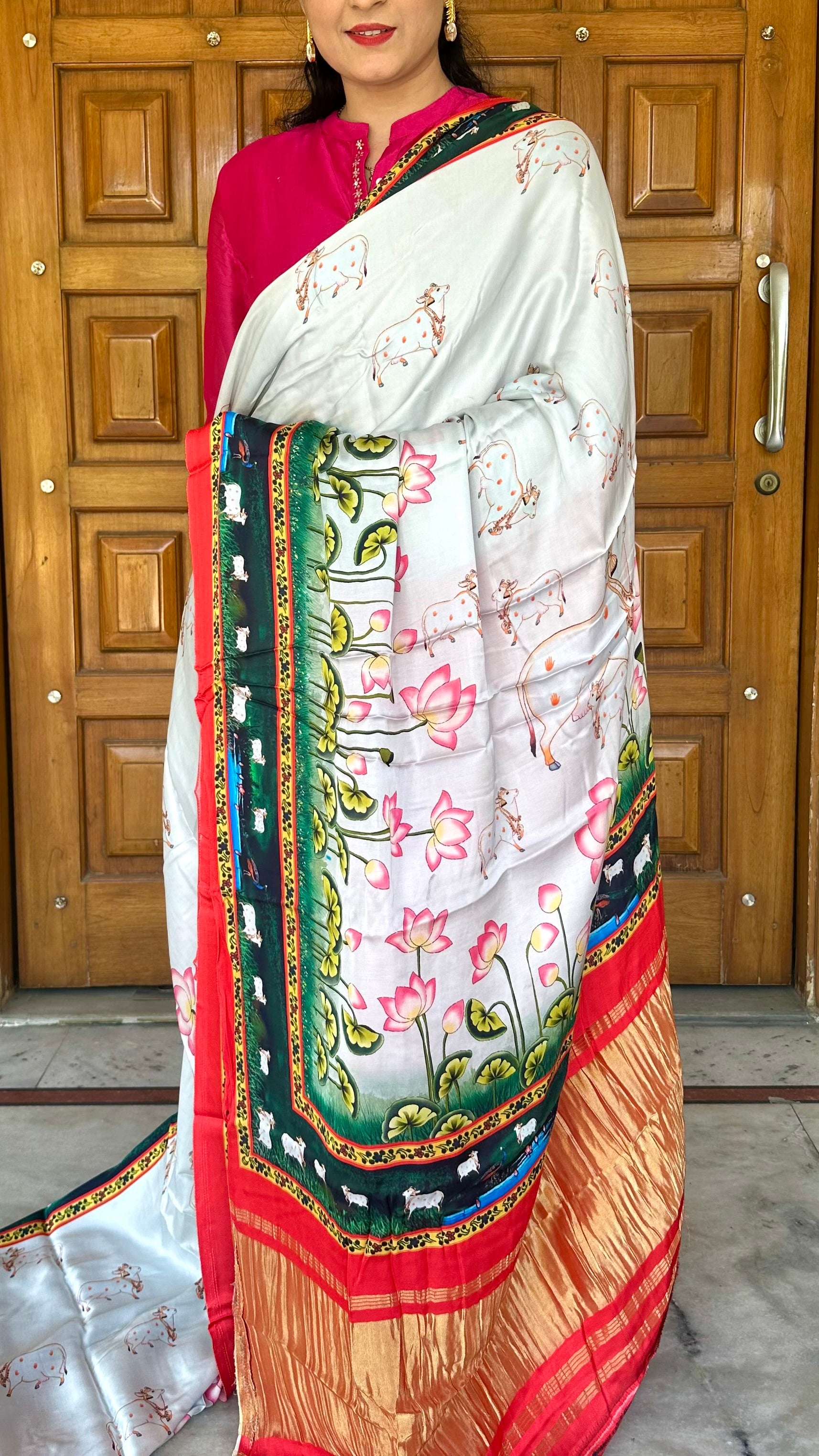 Pichwai Printed Modal Gajji Silk Saree