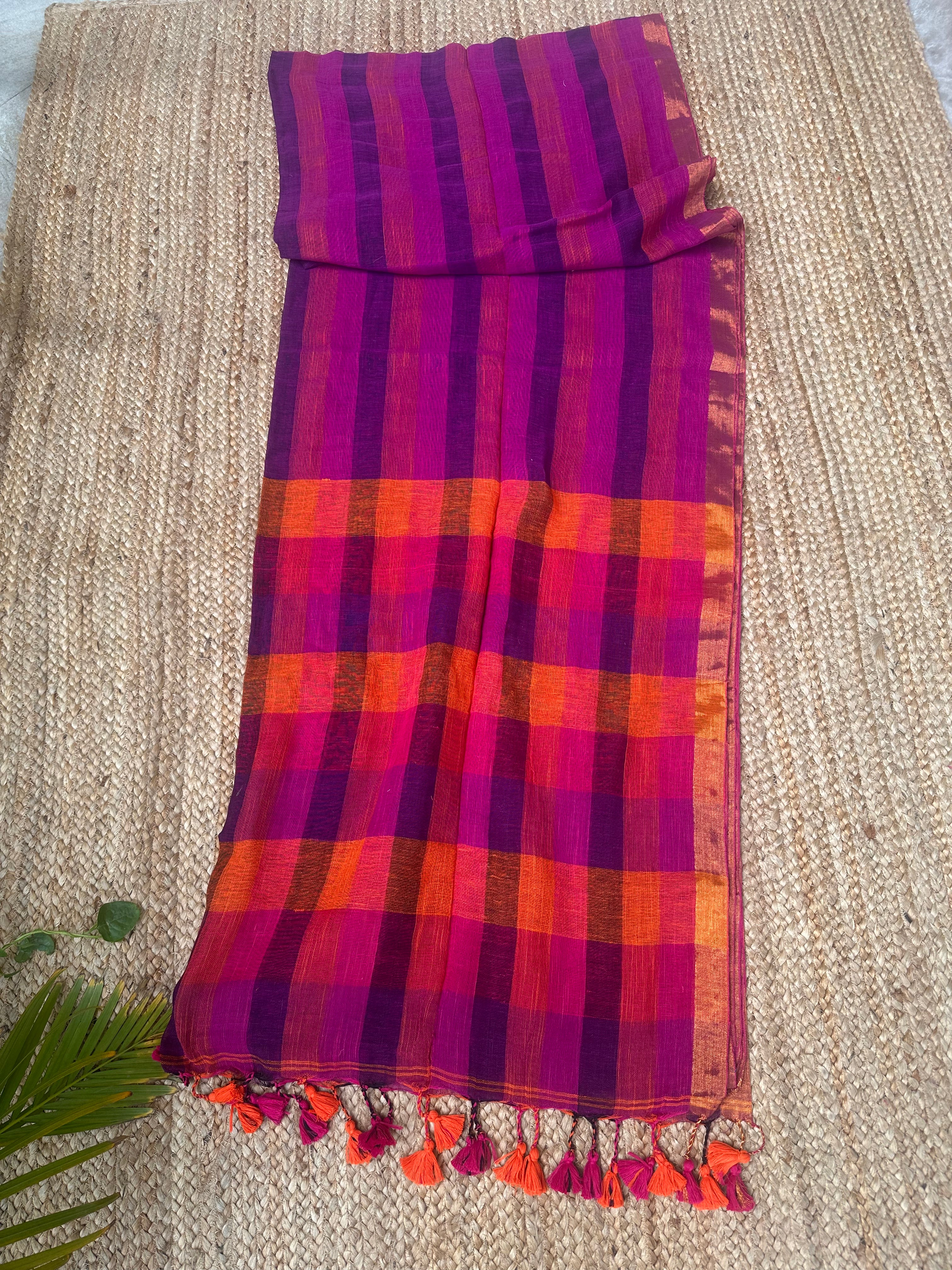 Linen : Though it is advisable to dryclean linen sarees. And please do the same of specially expensive sarees. But if you don't want to dryclean, then wash at home in cold water with some mild shampoo or ezee.