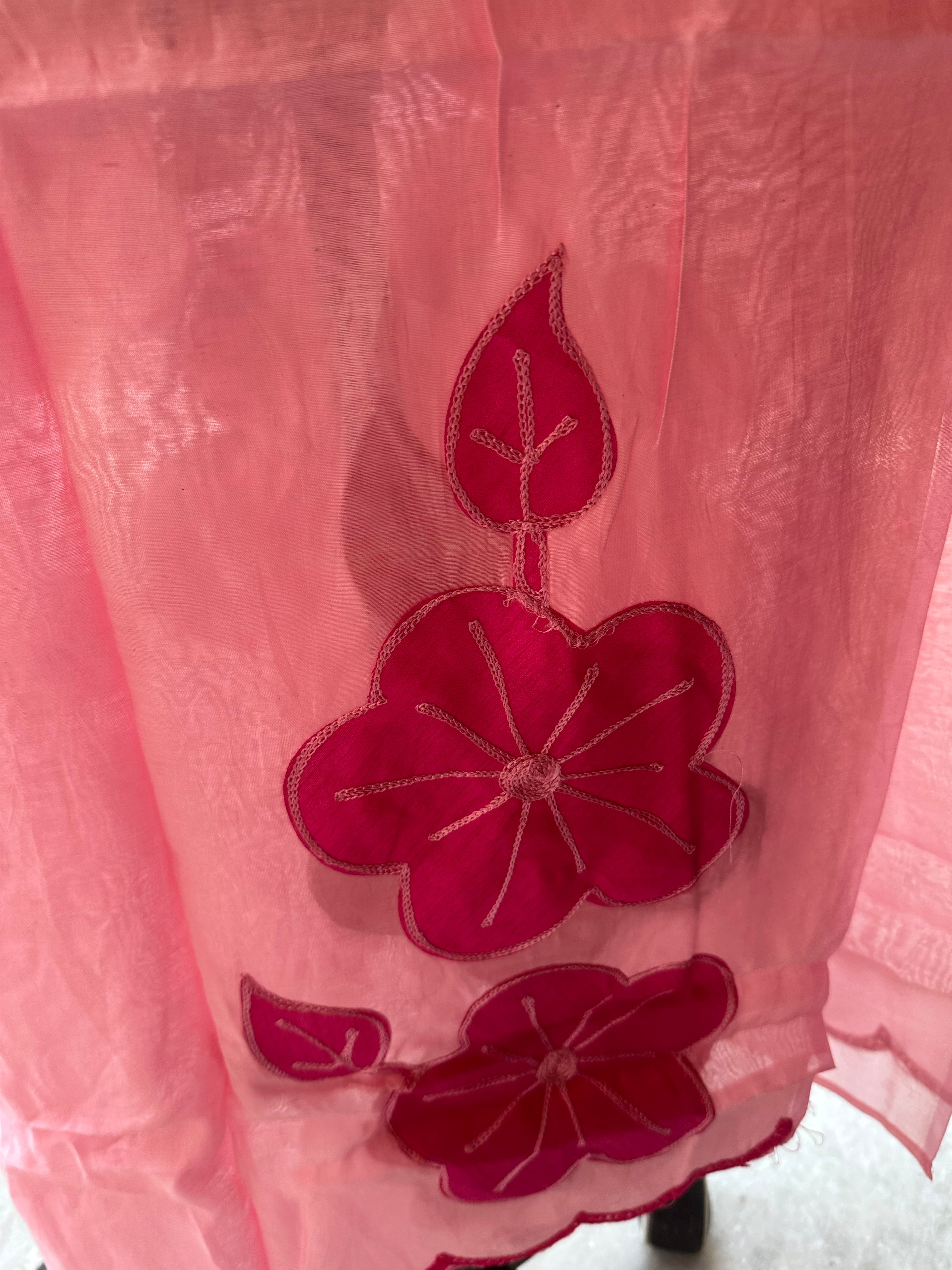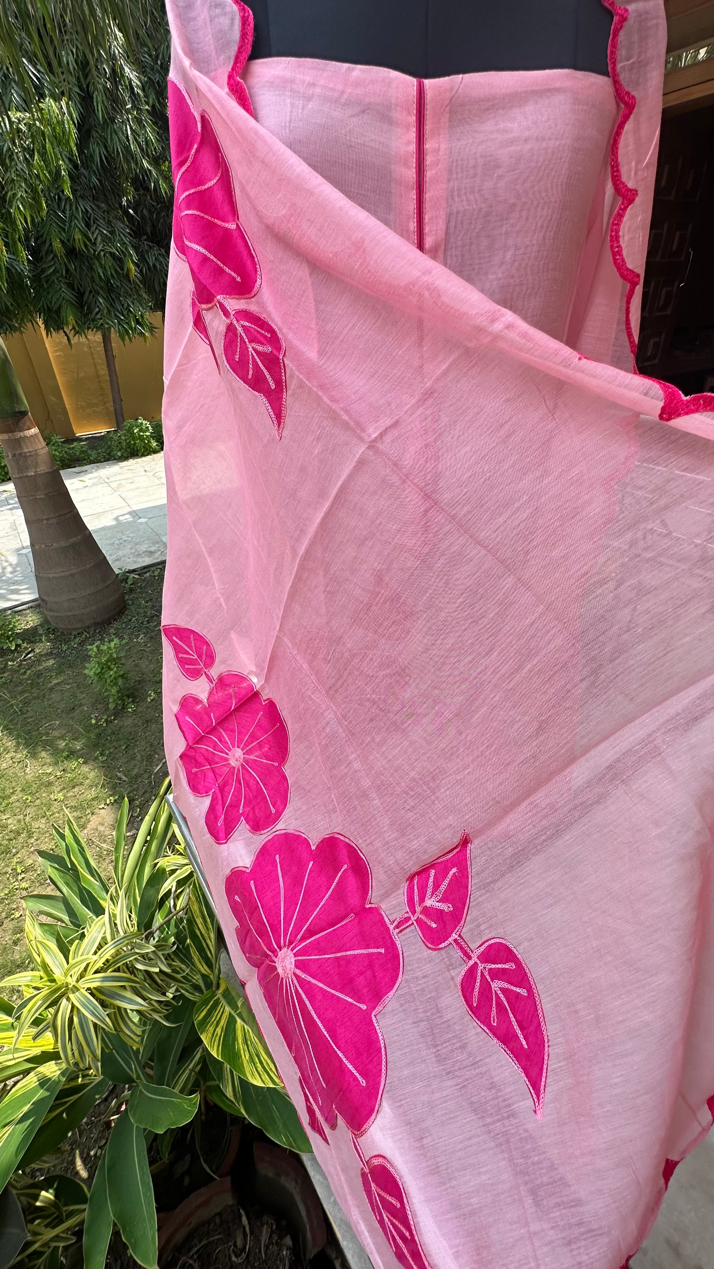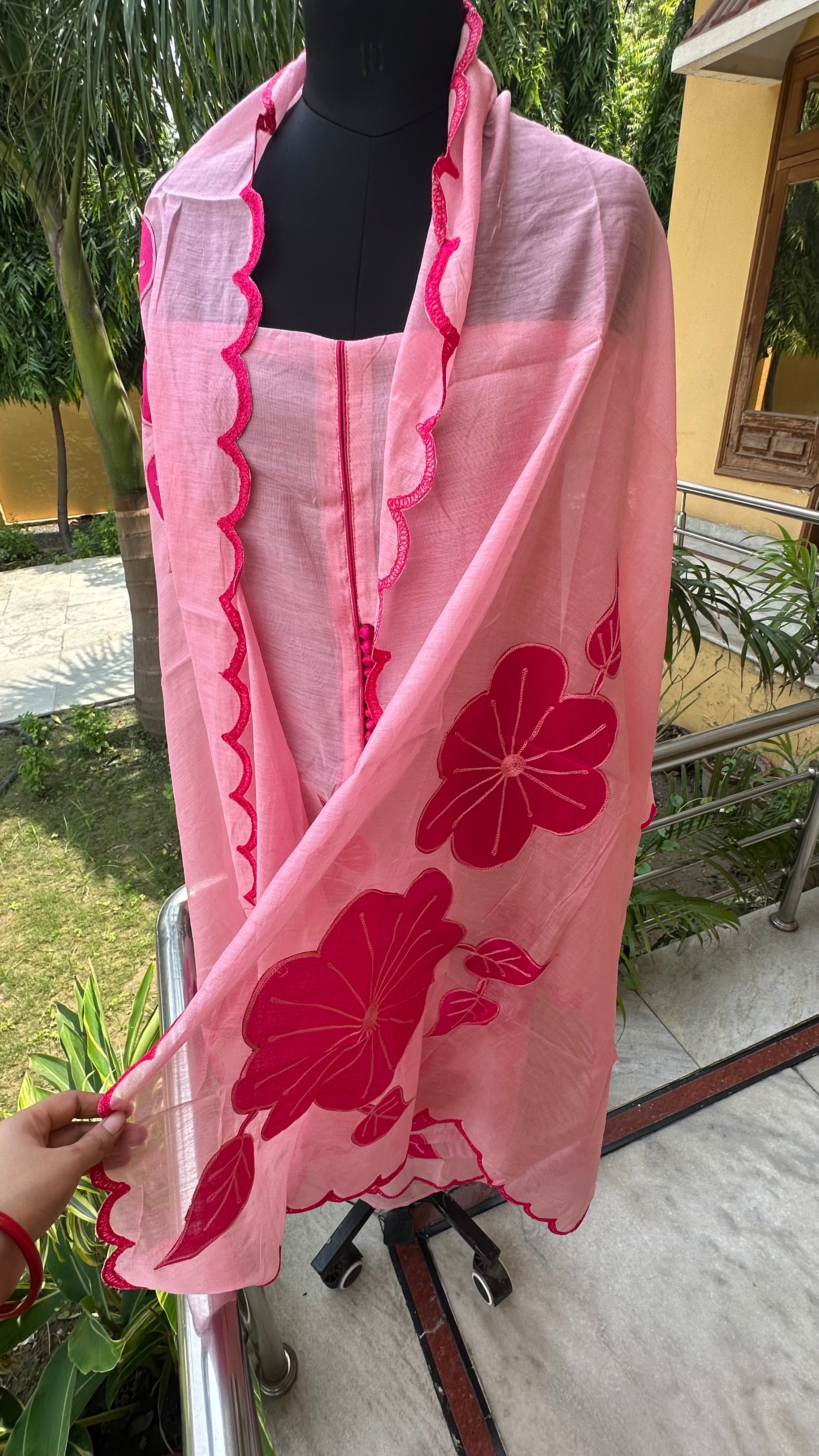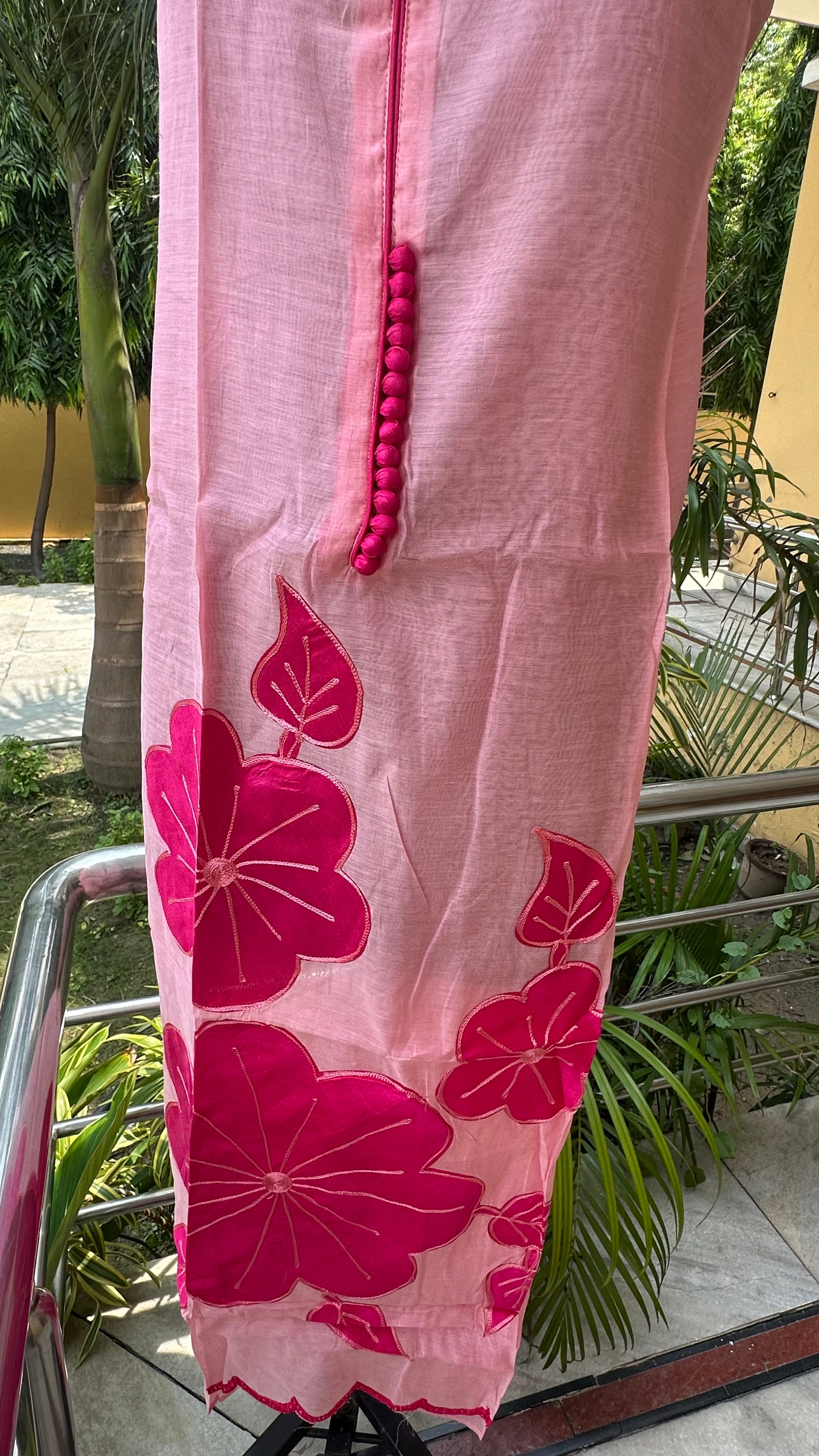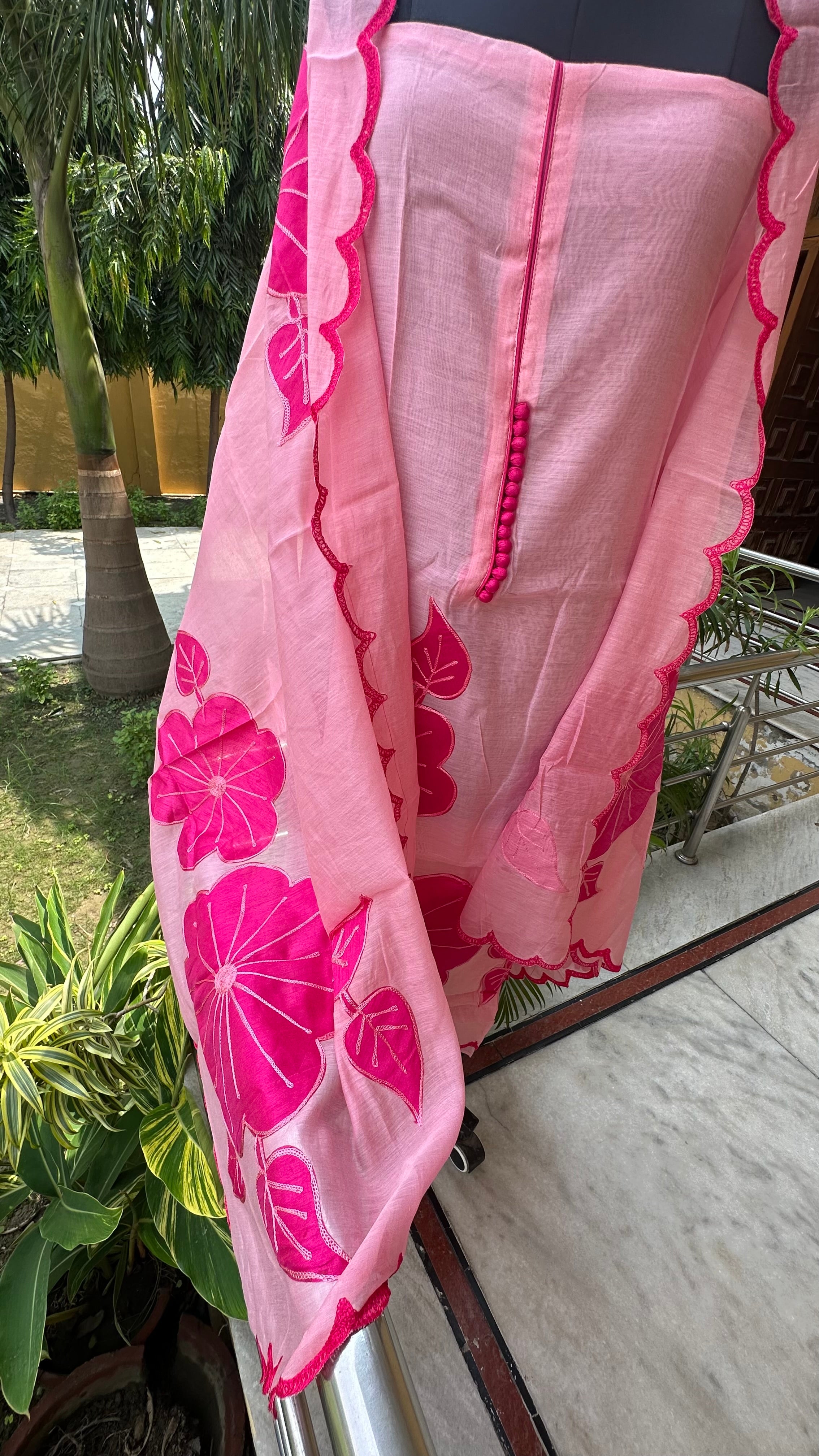 Premium Mul Chanderi Appliqué Work Suit- Pink