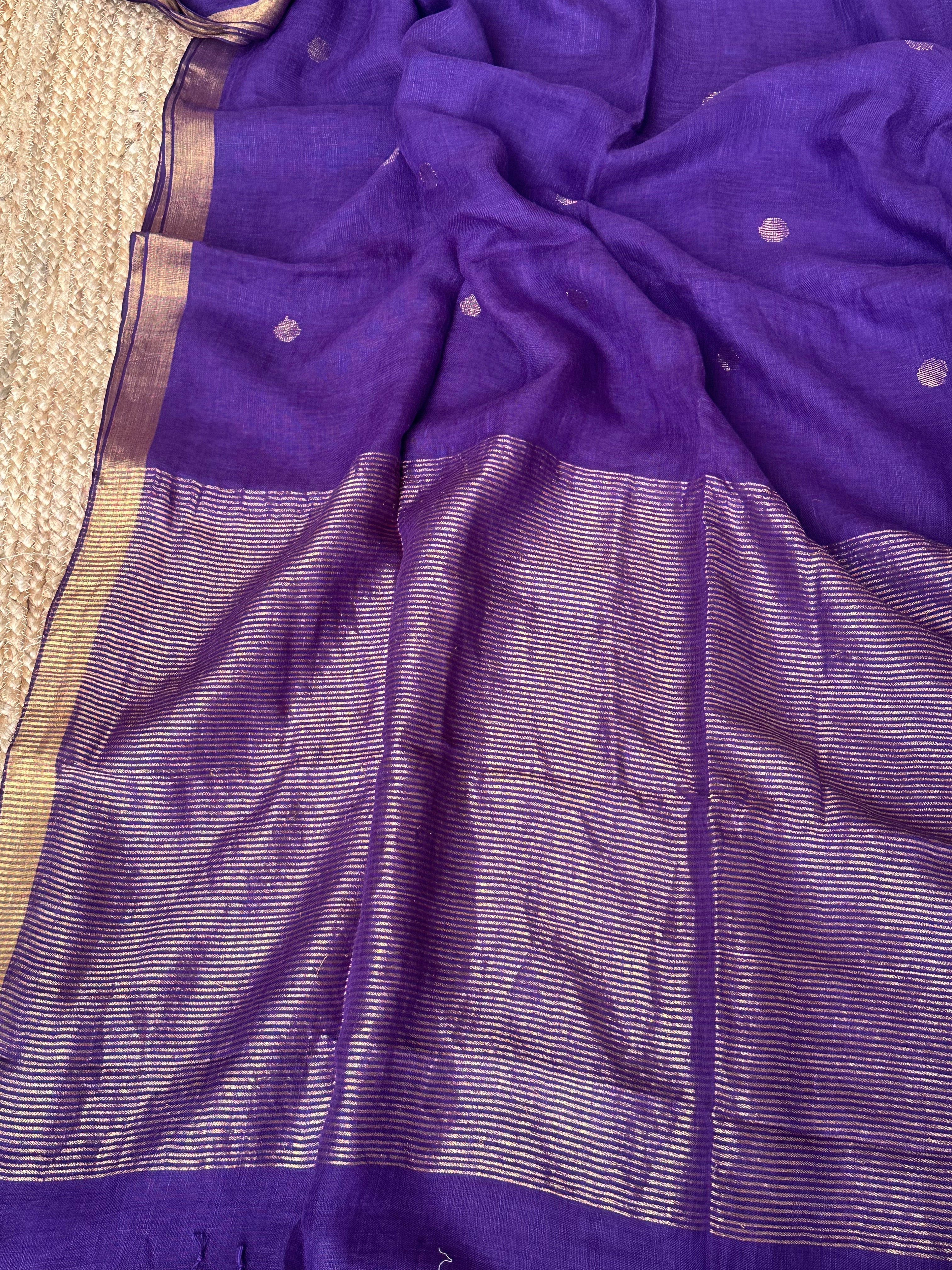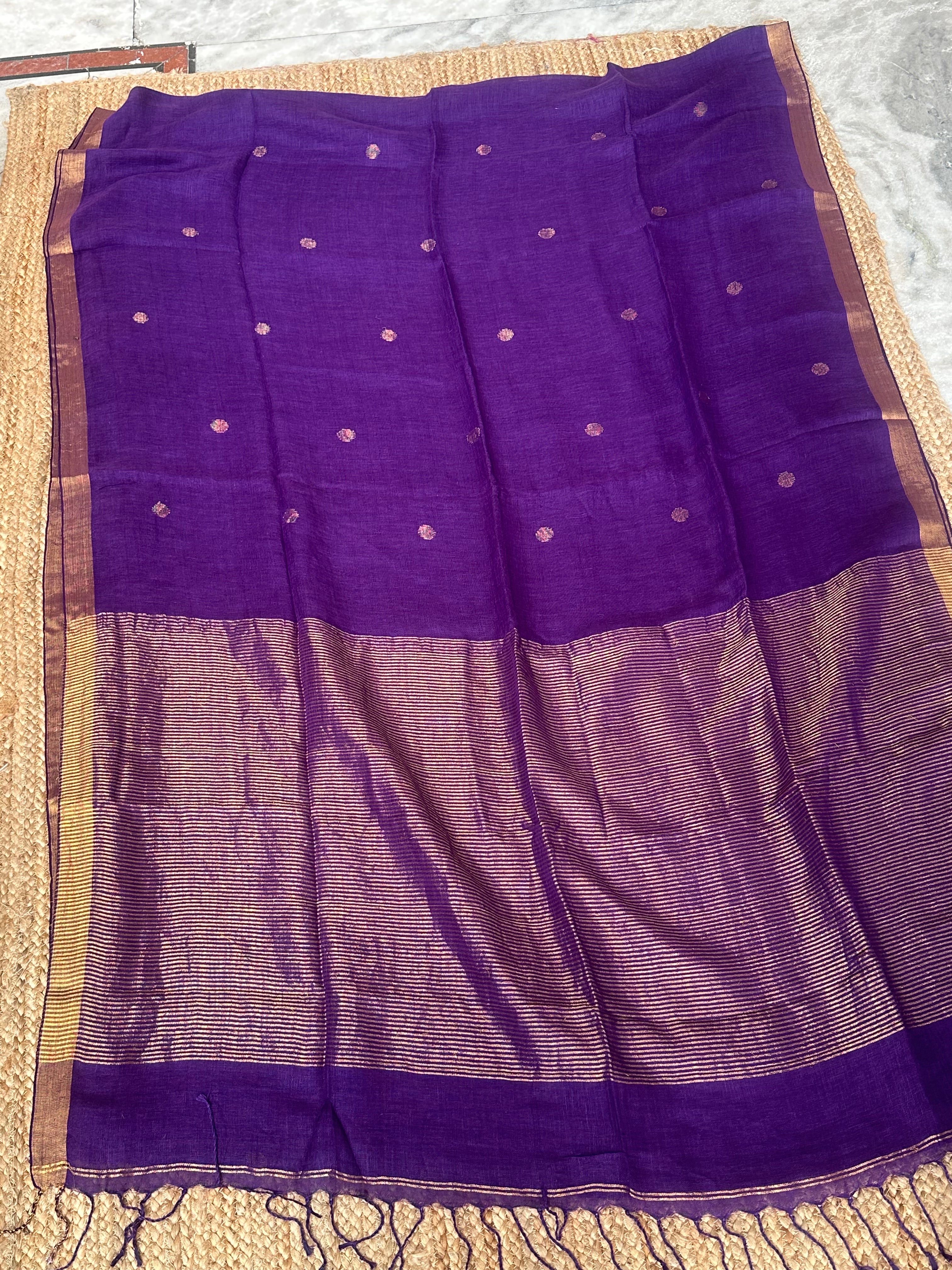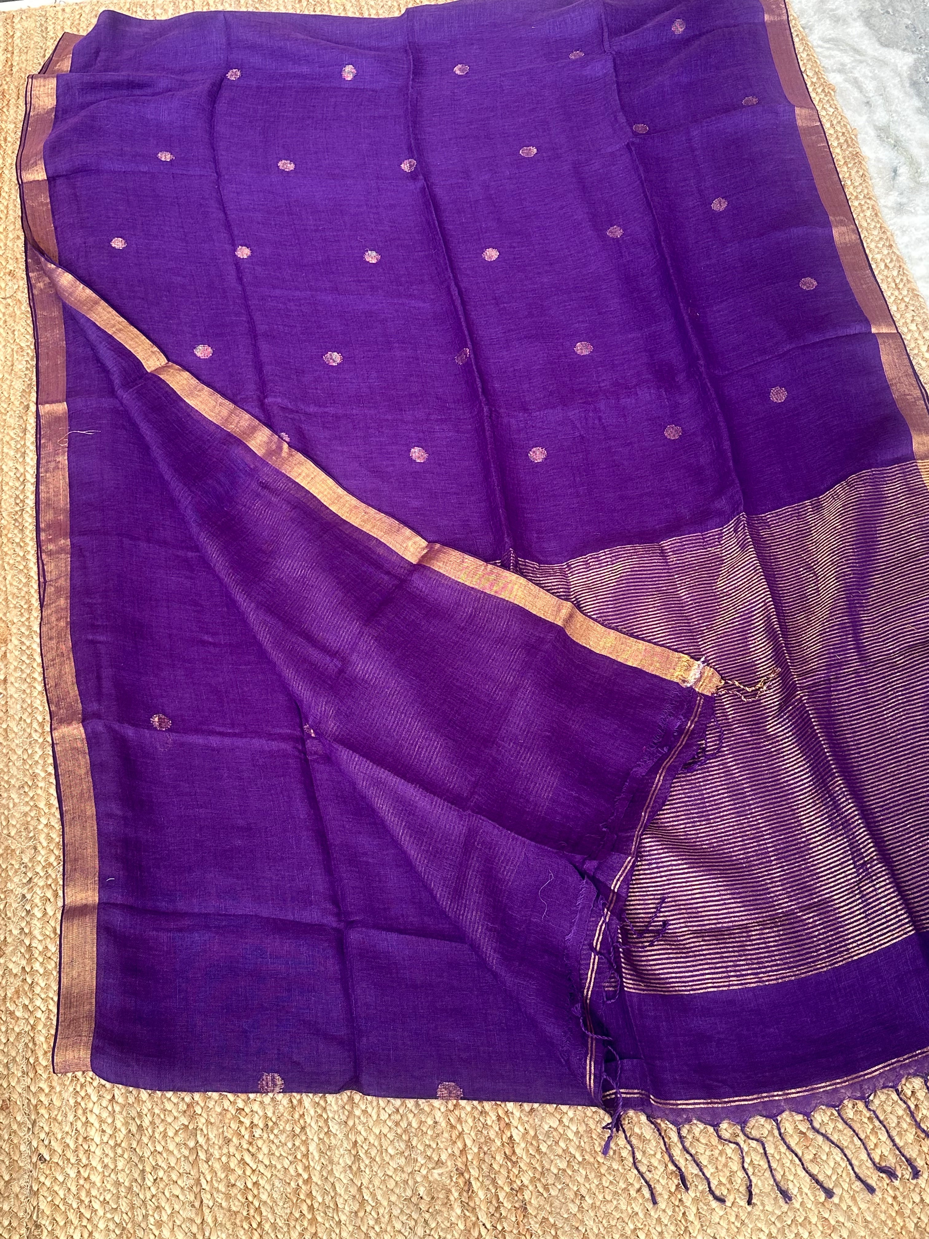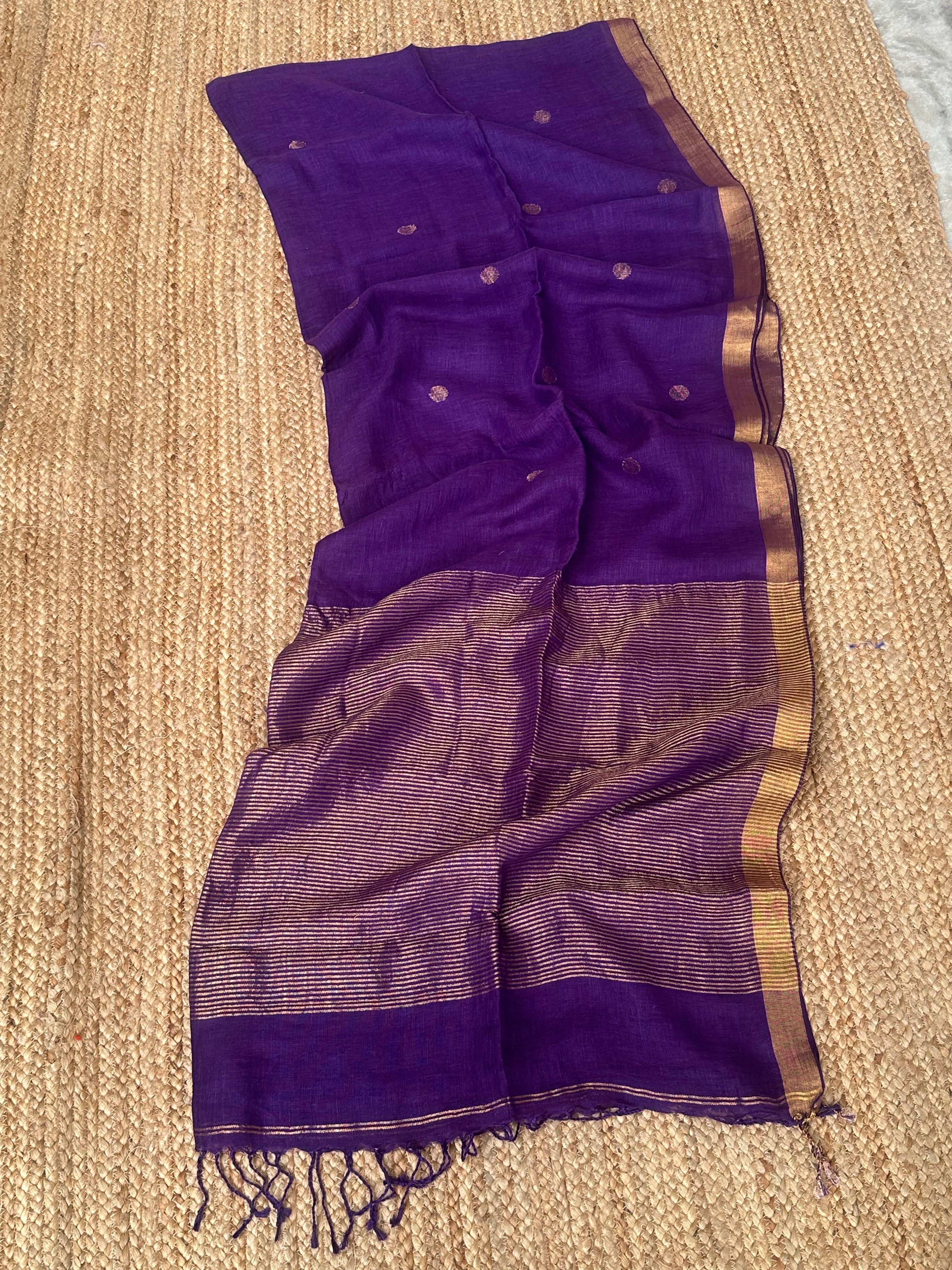 Pure Handloom Saree with Golden Zari circle bootas- Purple