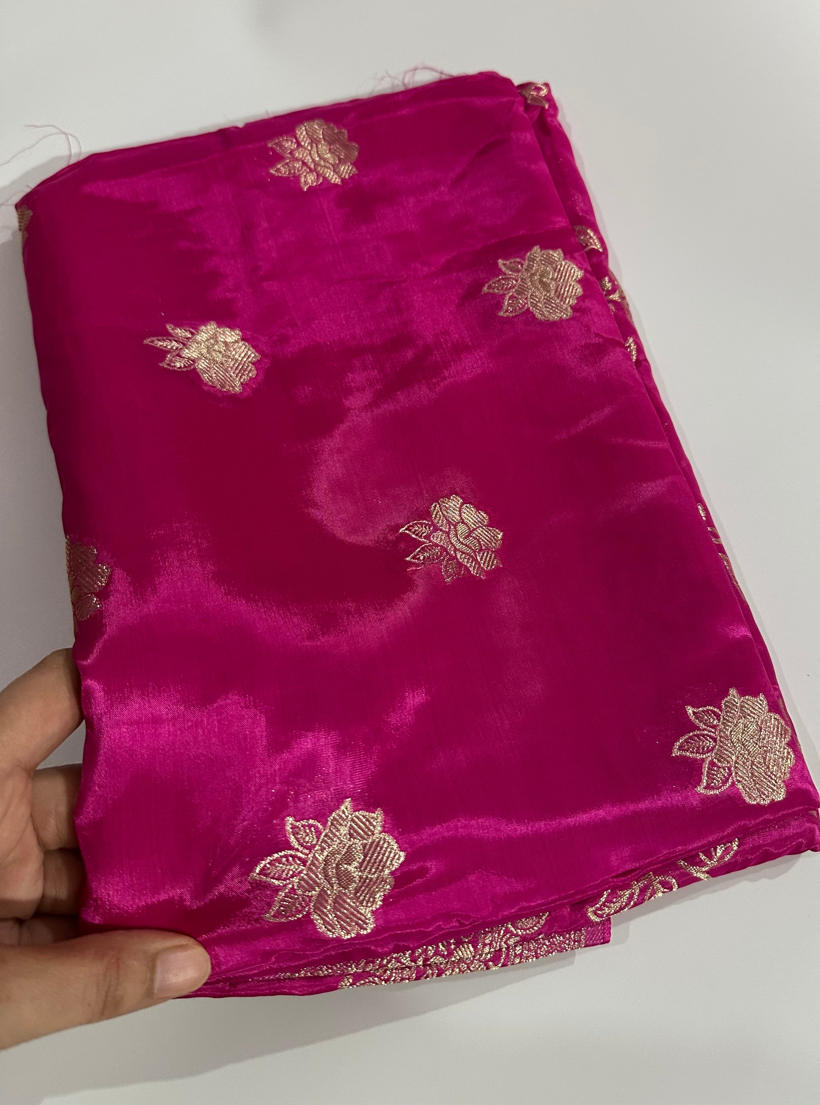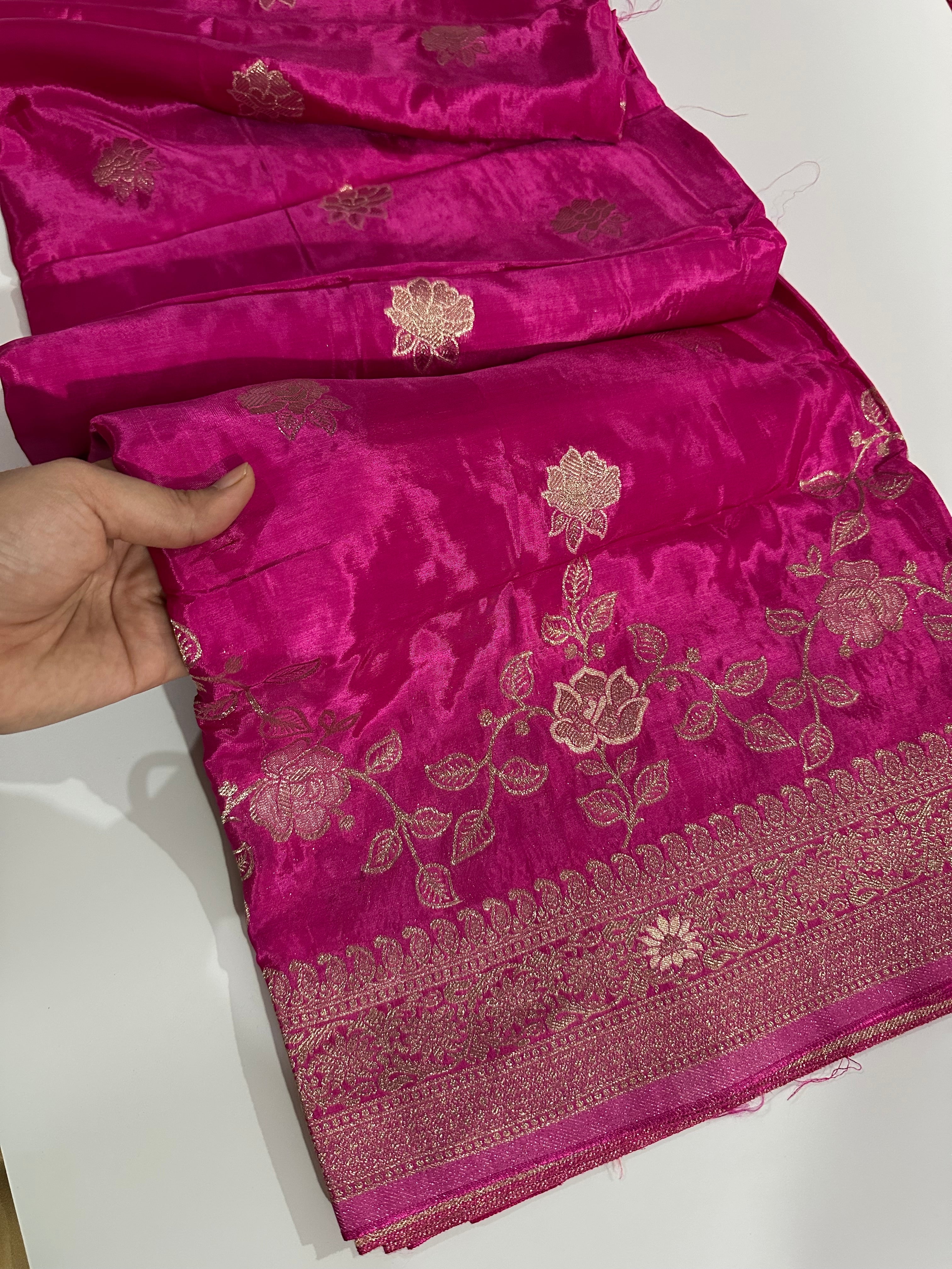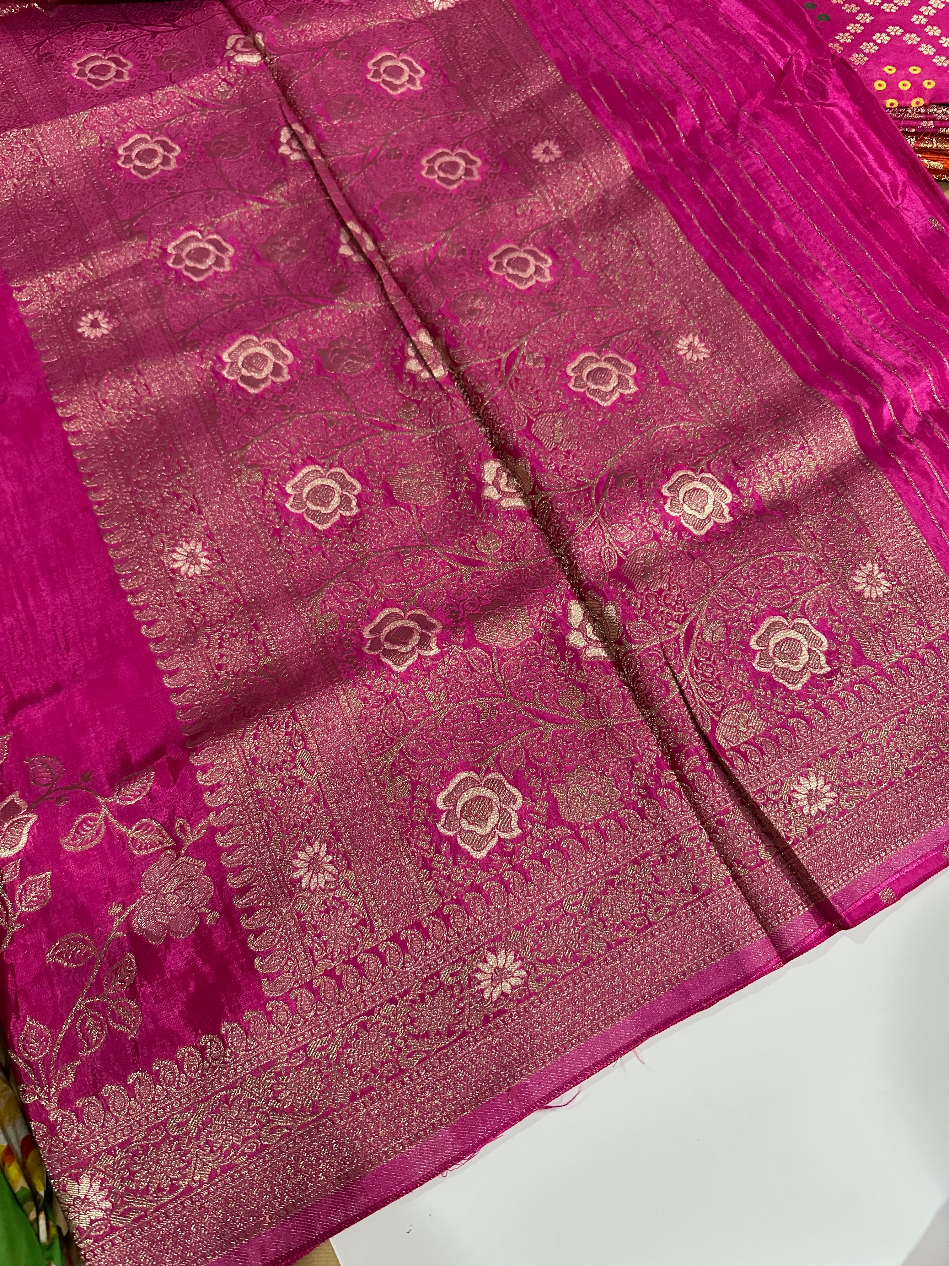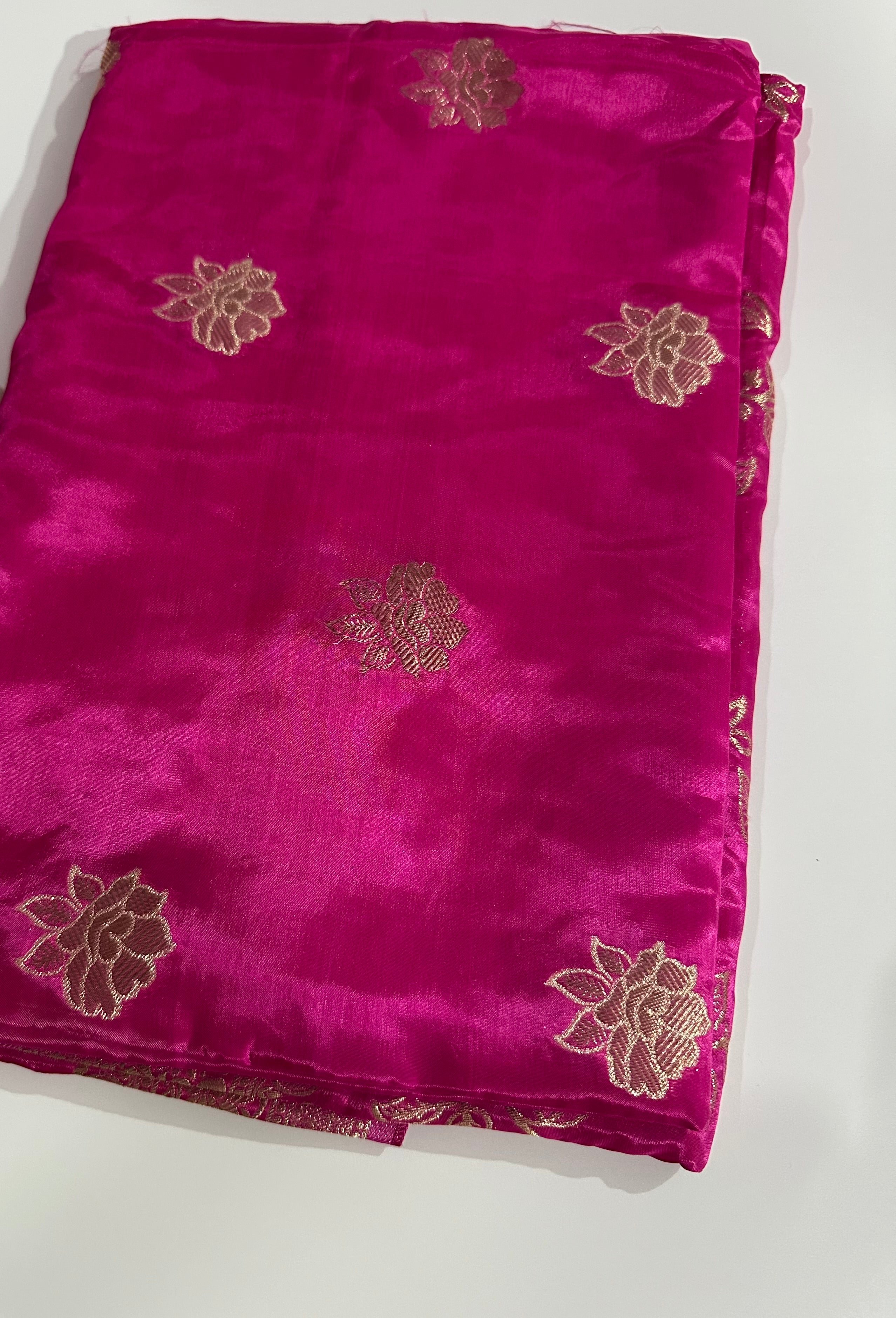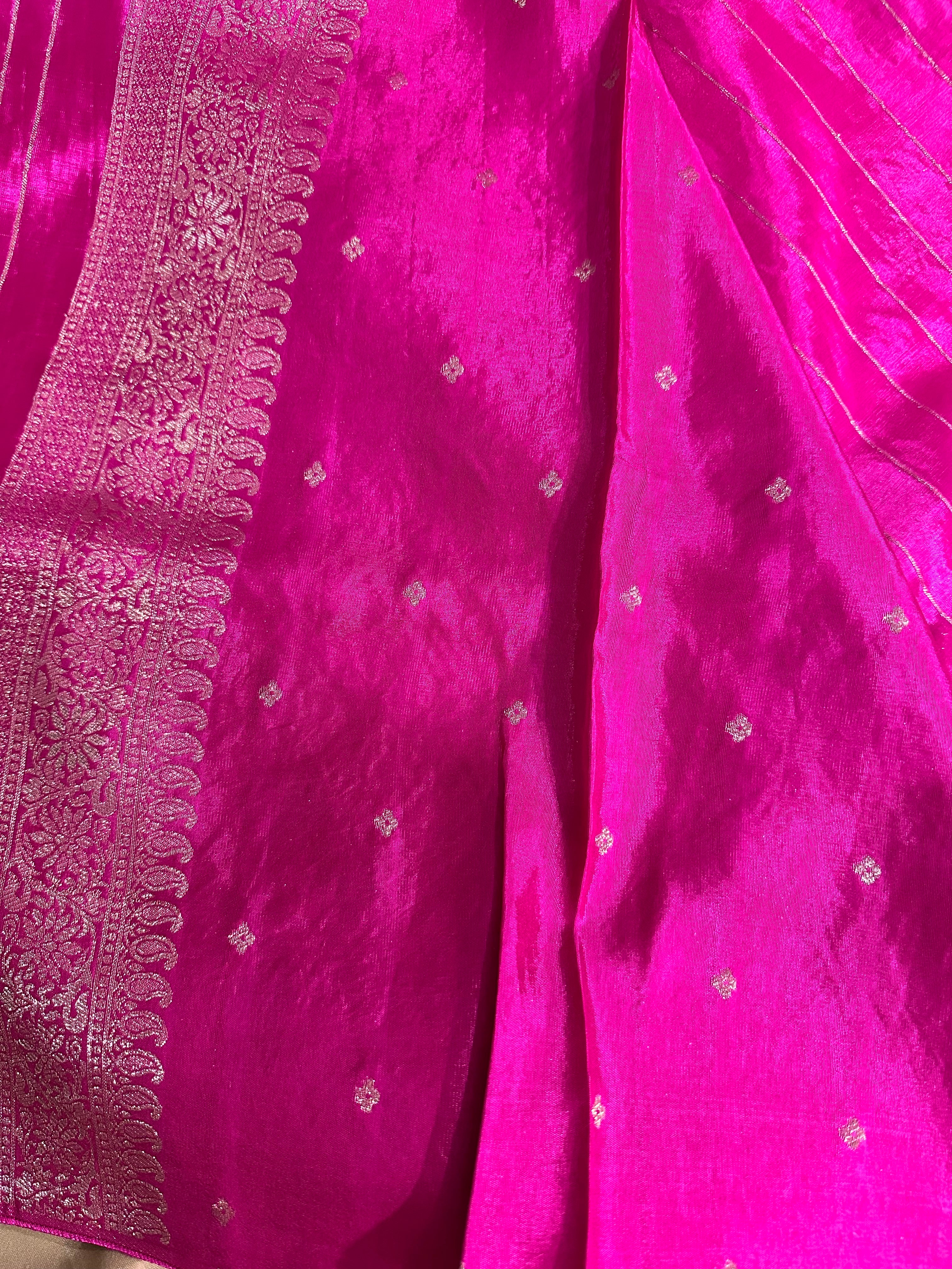 Rani Pink Pure Mashru Silk Saree with woven Zari flowers
