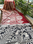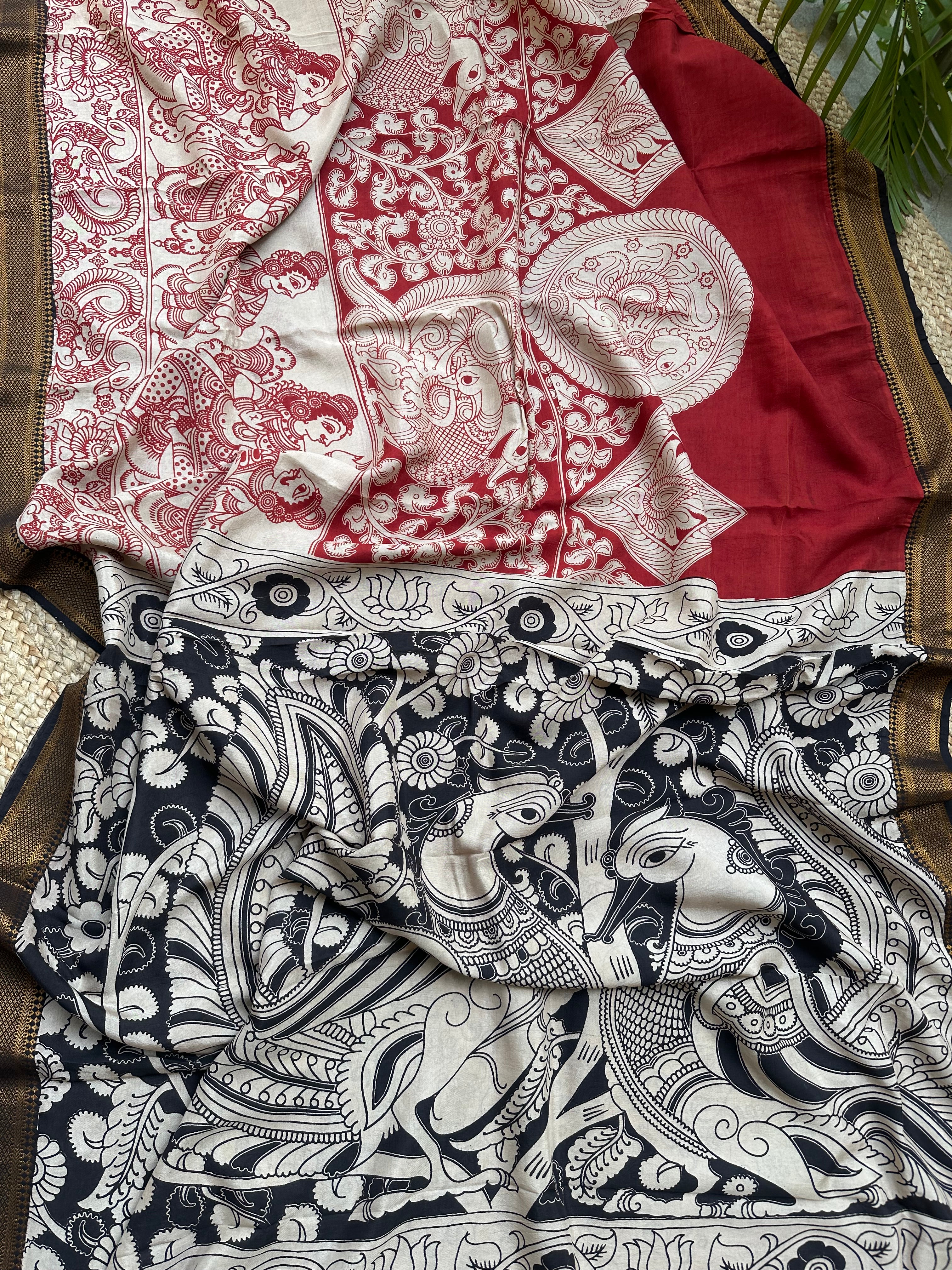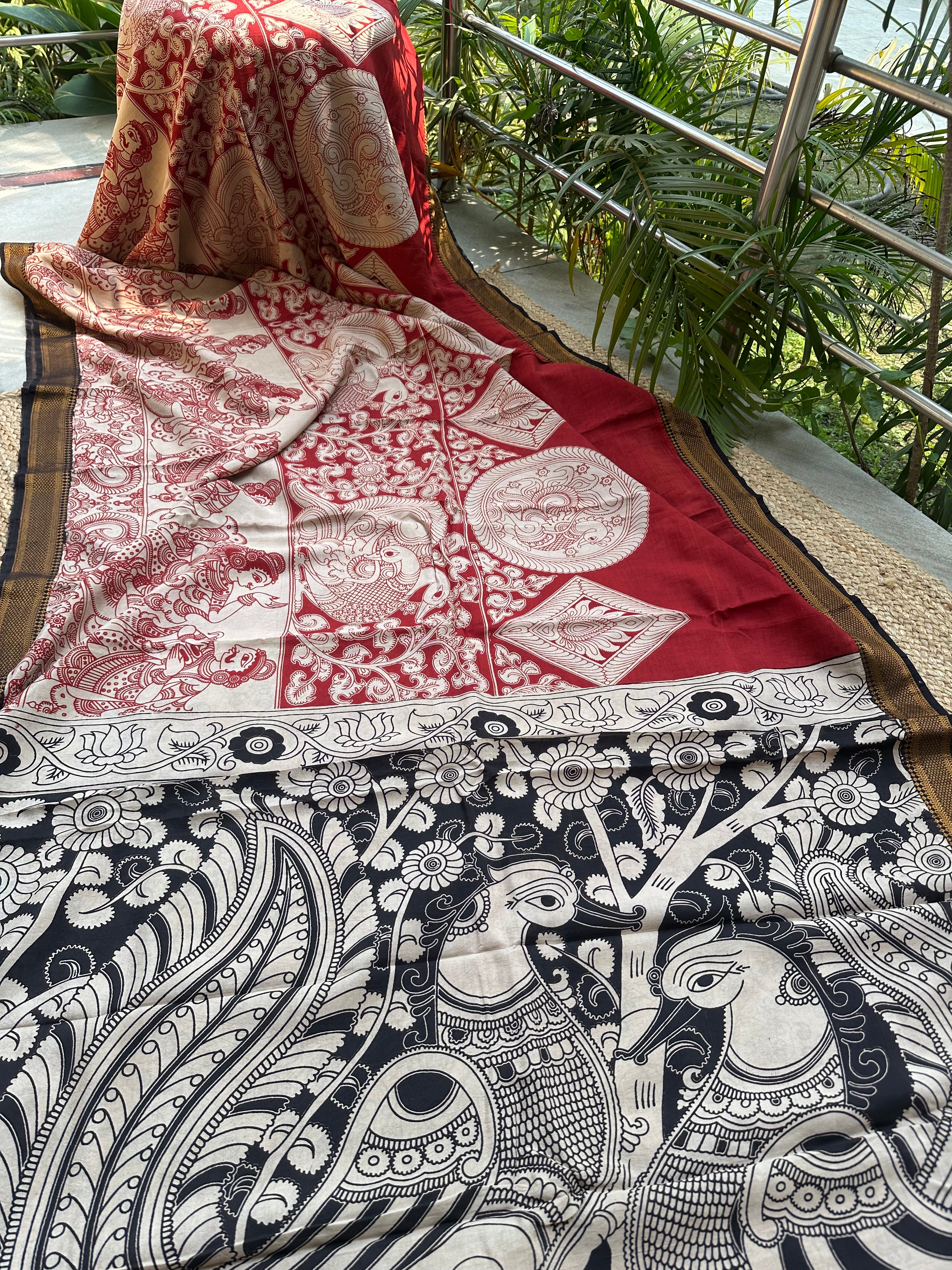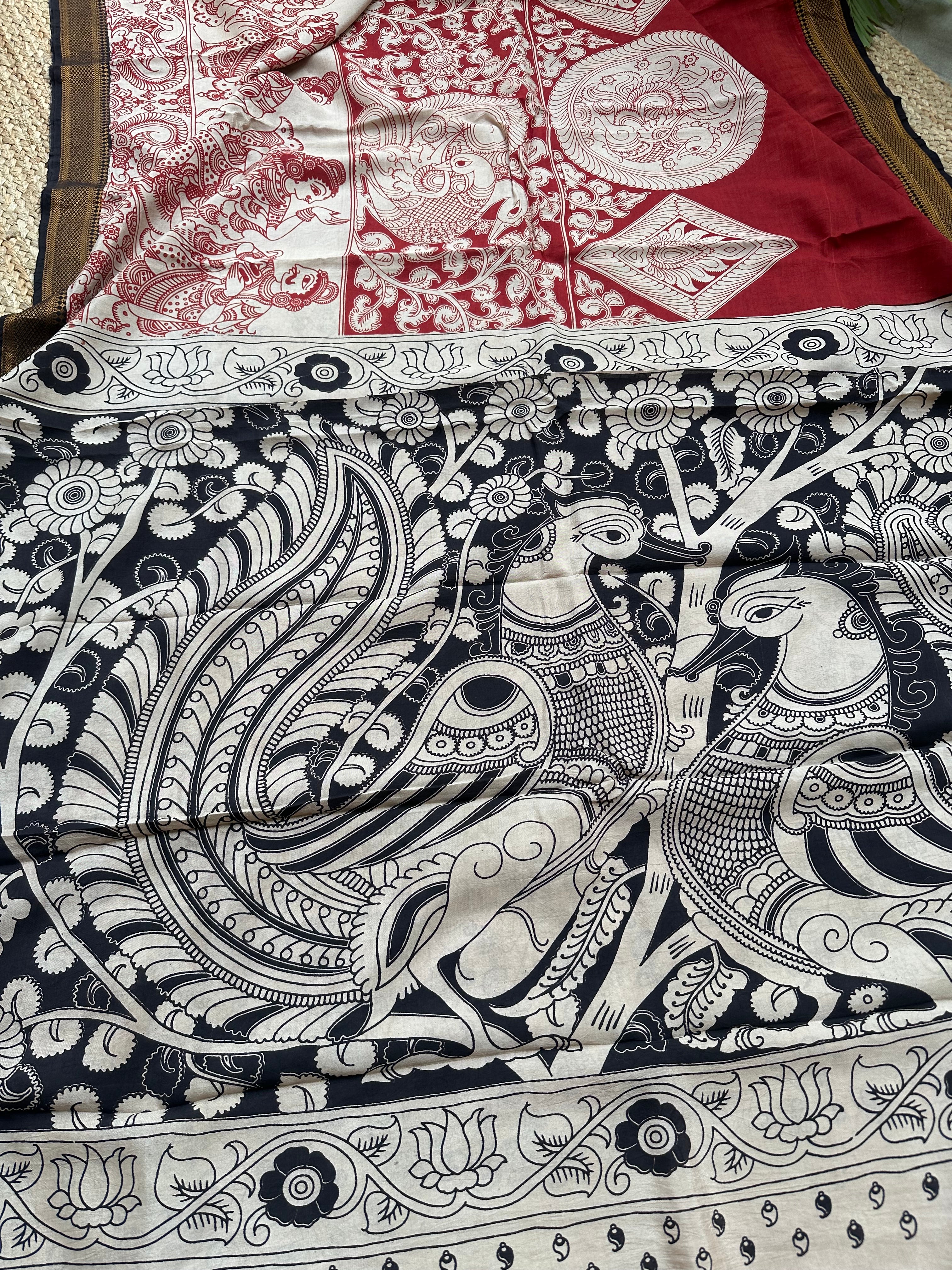 Material: Pure Chennur silk Kalamkari work saree. Very flowy fabric that you can wear in any weather.