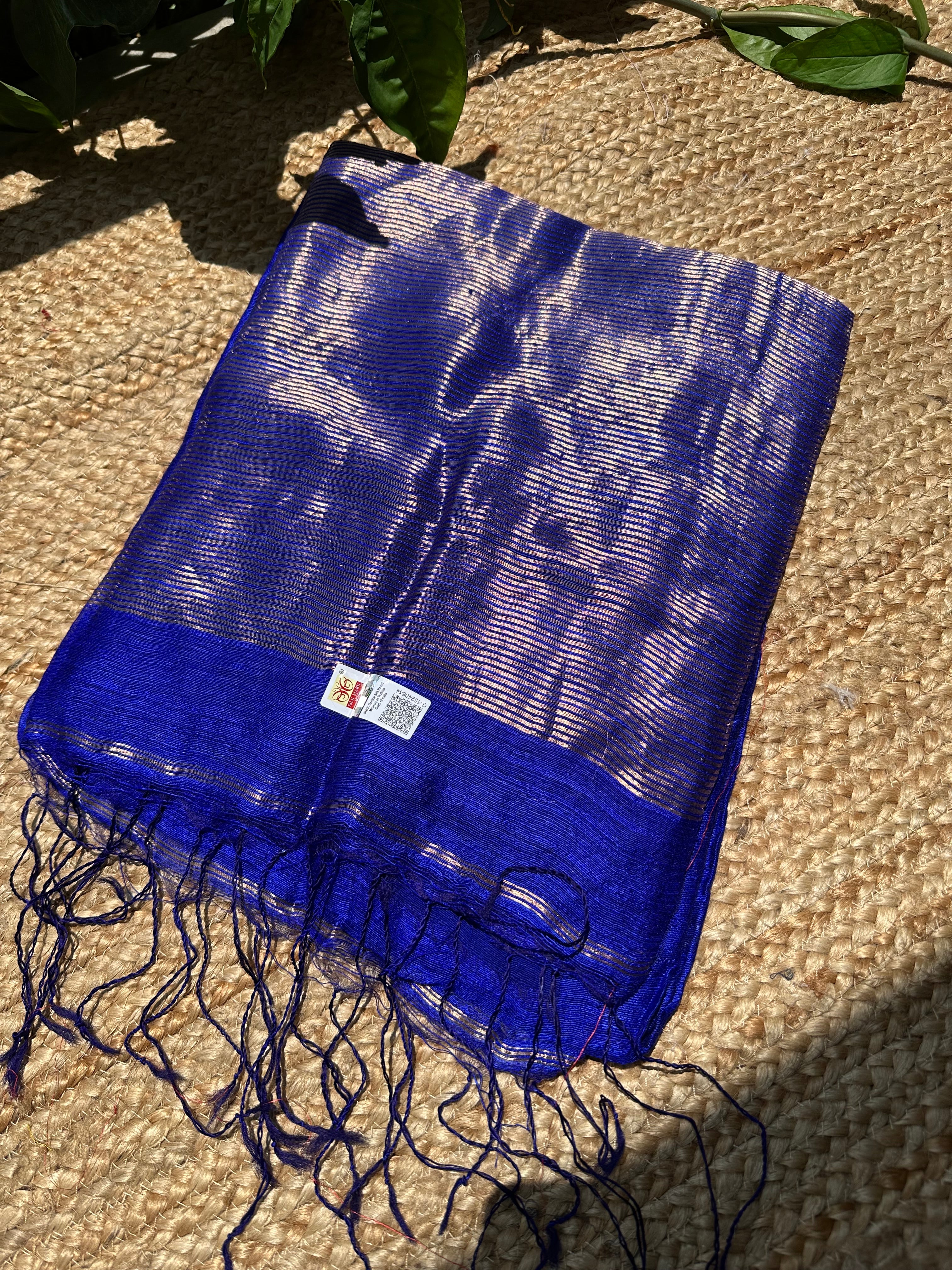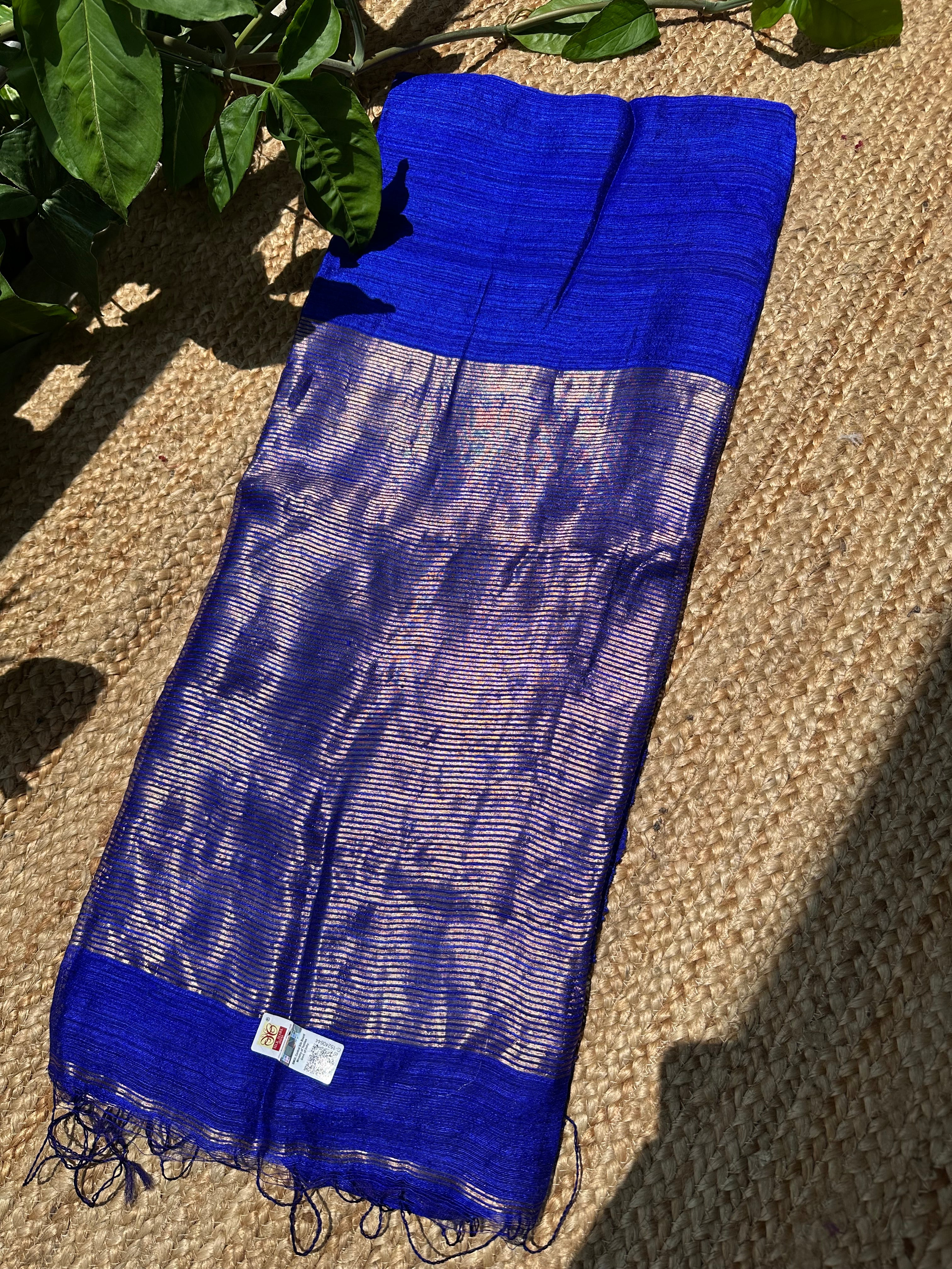 Royal Blue Plain Matka Silk Saree with Zari Pallu (Silkmark Certified)